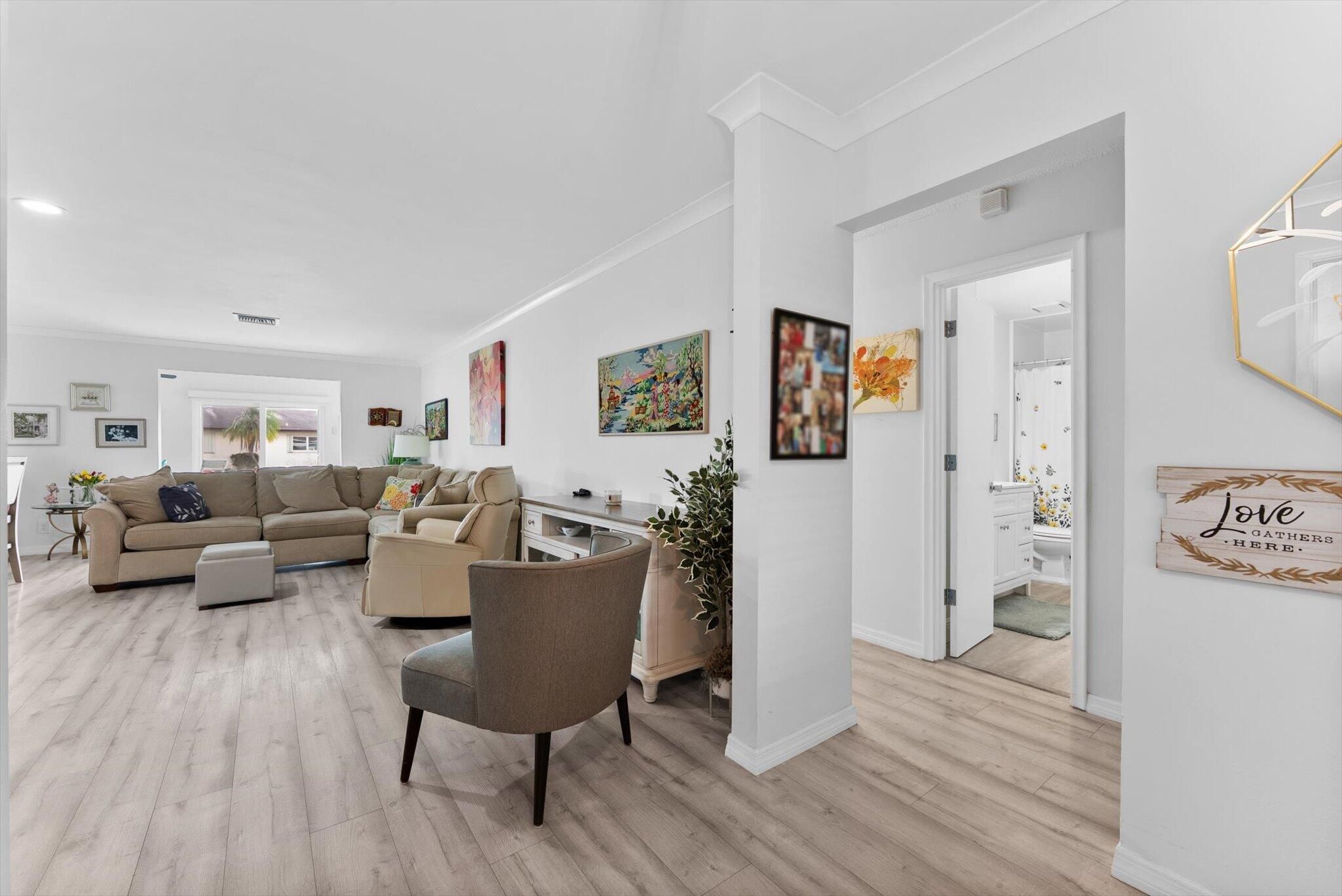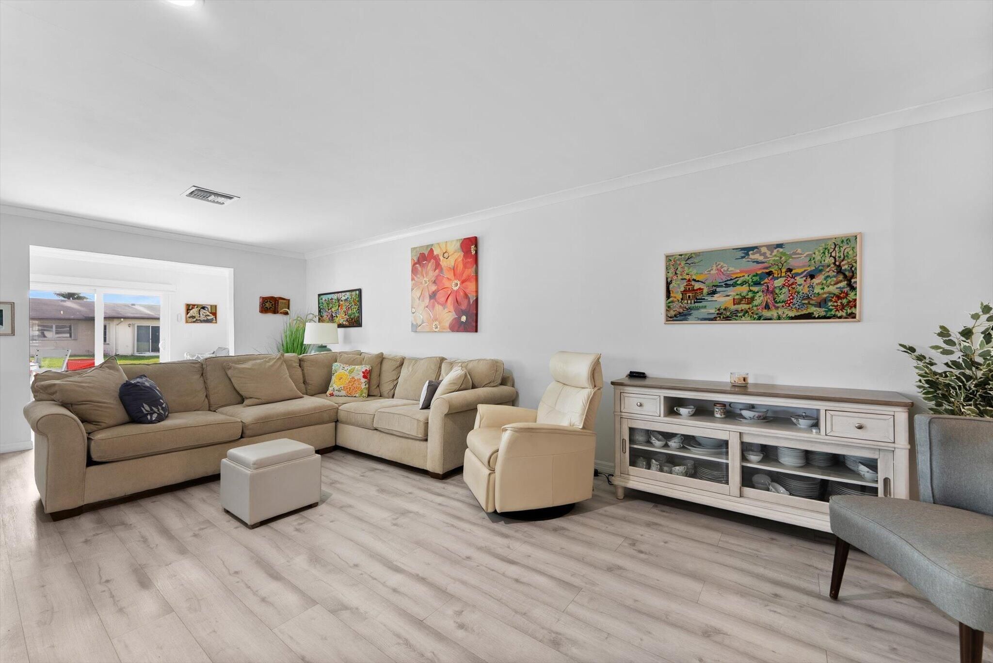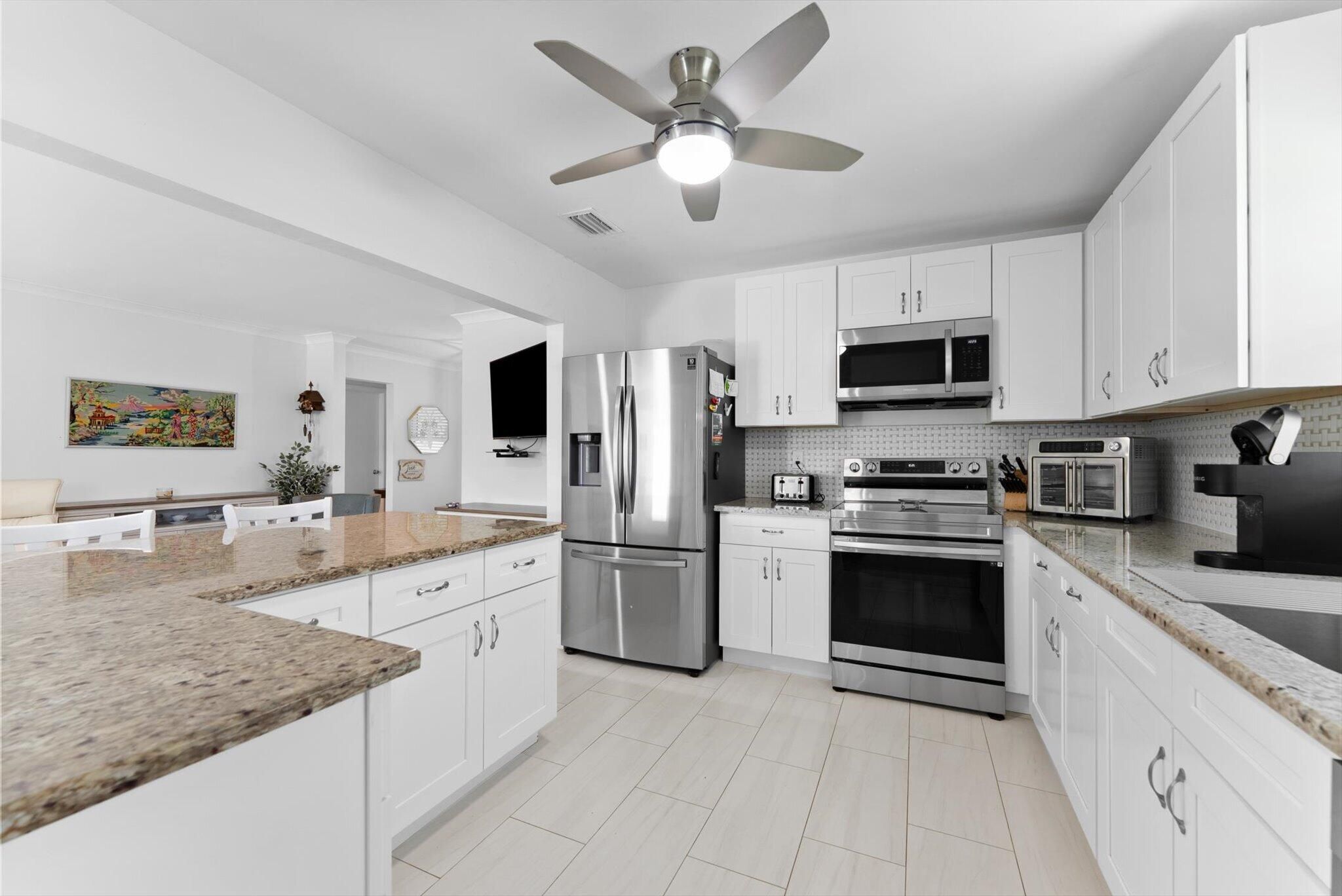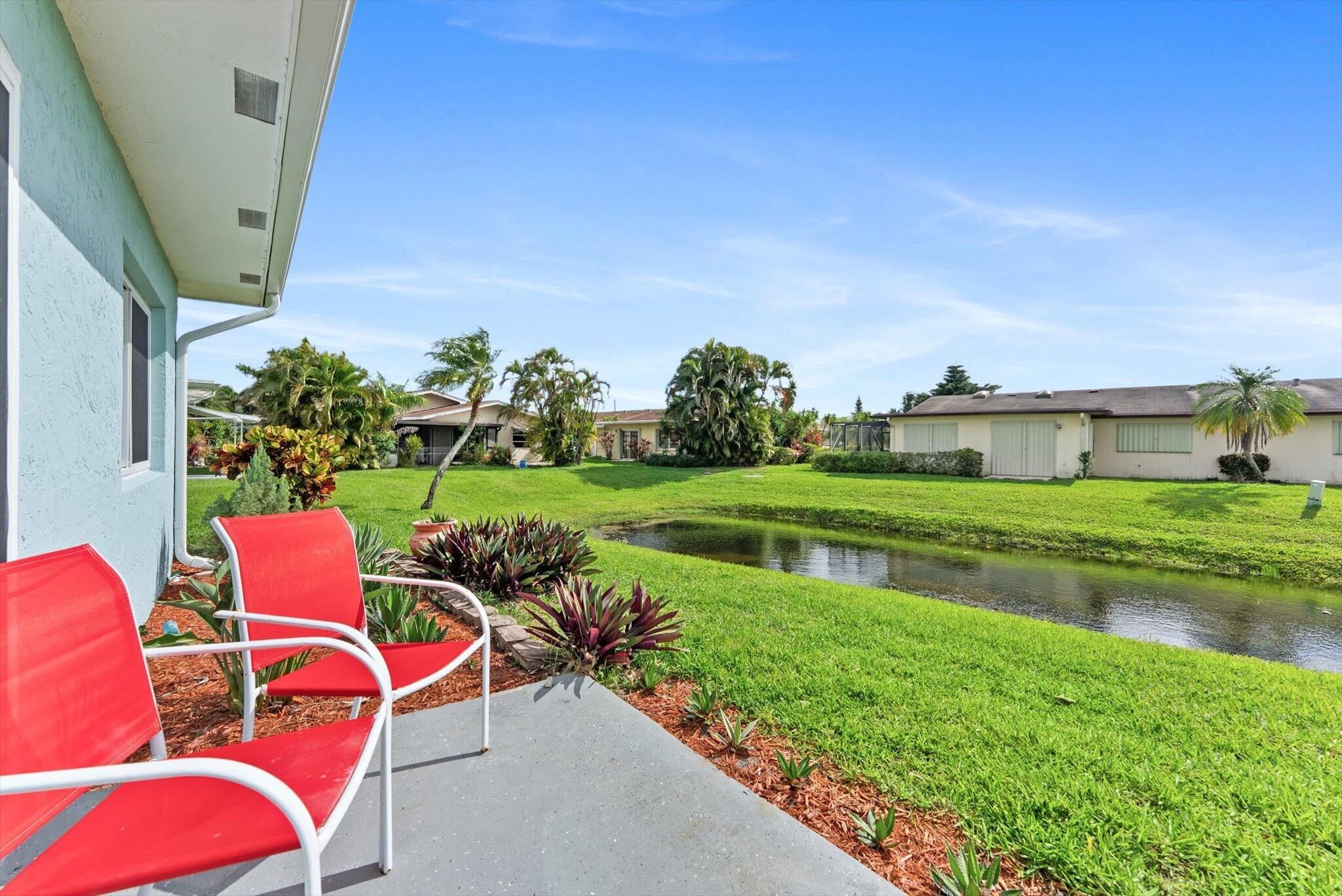 Beautifully renovated 2-bedroom, 2-bath home on a quiet interior street in Delray Villas—priced and positioned to sell quickly. Enjoy a welcoming front porch perfect for relaxing or entertaining, plus a bright open-concept layout with a fully updated kitchen featuring granite countertops, stainless steel appliances, and modern finishes throughout.Major upgrades already done: Full impact windows, doors, and garage door for Full Insurance credits. New A/C and newer roof,no big-ticket expenses for years to come.Additional highlights include high-end window treatments, ample storage, garage, and a two-car driveway.The private rear patio offers peaceful lake views ideal for enjoying Florida living. Low HOA $280 month. Assumable VA mortgage 3.22% for qualified Veterans—significant monthly saving