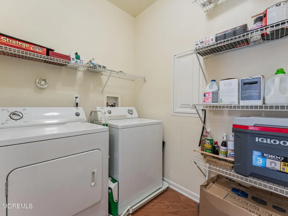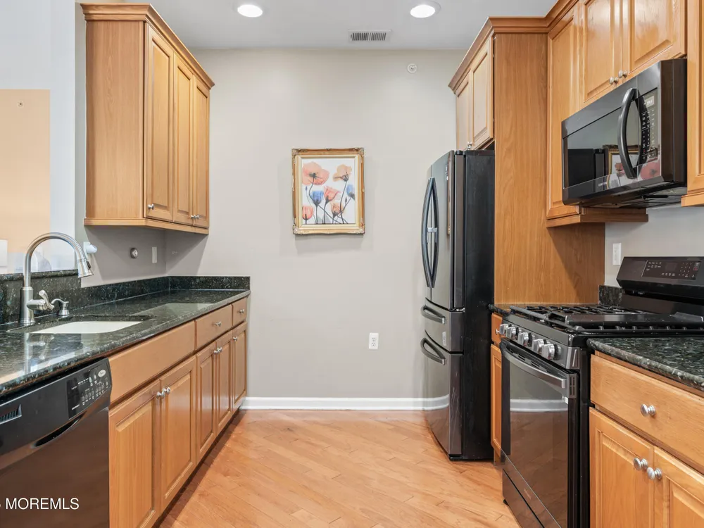 BACK ON MARKET. Buyer could not perform. Beautifully updated 2-bed, 2-bath condo in Ocean County's sought-after 55+ Covington Village. Enjoy an open layout with 9-ft ceilings, hardwood and tile floors, granite counters, black stainless appliances, and a private covered balcony with outdoor storage. The spacious primary suite features a walk-in closet and full bath with tiled shower. A second bedroom and full bath offer flexibility for guests or an office. Full laundry room and plenty of storage. Amenities include a clubhouse, pool, fitness center, and more just minutes from the Parkway and Jersey Shore!