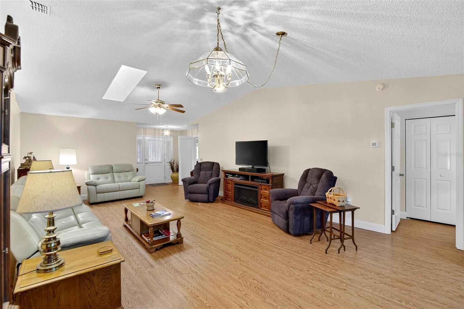 Major Price Reduction! Sellers motivated!! Welcome home to this gorgeous 3-bedroom, 2-bath residence with 1,857 square feet of gracious living in the highly sought-after 55+ gated community of Silver Lakes. Set on a premium .25 lot, one of the largest in the neighborhood, this home offers extra elbow room between neighbors, a spacious backyard, and a meticulously maintained interior that’s truly move-in ready. From the moment you step through the front door, you’ll be drawn to the soaring ceilings, open floor plan, and the spacious living room that flows seamlessly into the dining and kitchen areas. Luxury vinyl plank flooring and 5 inch baseboards flows throughout the entire home - no carpeting here! The kitchen features abundant cabinet and counter space, a breakfast bar, closet pantry, cozy breakfast nook, and an upgraded GE Black Stainless Appliance Suite with natural gas range, refrigerator, dishwasher, and microwave. The inside utility room adds convenience with a utility sink, additional storage cabinets, and plenty of space to stay organized. The washer and gas dryer are included with the home. The formal dining room is both elegant and inviting, enhanced by beautiful crown molding that adds a touch of sophistication. Large windows frame picturesque views of the backyard, filling the room with natural light and creating the perfect setting for family dinners, holiday gatherings. The spacious master bedroom offers a comfortable retreat with plenty of room for your favorite furnishings and a large walk-in closet that provides exceptional storage. The ensuite bath is thoughtfully designed with a beautifully tiled shower, a separate wet room for added privacy, a convenient linen closet, and even an additional storage closet—ensuring everything has its place. The two guest bedrooms are tucked away in their own private suite, offering comfort and privacy for family or visitors. Each room features a spacious closet and plenty of natural light, making them perfect for overnight stays or even a home office. A shared bathroom with a tiled tub and shower, along with its own linen closet. The garage is a dream with a workbench, storage cabinets, wet sink, separate side entry, a newer hurricane-rated garage door, and garage door opener. More features include Dual pane double-hung hurricane resistant windows 2019, Aluminum gutters & soffits 2020, hurricane-rated garage door, garage door opener 2018, HVAC 2018 and a Brand-New 30-year architectural shingle roof will be installed with an accepted offer. Sitting under the shade tree on the front patio or enjoying a cup of coffee on the enclosed 4 seasons front porch or grilling out on the rear patio, relaxation is what it's all about with this home! Silver Lakes is designed for low-maintenance living, along with a low monthly HOA fee of $225 that covers cable, internet, lawn care, & reclaimed water for irrigation. The recently updated Clubhouse is the heart of the neighborhood, offering a junior Olympic-sized heated pool and spa surrounded by a paver patio, a fitness center, sauna, library, kitchen, banquet hall, card room or take a walk around the three lakes in the community. With plenty of activities to choose from, Silver Lakes is welcoming, pet-friendly, and ideally located close to shopping, dining, medical facilities, and I-4 for easy travel to both Tampa and Orlando, as well as world-famous attractions. Schedule your private showing today!