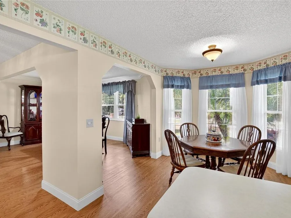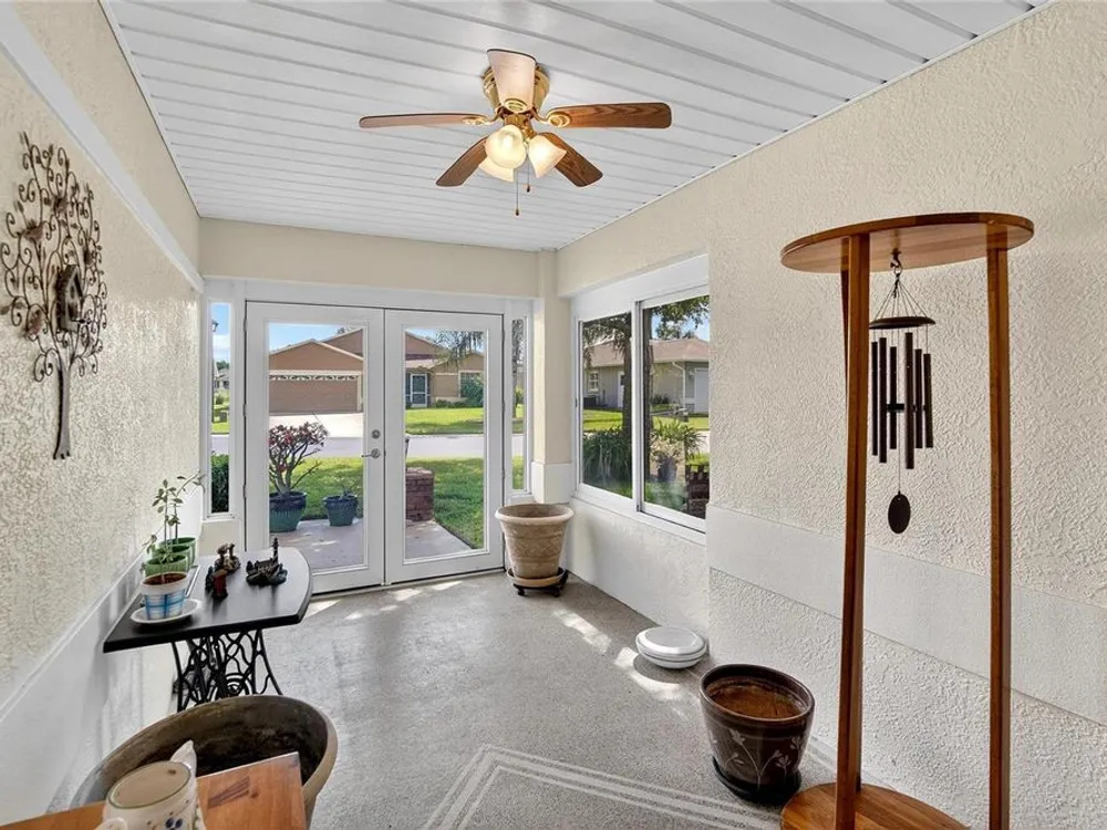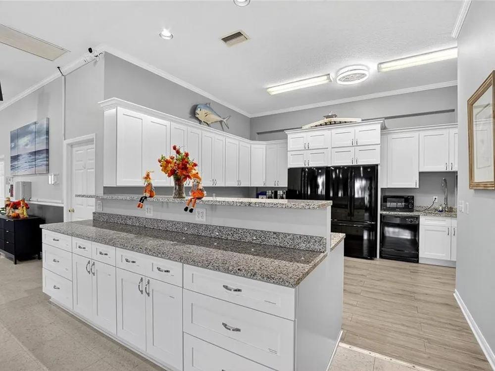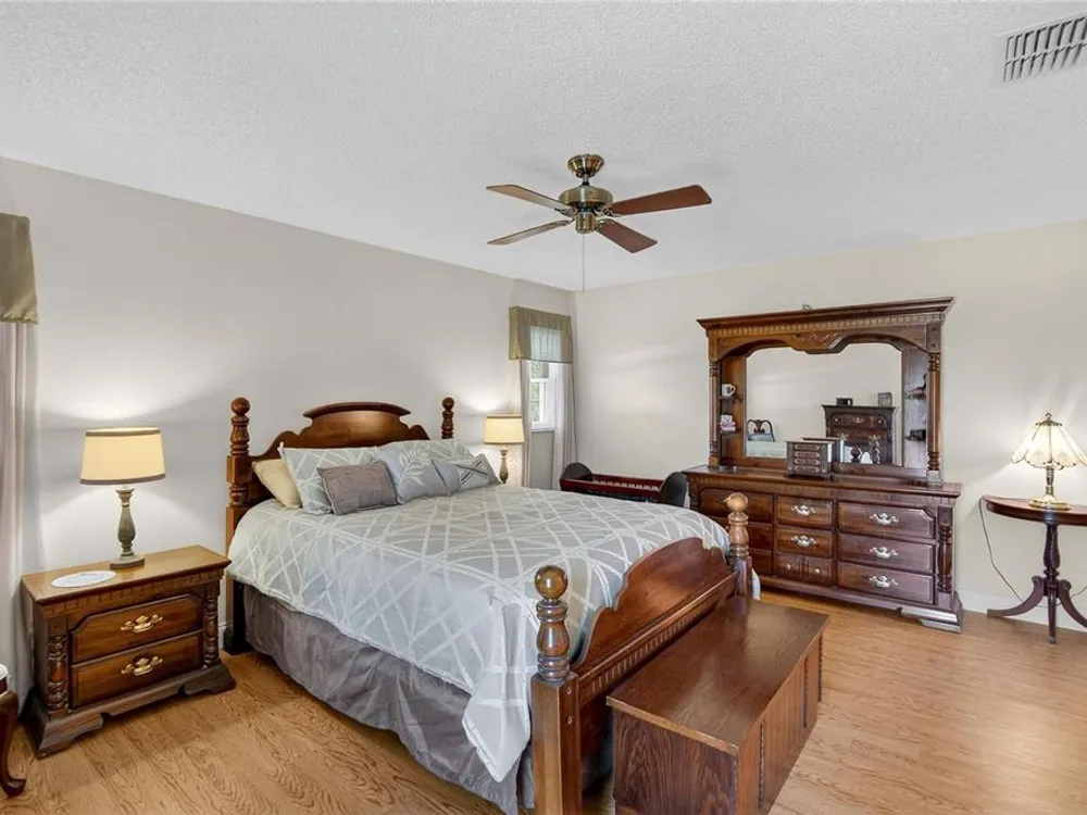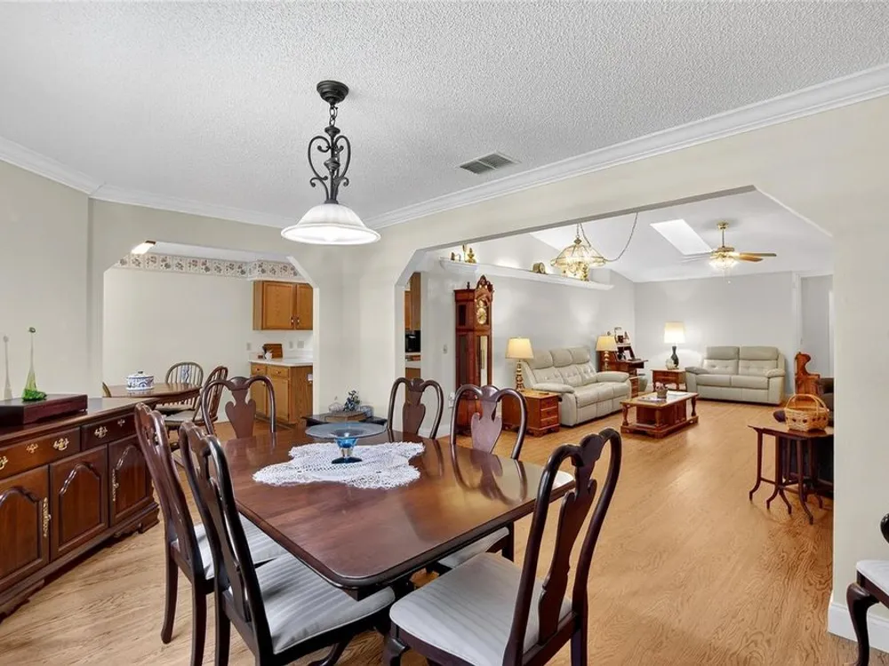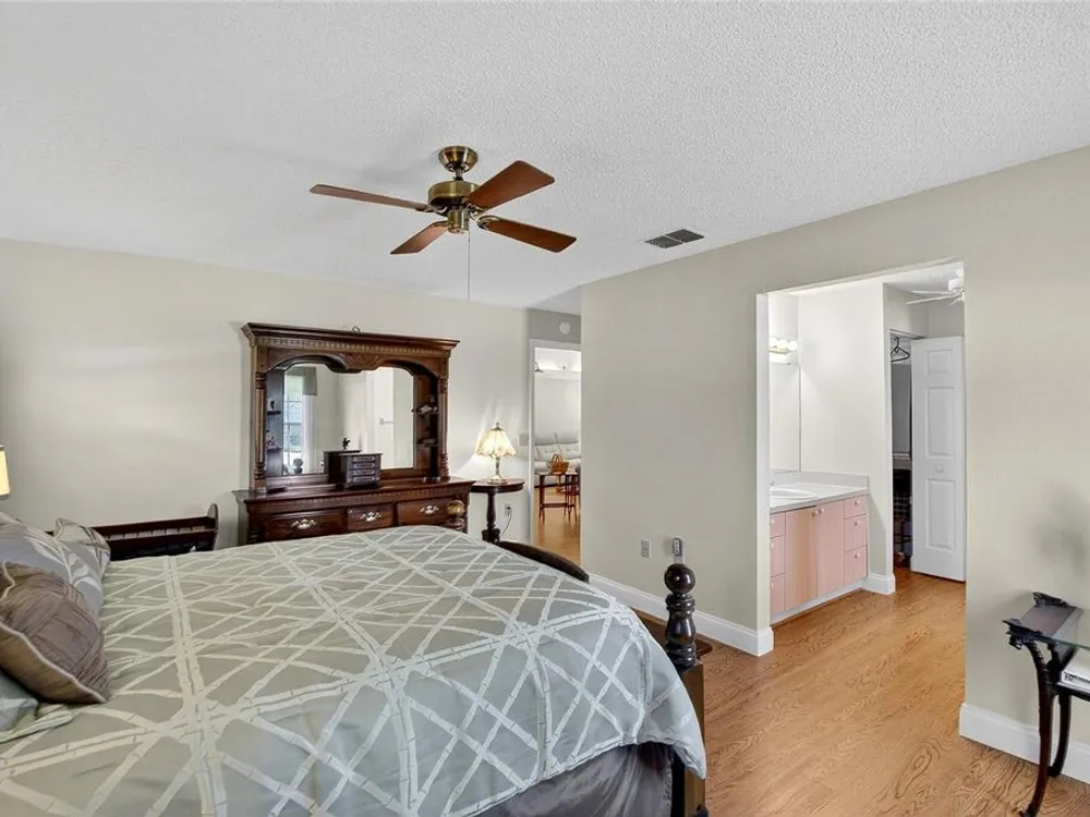 Welcome home to this gorgeous 3-bedroom, 2-bath residence with 1,857 square feet of gracious living in the highly sought-after 55+ gated community of Silver Lakes. Set on a premium .25 lot, one of the largest in the neighborhood, this home offers extra elbow room between neighbors, a spacious backyard, and a meticulously maintained interior that’s truly move-in ready. From the moment you step through the front door, you’ll be drawn to the soaring ceilings, open floor plan, and the spacious living room that flows seamlessly into the dining and kitchen areas. Luxury vinyl plank flooring and 5 inch baseboards flows throughout the entire home - no carpeting here! The kitchen features abundant cabinet and counter space, a breakfast bar, closet pantry, cozy breakfast nook, and an upgraded GE Black Stainless Appliance Suite with natural gas range, refrigerator, dishwasher, and microwave. The inside utility room adds convenience with a utility sink, additional storage cabinets, and plenty of space to stay organized. The washer and gas dryer are included with the home. The formal dining room is both elegant and inviting, enhanced by beautiful crown molding that adds a touch of sophistication. Large windows frame picturesque views of the backyard, filling the room with natural light and creating the perfect setting for family dinners, holiday gatherings. The spacious master bedroom offers a comfortable retreat with plenty of room for your favorite furnishings and a large walk-in closet that provides exceptional storage. The ensuite bath is thoughtfully designed with a beautifully tiled shower, a separate wet room for added privacy, a convenient linen closet, and even an additional storage closet—ensuring everything has its place. The two guest bedrooms are tucked away in their own private suite, offering comfort and privacy for family or visitors. Each room features a spacious closet and plenty of natural light, making them perfect for overnight stays or even a home office. A shared bathroom with a tiled tub and shower, along with its own linen closet. The garage is a dream with a workbench, storage cabinets, wet sink, separate side entry, a newer hurricane-rated garage door, and garage door opener. More features include Double-hung tempered glass hurricane windows 2019, Aluminum gutters & soffits 2020, hurricane-rated garage door, garage door opener 2018, HVAC 2018 and a Brand-New 30-year architectural shingle roof will be installed with an accepted offer. Sitting under the shade tree on the front patio or enjoying a cup of coffee on the enclosed 4 seasons front porch or grilling out on the rear patio, relaxation is what it's all about with this home! Silver Lakes is designed for low-maintenance living, along with a low monthly HOA fee of $225 that covers cable, internet, lawn care, & reclaimed water for irrigation. The recently updated Clubhouse is the heart of the neighborhood, offering a junior Olympic-sized heated pool and spa surrounded by a paver patio, a fitness center, sauna, library, kitchen, banquet hall, card room or take a walk around the three lakes in the community. With plenty of activities to choose from, Silver Lakes is welcoming, pet-friendly, and ideally located close to shopping, dining, medical facilities, and I-4 for easy travel to both Tampa and Orlando, as well as world-famous attractions. Don’t miss the chance to own this beautifully maintained home in a beautiful community—schedule your private showing today!