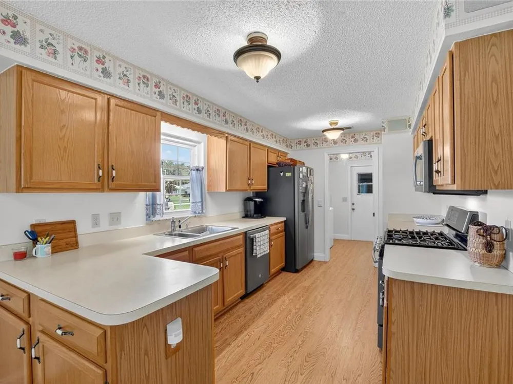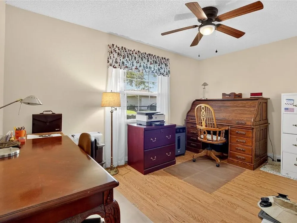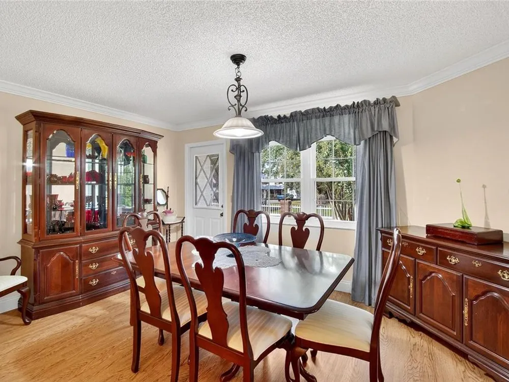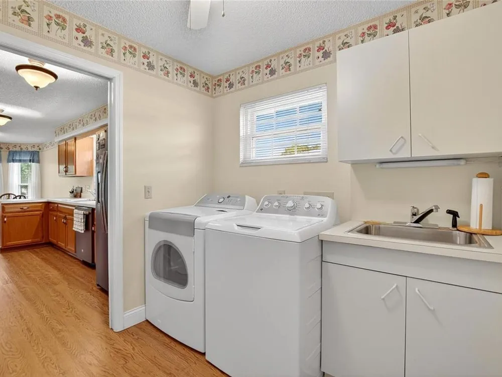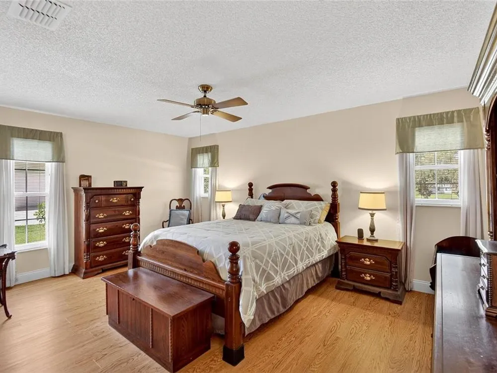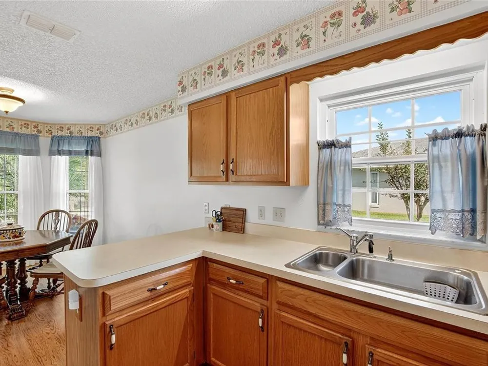Welcome home to this gorgeous 3-bedroom, 2-bath residence with 1,857 square feet of gracious living in the highly sought-after 55+ gated community of Silver Lakes. Set on a premium .25 lot, one of the largest in the neighborhood, this home offers extra elbow room between neighbors, a spacious backyard, and a meticulously maintained interior that’s truly move-in ready. From the moment you step through the front door, you’ll be drawn to the soaring ceilings, open floor plan, and the spacious living room that flows seamlessly into the dining and kitchen areas. Luxury vinyl plank flooring and 5 inch baseboards flows throughout the entire home - no carpeting here! The kitchen features abundant cabinet and counter space, a breakfast bar, closet pantry, cozy breakfast nook, and an upgraded GE Black Stainless Appliance Suite with natural gas range, refrigerator, dishwasher, and microwave. The inside utility room adds convenience with a utility sink, additional storage cabinets, and plenty of space to stay organized. The washer and gas dryer are included with the home. The formal dining room is both elegant and inviting, enhanced by beautiful crown molding that adds a touch of sophistication. Large windows frame picturesque views of the backyard, filling the room with natural light and creating the perfect setting for family dinners, holiday gatherings. The spacious master bedroom offers a comfortable retreat with plenty of room for your favorite furnishings and a large walk-in closet that provides exceptional storage. The ensuite bath is thoughtfully designed with a beautifully tiled shower, a separate wet room for added privacy, a convenient linen closet, and even an additional storage closet—ensuring everything has its place. The two guest bedrooms are tucked away in their own private suite, offering comfort and privacy for family or visitors. Each room features a spacious closet and plenty of natural light, making them perfect for overnight stays or even a home office. A shared bathroom with a tiled tub and shower, along with its own linen closet. The garage is a dream with a workbench, storage cabinets, wet sink, separate side entry, a newer hurricane-rated garage door, and garage door opener. More features include Double-hung tempered glass hurricane windows 2019, Aluminum gutters & soffits 2020, hurricane-rated garage door, garage door opener 2018, HVAC 2018 and a Brand-New 30-year architectural shingle roof will be installed with an accepted offer. Sitting under the shade tree on the front patio or enjoying a cup of coffee on the enclosed 4 seasons front porch or grilling out on the rear patio, relaxation is what it's all about with this home! Silver Lakes is designed for low-maintenance living, along with a low monthly HOA fee of $225 that covers cable, internet, lawn care, & reclaimed water for irrigation. The recently updated Clubhouse is the heart of the neighborhood, offering a junior Olympic-sized heated pool and spa surrounded by a paver patio, a fitness center, sauna, library, kitchen, banquet hall, card room or take a walk around the three lakes in the community. With plenty of activities to choose from, Silver Lakes is welcoming, pet-friendly, and ideally located close to shopping, dining, medical facilities, and I-4 for easy travel to both Tampa and Orlando, as well as world-famous attractions. Don’t miss the chance to own this beautifully maintained home in a beautiful community—schedule your private showing today!