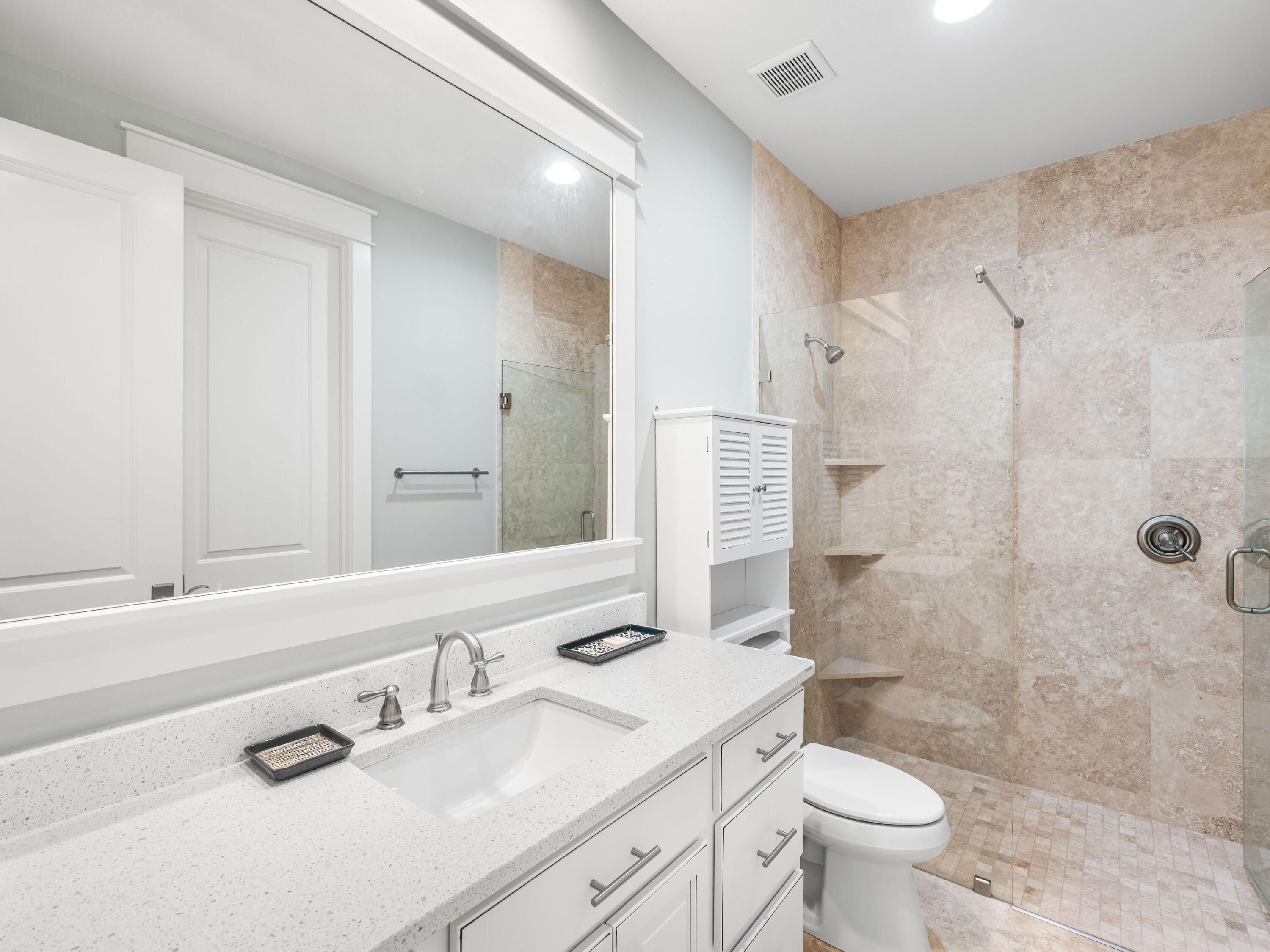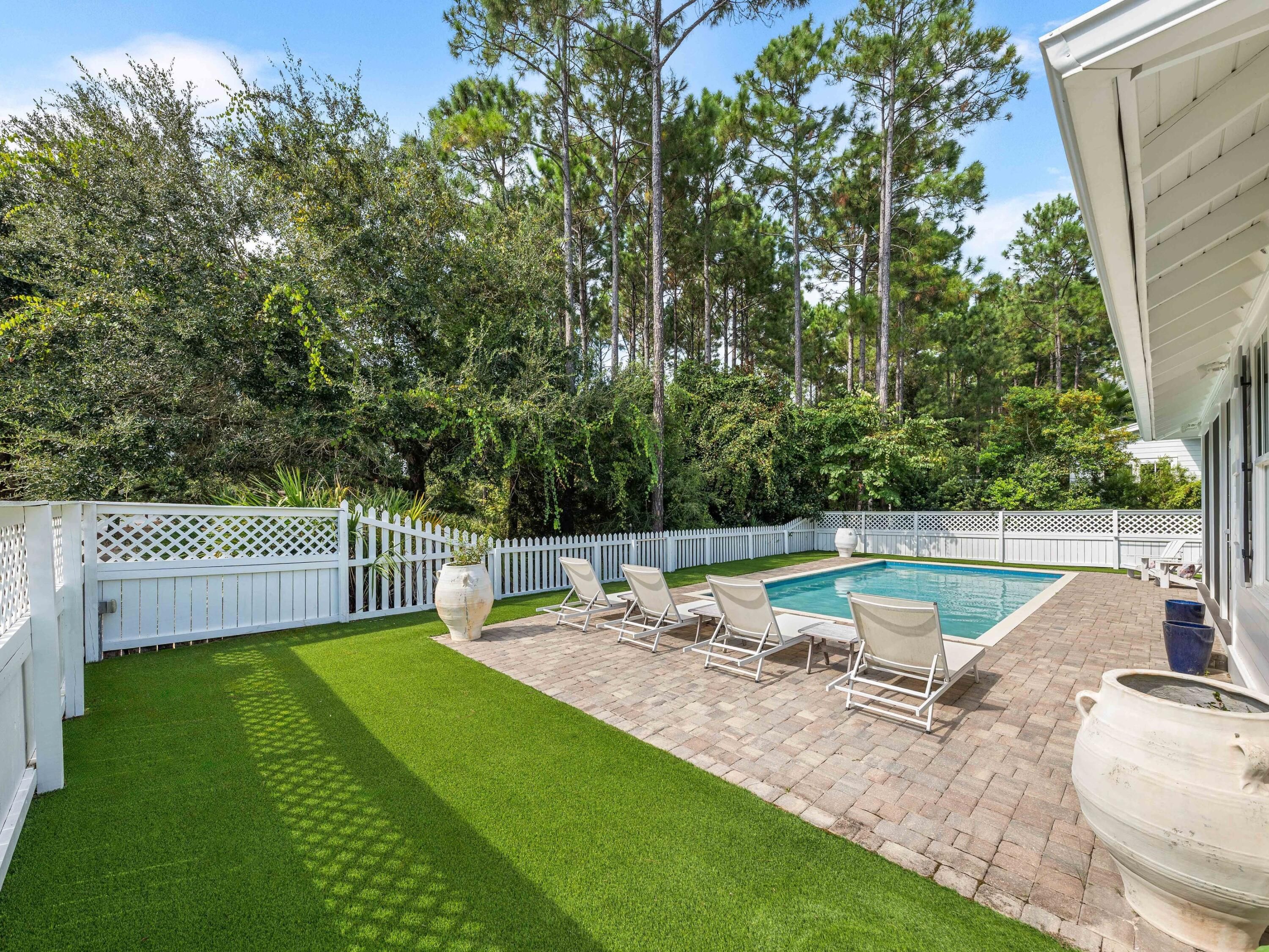 Discover classic coastal style at this immaculate 3-bedroom and 3-bath home positioned on a coveted corner location with a spacious 30 x 14 heated pool. Fronting a green space this home is a rarity in the community of Watersound Origins. A covered front porch welcomes you into open spaces with wood floors and a serene color palette. Abundant natural light shines through the multitude of windows. The spacious living room with custom fireplace and dining area both provide ample room to gather. The gourmet kitchen features quartz countertops, stainless steel appliances and additional custom cabinetry and counter space with a built-in wine fridge and trash compactor. Spend lazy afternoons on the screened porch fronting the backyard with spacious paver courtyard, heated pool and artificial turf. The oversized primary suite includes an ensuite with dual vanities, separate tub, shower and walk-in closet. Two additional guest bedrooms, two full baths and laundry complete the interior of the home. An attached two-car garage with extra storage makes it easy to store all the needs of the beachside lifestyle. Offering modern convenience, the Watersound Origins community is located just minutes from the beaches, shopping and dining. Amenities include the Village Commons with resort style swimming pool, fitness center, tennis and pickleball courts, Origins golf course, parks, walking trails & neighborhood dock on Lake Powell. Don't miss this special opportunity!