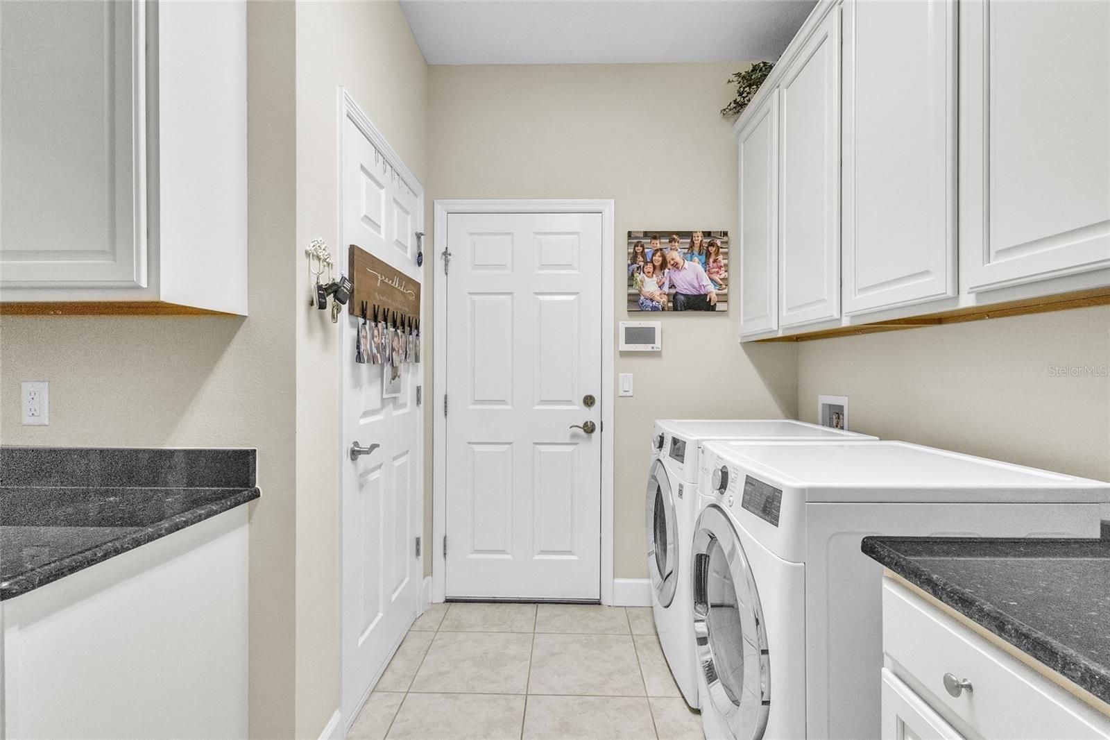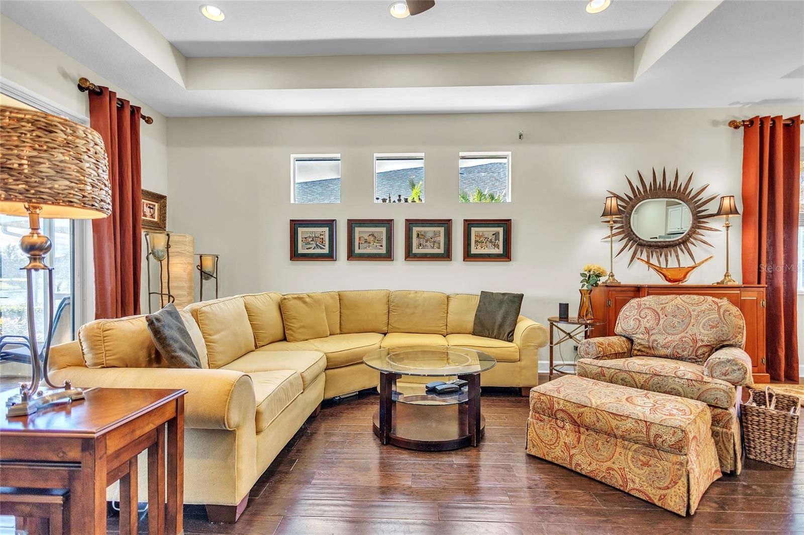 - Kitchen/Family Room Combo, Solid-Wood Cabinets, Tray Ceiling(s), Window Treatments, Ceiling Fan(s), High Ceilings, Living/Dining Room, Open Floorplan, Split Bedrooms, Stone Counters, Thermostat, Walk-In Closet(s)