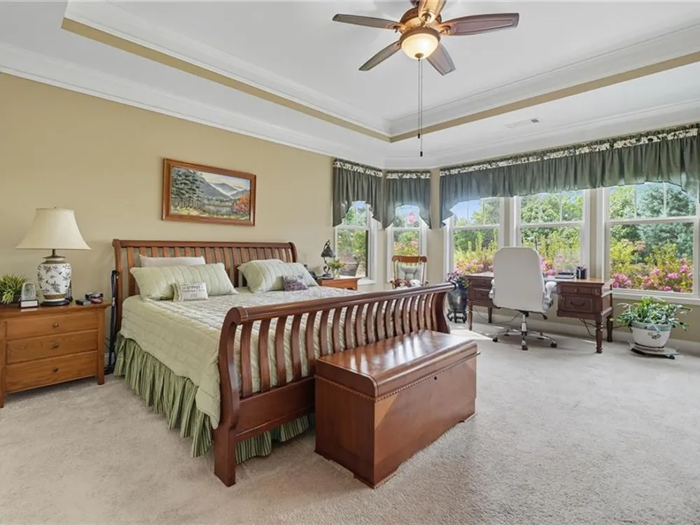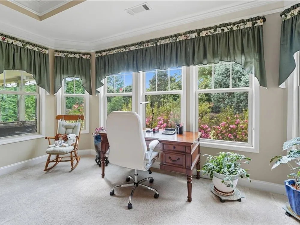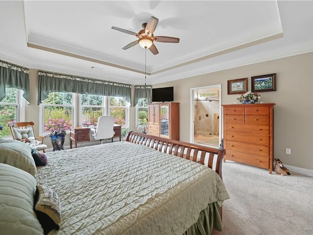 - Crown Molding, Double Vanity, Entrance Foyer, High Ceilings, High Speed Internet, Permanent Attic Stairs, Tray Ceiling(s), Walk-In Closet(s), Bay Window, Dual Pane Window(s), Insulated Windows, Attic, Family Room, Primary Bathroom, Primary Bedroom, Sunroom