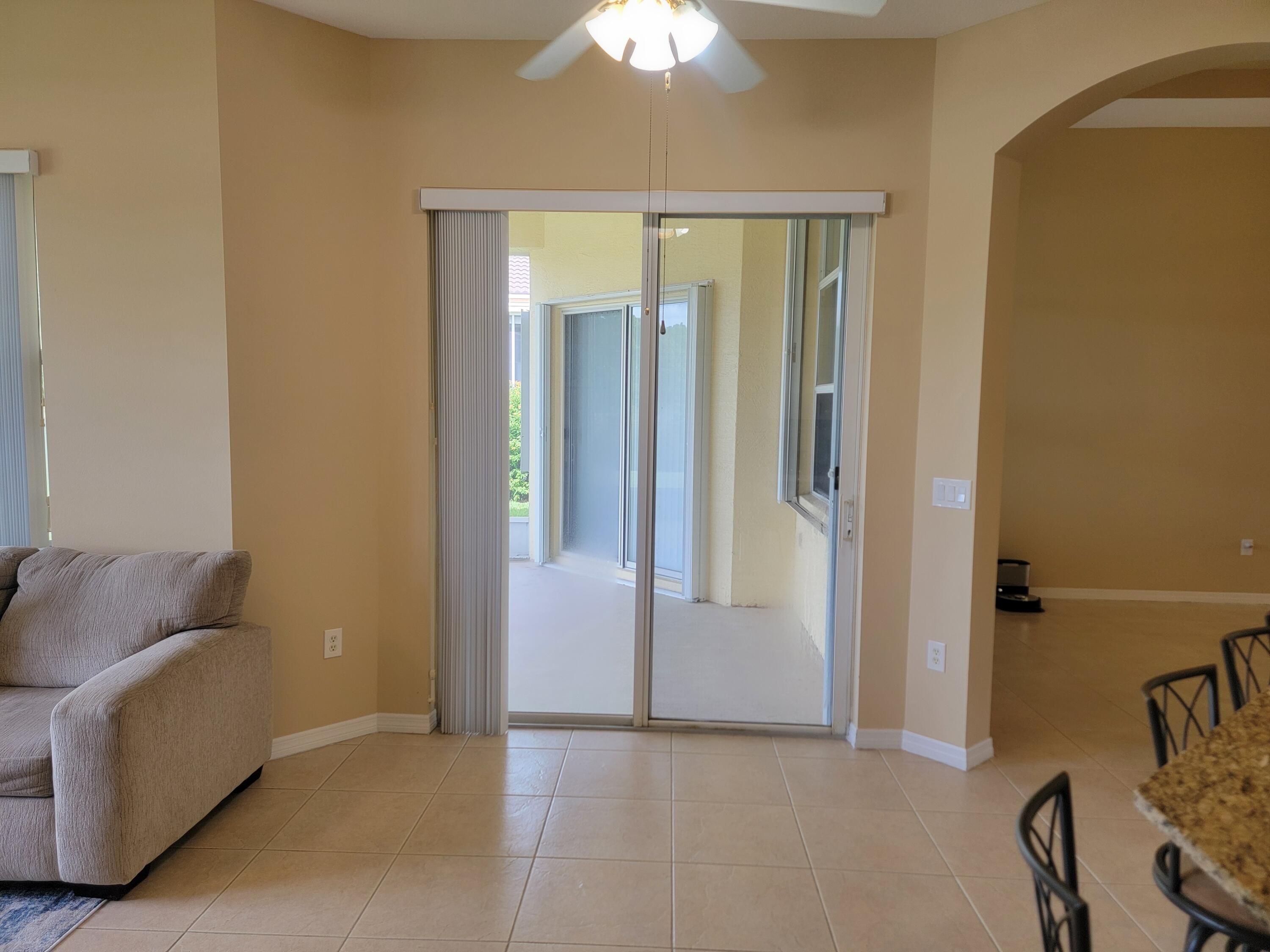 This stunning 3-bedroom, 2-bathroom home with den is perfectly situated on an immaculate lake in the highly desirable gated community of Lake Forest. Featuring volume ceilings and tile flooring throughout, this home is filled with natural light and an open, airy feel. Both the master suite and family room offer sliding glass doors leading to a spacious screened porch, the perfect spot to relax and enjoy tranquil lake views. Recent upgrades include a renovated kitchen with new cabinets, back splash, and appliances, and a whole-house generator for peace of mind. Enjoy outstanding community amenities, including two pools, a fitness center, basketball courts, and a clubhouse. Low HOA fees include cable and lawn care. Can easily be converted to 4 bedroom.