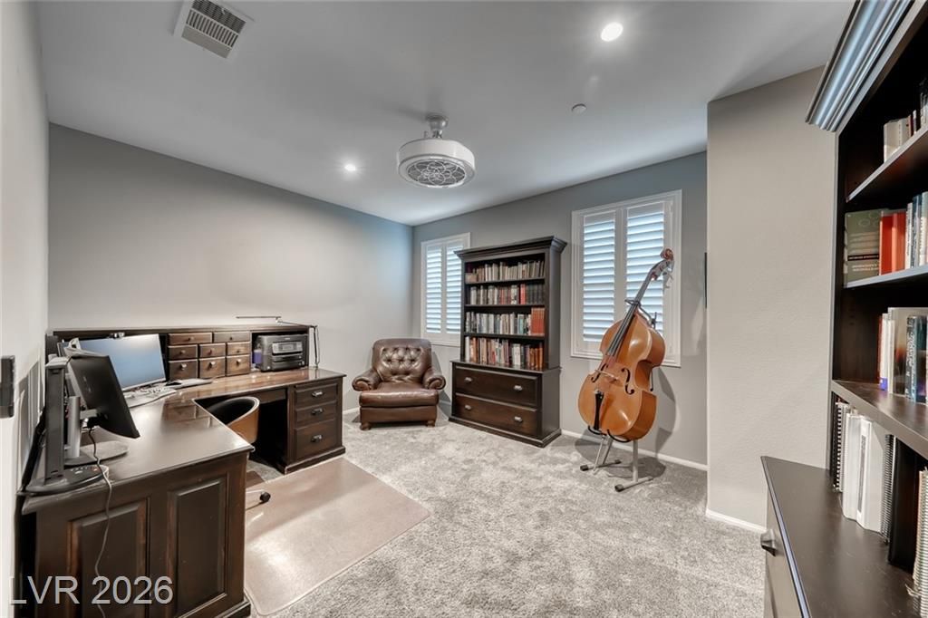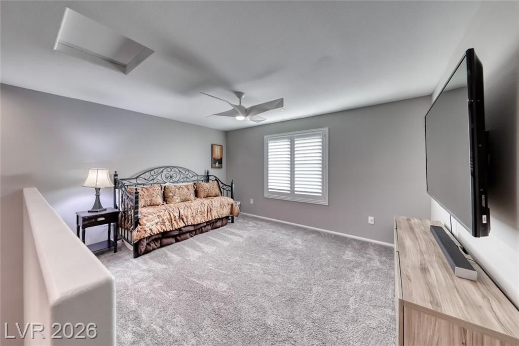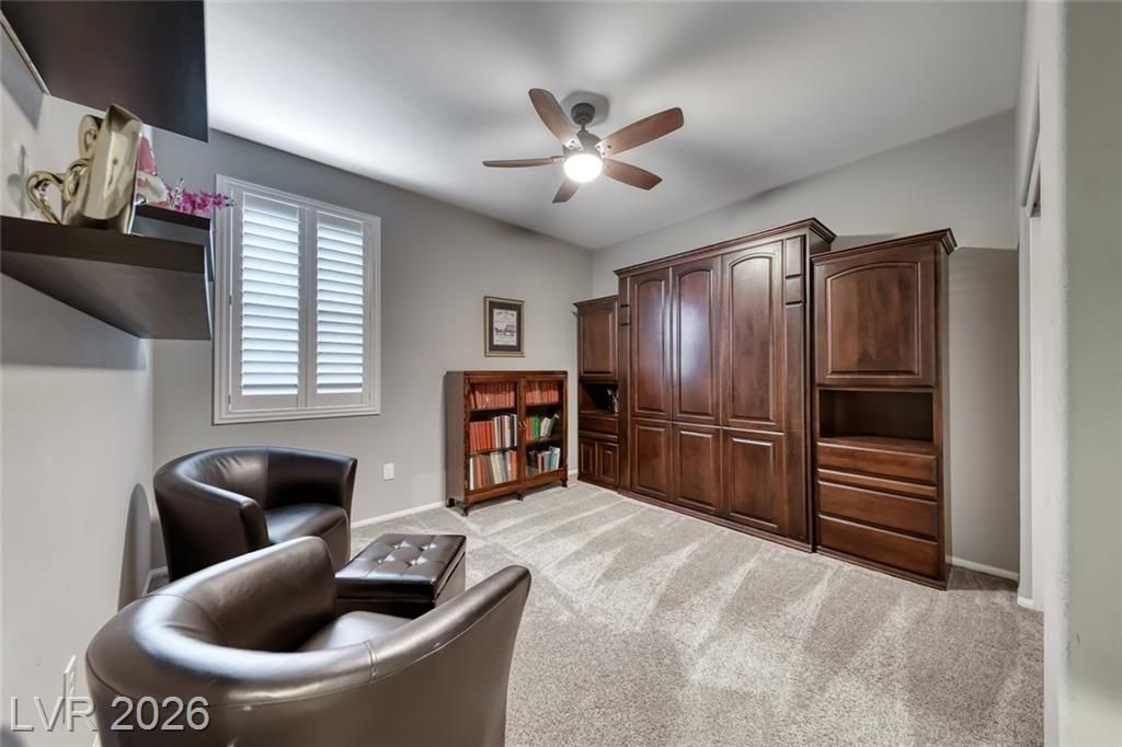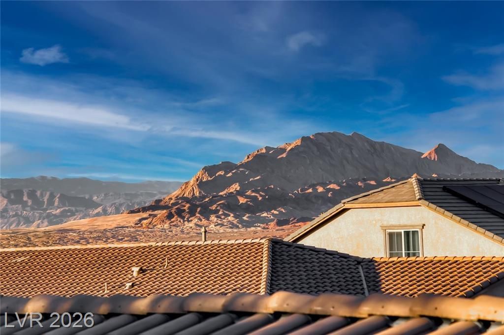 Welcome to the Everett floor plan in the gated Terra Vista community of Henderson. This stunning 1.5-story home offers exceptional flexibility and comfort, featuring a spacious primary suite, two additional bedrooms, and a dedicated office all on the main level. Upstairs, enjoy a versatile loft and a private fourth bedroom with its own bathroom—perfect for guests or multigenerational living. The chef’s kitchen shines with double ovens, a large center island, walk-in pantry, and stainless steel appliances. The great room and dining area open seamlessly to a covered patio and sparkling pool with cover, ideal for indoor-outdoor living. Enjoy breathtaking mountain views that complete this impressive home.