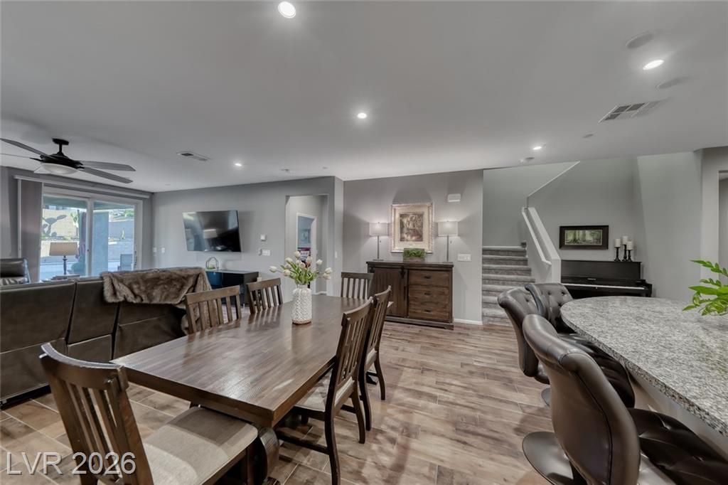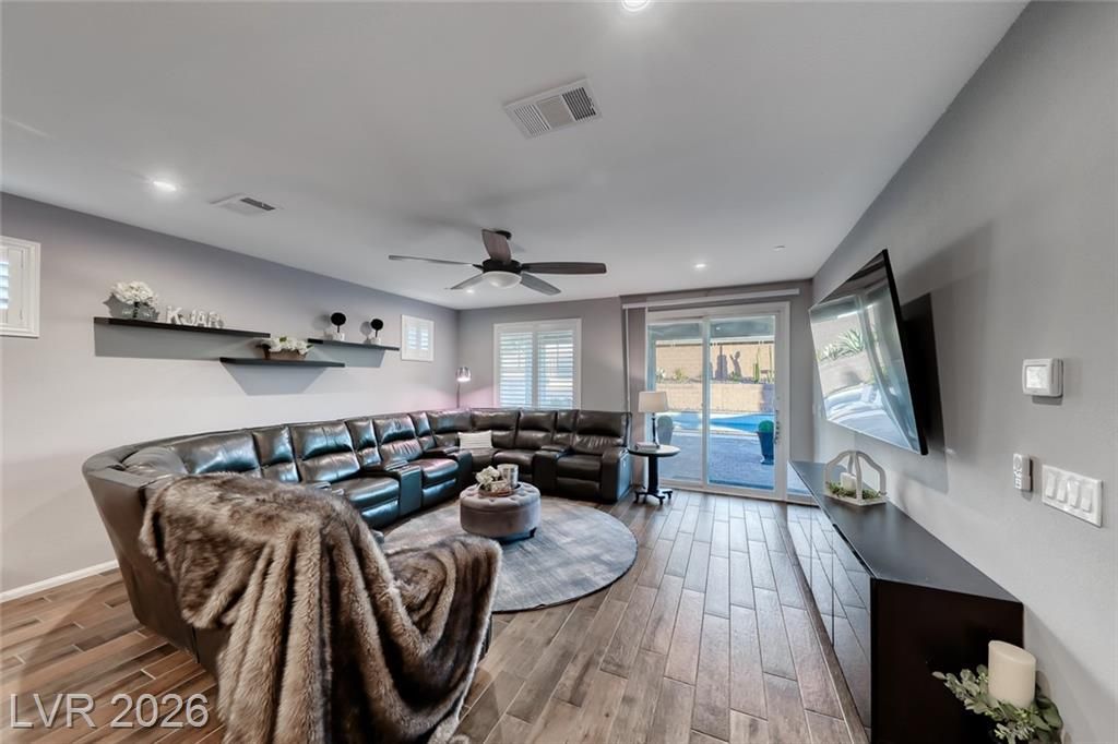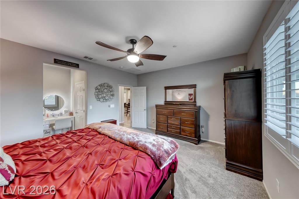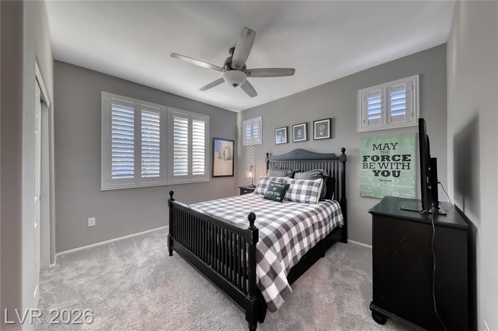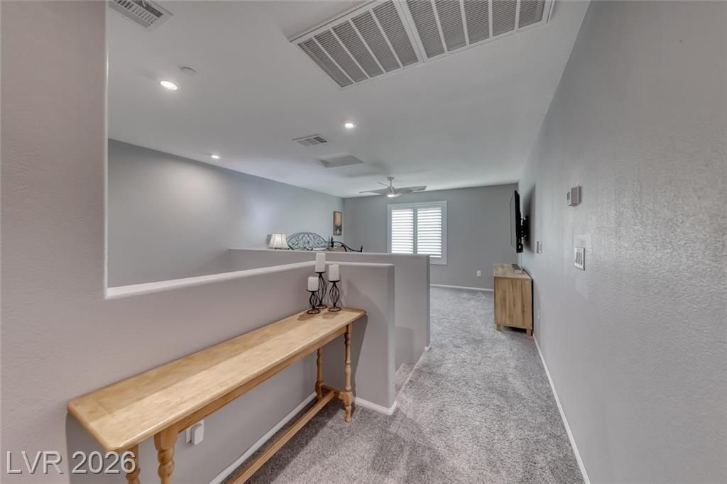 Welcome to the Everett floor plan in the gated Terra Vista community of Henderson. This stunning 1.5-story home offers exceptional flexibility and comfort, featuring a spacious primary suite, two additional bedrooms, and a dedicated office all on the main level. Upstairs, enjoy a versatile loft and a private fourth bedroom with its own bathroom—perfect for guests or multigenerational living. The chef’s kitchen shines with double ovens, a large center island, walk-in pantry, and stainless steel appliances. The great room and dining area open seamlessly to a covered patio and sparkling pool with cover, ideal for indoor-outdoor living. Enjoy breathtaking mountain views that complete this impressive home.