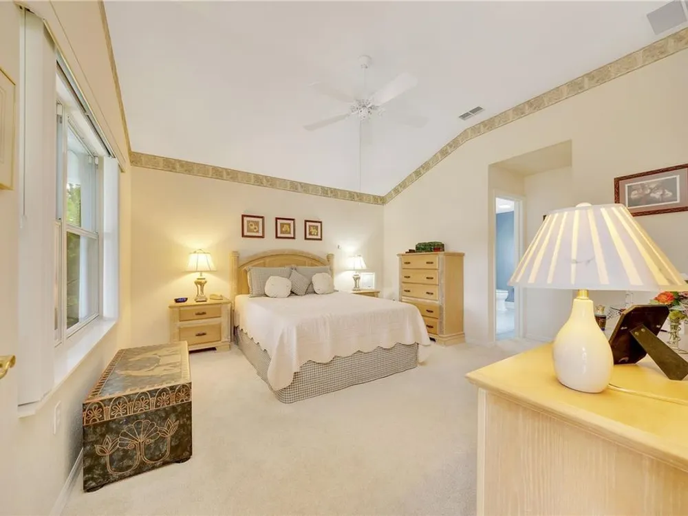 - Ceiling Fan(s), Eat-in Kitchen, High Ceilings, Open Floorplan, Main Level Primary, Split Bedrooms, Window Treatments