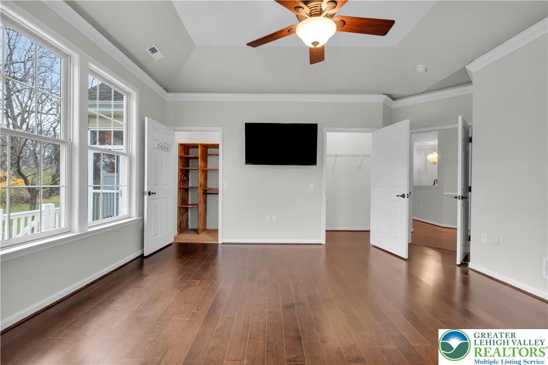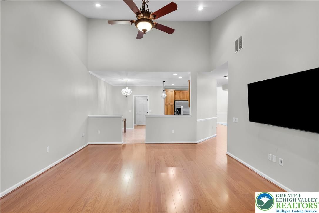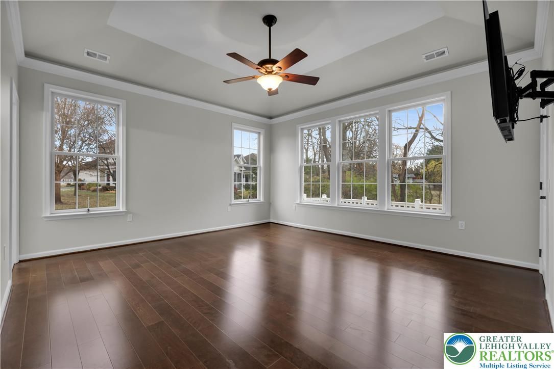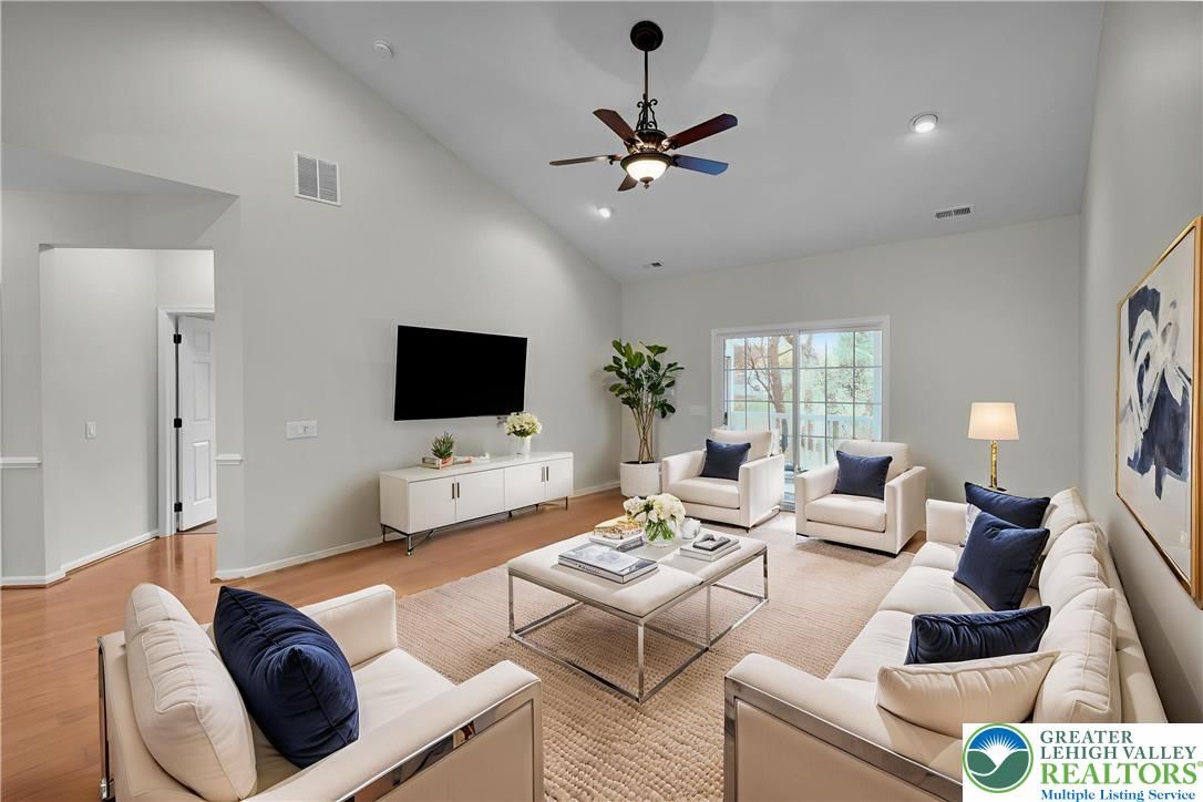 Discover one of the best active-adult, 55+ Communities in "Traditions of America at Hanover." Experience a low-maintenance, enjoyable life, w/resort-style amenities, including a vibrant clubhouse, heated outdoor pool, tennis/pickle ball courts & fitness center. This immaculate 2 Bdrm, 2 Bath Condo is perfectly situated on a spacious lot, w/a private tree-lined backdrop. Step inside to a sun-drenched, 2-story foyer, accentuated by a striking transom window & ceramic plank flooring. Fresh paint & gleaming wood floors flow seamlessly throughout the majority of the home, evoking a timeless & inviting elegance. The open floor plan leads you to a centrally located Kitchen, featuring high end finishes & a cozy breakfast area. A formal Dining Room distinguished by custom millwork & a built-in window seat, is the ideal space for entertaining. The Family Room, w/it's soaring vaulted ceiling, creates an inviting & spacious atmosphere. From here, step out to the screened-in porch & adjoining patio, where you can relax & enjoy the tranquil setting. The exquisite Primary Suite is a true sanctuary, enhanced by a striking tray ceiling that elevates the room & an abundance of windows that bathe the space w/natural light. The stunning NEW En-Ste offers a spa-like experience w/a large walk-in rainfall shower & a built-in shower bench. The 2nd Bedroom & hall Bath offer ample space for guests. An attached 2-car Garage & 2nd floor Bonus Room boasts convenience & added storage. Clear CO included.