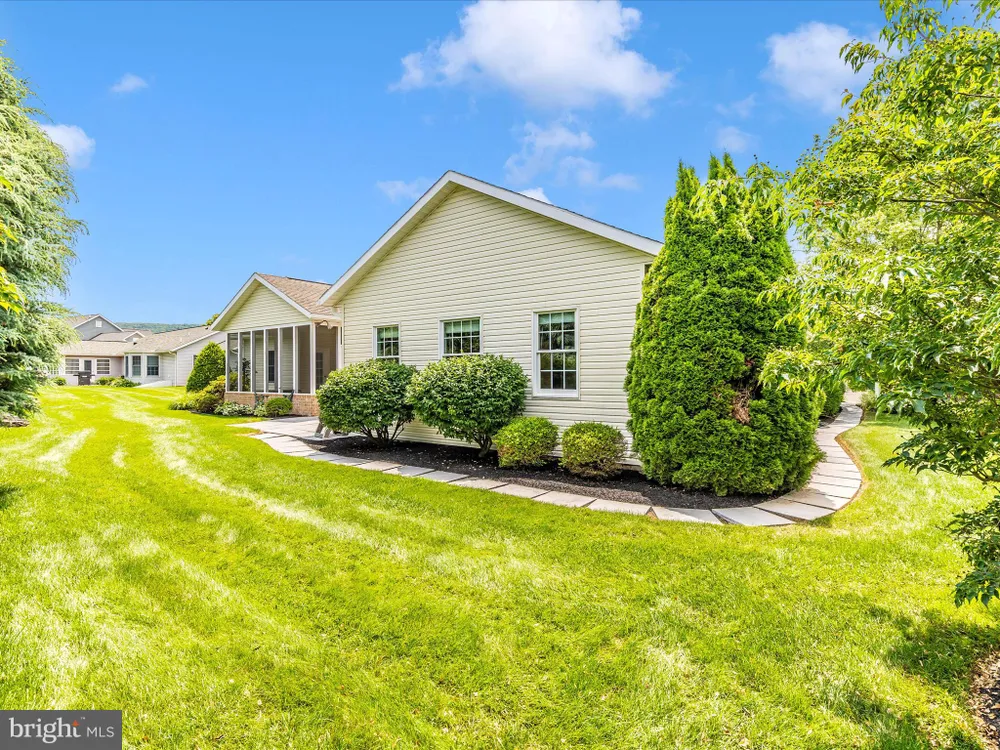 In the Penn National golf course community-William Armstrong built brick front rancher. Features include: 3 bedrooms, including a large primary suite with sitting area and attached bath with 8x11 walk in closet, 3.5 total baths, hardwood floors throughout the main living area, office with built in bookcase on the front of the home, gas fireplace,, upgraded kitchen with solid surface counters and tile backsplash, both formal and informal dining, marvelous 3 season screened porch on the back, privacy to the rear, partially finished basement that includes family room, hobby room, game/exercise area, full bath, and possible 4th bedroom, and plenty of storage. 24x23 2 car garage. Schedule your visit today!