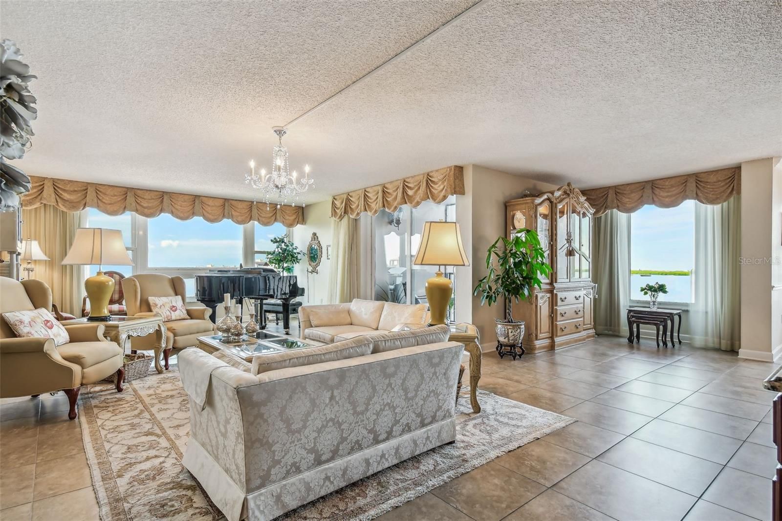 Welcome to your coastal sanctuary in the sought-after 55-plus community of Edgewater Arms, where breathtaking waterfront views meet modern luxury. This beautifully renovated condominium, completely updated in 2015, showcases a blend of style, comfort and durability, with impact windows throughout for peace of mind. Go inside to unobstructed vistas stretching to Caladesi Island and beyond. The expansive living room, featuring an electric fireplace and custom-built entertainment bar with wine cooler, is ideal for relaxing or entertaining. Glass sliders lead to your private balcony, where sea breezes and stunning sunsets become part of your everyday life. The kitchen flows seamlessly into the dining area and offers a large walk-in pantry for all your culinary needs. The primary suite is a retreat, with a spa-like bath, dual vanities and a spacious walk-in closet. Two additional bedrooms and a full guest bath provide comfort for family or friends, while the in-unit washer and dryer make everyday living easy. Edgewater Arms offers an array of amenities designed for leisure and connection, such as heated waterfront pool, kayak launch, shuffleboard courts, ping pong and billiards, and a tiki hut with a gas grill for social gatherings by the water. Enjoy sunsets from the serene waterfront park or visit downtown Dunedin, with its restaurants, cafes, breweries, live music, art festivals and more. Just minutes from Dunedin Marina, Honeymoon Island beaches and the Toronto Blue Jays spring training ballpark, this location combines an active lifestyle with peaceful coastal living.