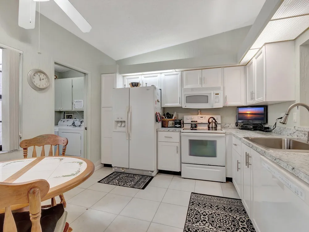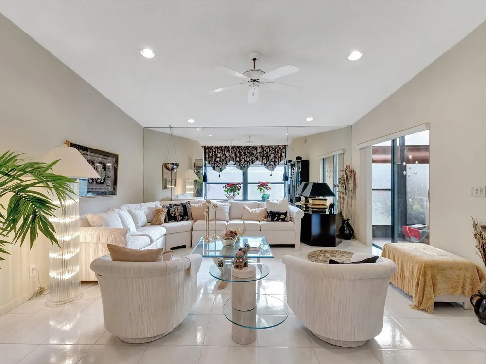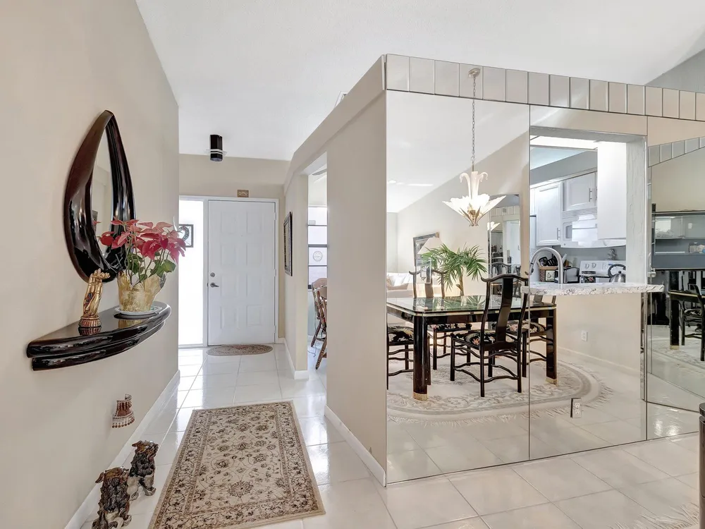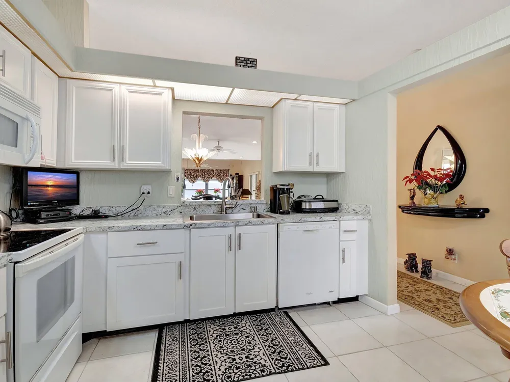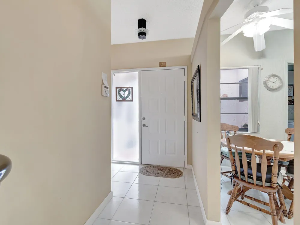 Welcome to the vibrant adult community of Huntington Pointe, located within the serene locale of 6344 Kings Gate Circle in Delray Beach, Florida. The property, a distinctive Capri model, embodies the epitome of spacious living.On entry, the discerning eye will immediately recognize the elegance and modernity distilled in the lavish tiles that adorn the entire property, excluding two bedrooms that boast plush, immaculate carpets. The kitchen, favorably expansive and imbued with natural light, is equipped with designated spaces for comfortable, unhindered culinary activities. It adjoins seamlessly with an organized laundry room and an accommodating one-car garage, promoting ease and efficiency.