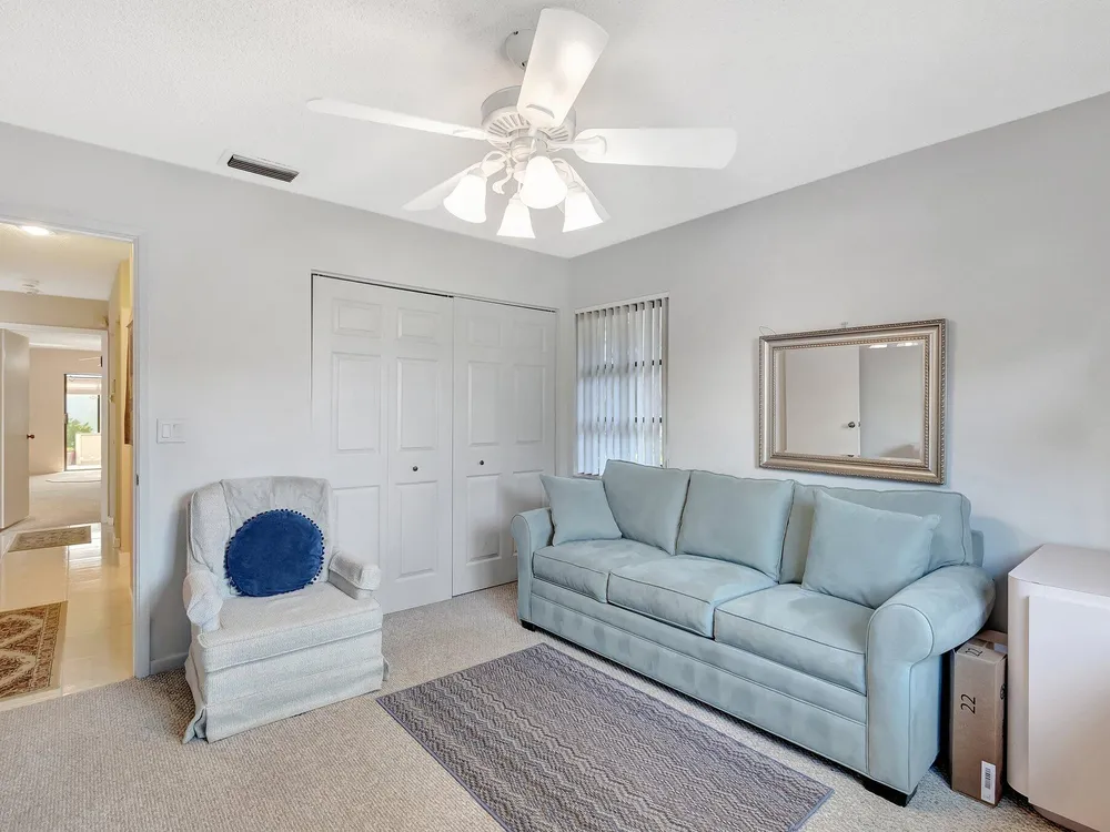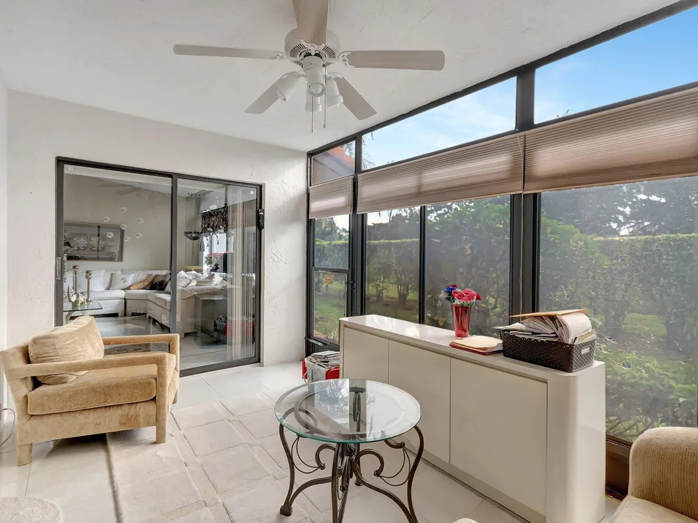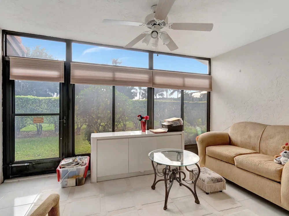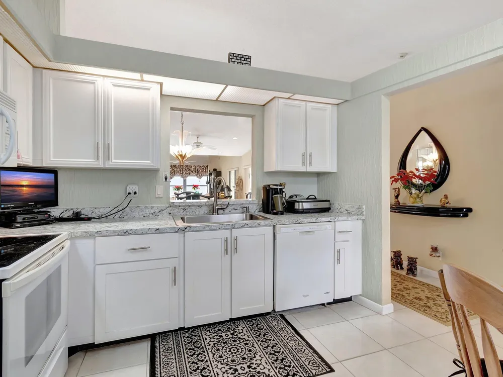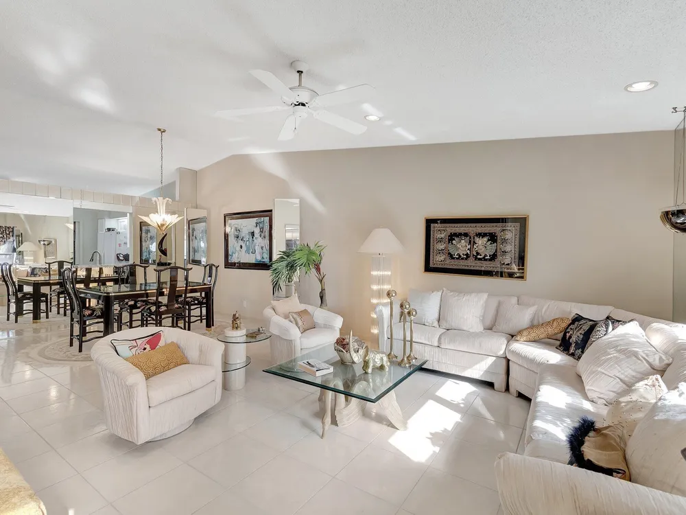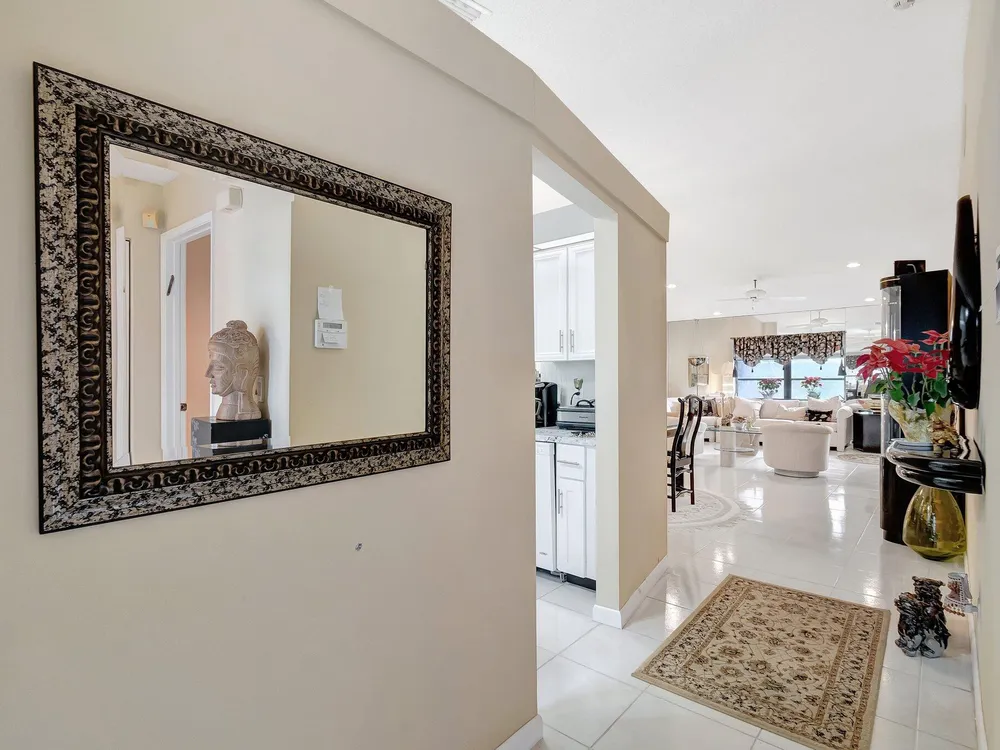 Welcome to the vibrant adult community of Huntington Pointe, located within the serene locale of 6344 Kings Gate Circle in Delray Beach, Florida. The property, a distinctive Capri model, embodies the epitome of spacious living.On entry, the discerning eye will immediately recognize the elegance and modernity distilled in the lavish tiles that adorn the entire property, excluding two bedrooms that boast plush, immaculate carpets. The kitchen, favorably expansive and imbued with natural light, is equipped with designated spaces for comfortable, unhindered culinary activities. It adjoins seamlessly with an organized laundry room and an accommodating one-car garage, promoting ease and efficiency.