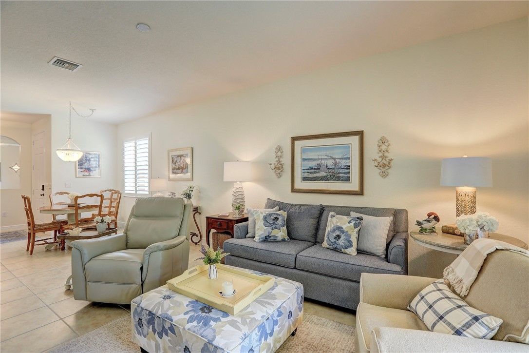 Beautiful end unit 3-bed, 2-bath, 1-car garage villa located in the desirable 55+ community of Woodfield. This well-maintained home features a split floor plan, offering plenty of privacy for guests. The large kitchen provides ample cabinetry and workspace, both bathrooms are equipped with walk-in showers for added comfort, short walk to the clubhouse, where residents enjoy a full social calendar of tennis, bocce ball, billiards, a fitness center, a heated pool and spa. HOA includes cable TV and internet. Conveniently located near shopping, dining and Vero's beautiful coastline. rmszsapprox