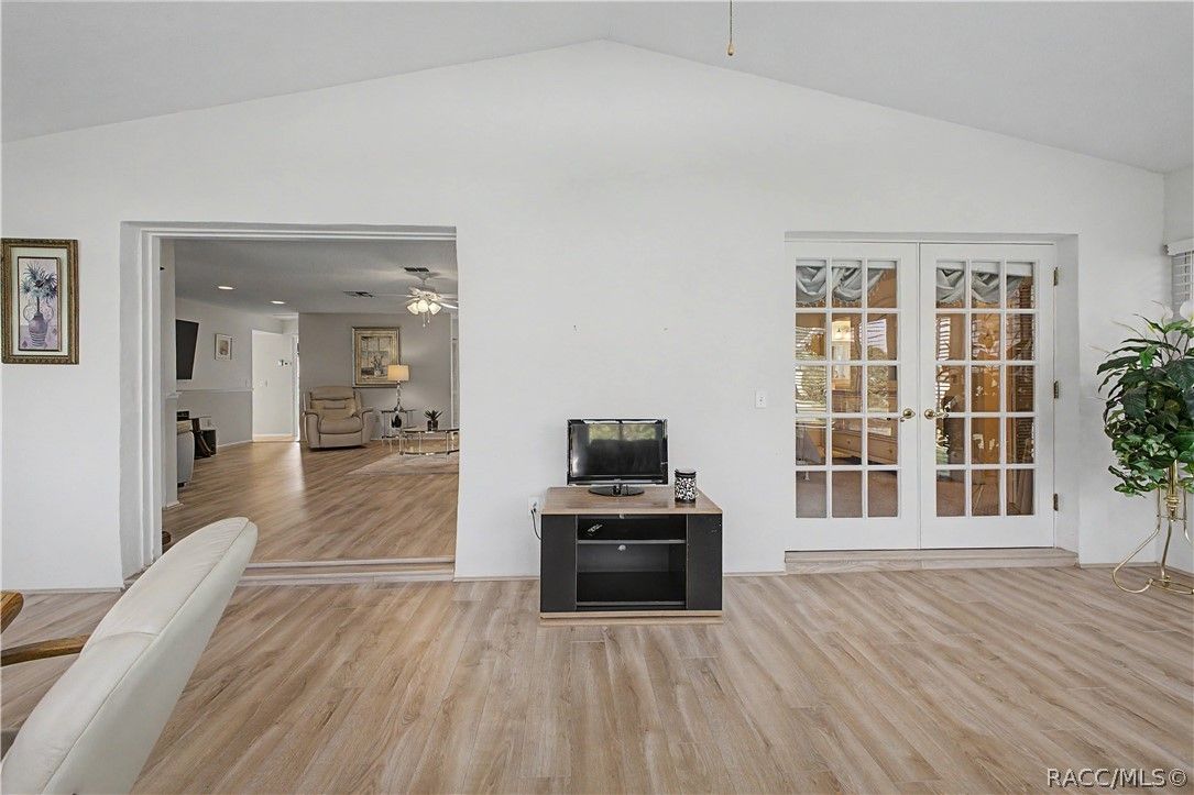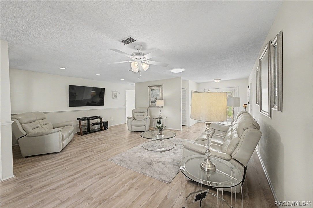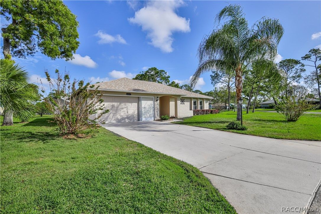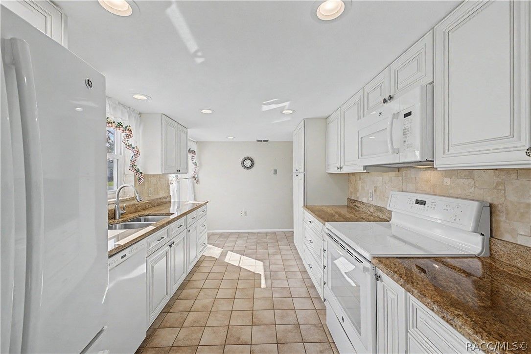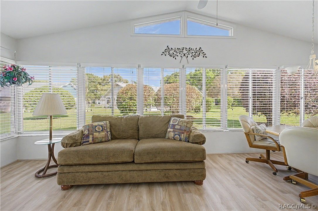 Welcome to an absolutely charming, well-maintained home offering a desirable split floor plan with 2 bedrooms, 2 bathrooms, and a 2-car garage, all situated on a spacious corner lot with irrigation. Enter through double doors into the formal living room, featuring beautiful luxury vinyl plank flooring, a ceiling fan, chair rail detailing, and a solar tube that fills the space with natural light. The guest wing is privately located and includes a front-facing bedroom with a large closet, along with a full bathroom featuring a tub and shower combination. The hallway offers two additional closets for ample storage. The kitchen has been tastefully updated with granite countertops, wood cabinetry, pull-out pantry shelving, drawer storage, a stainless sink, and a window overlooking the yard--perfect for both functionality and charm. The formal dining room includes a built-in dry bar, ceiling fan, and opens seamlessly to the enclosed lanai. You'll love the expansive enclosed lanai with vaulted ceilings, transom windows, and windows all around, creating a bright and inviting space for relaxing or entertaining. A door leads out to a brick paver patio, extending your outdoor living options. The main bedroom suite features a large walk-in closet, ceiling fan, and French doors that open to the lanai. The en-suite bathroom has been updated with a walk-in shower, granite-topped vanity, and a new toilet with bidet. Additional highlights include new windows 2015, roof 2024, HVAC system (2010), laundry area with sink in the garage, and overall pride of ownership throughout. Timber Pines is an award winning, guard-gated, 55+, deed-restricted community offering resort-style lifestyle: three 18-hole golf courses, a 9-hole pitch & putt, tennis, 12 pickleball courts, two community swimming pools, country club restaurant and bar, fitness center, billiards, performing arts, and over 100 social clubs and activities. With major updates already completed and a layout designed for everyday living and entertaining, this home is move-in ready.