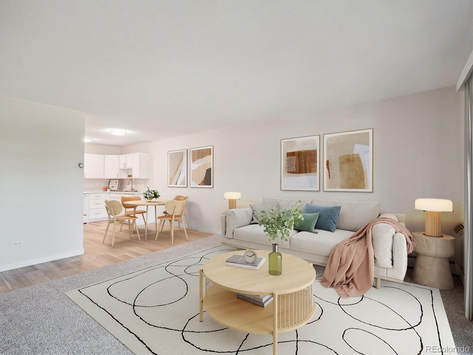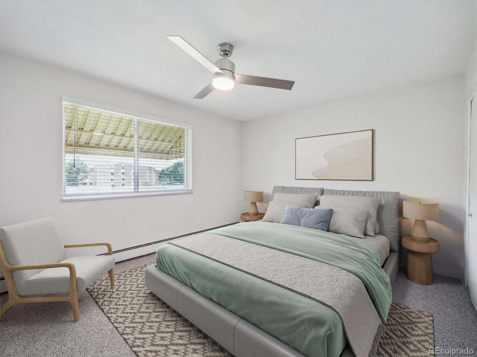 Price Reduced! Call listor for details! Updated corner condo in great location overlooking large courtyard! Building backs Windsor West walking trail, nature preserve, & access next to highline canal. Many updates to include new paint, carpet, and vinyl flooring. This is a 3rd floor- popular corner 945 sf condo w/2 bedrooms, 1 bathroom, & 1 detached garage w/new opener included! Kitchen features 4 piece white appliance package, white painted cabinetry, & new countertop/sink/faucet. Bathroom updates include new vanity/top, fixtures, and glazed tub surround. Spacious primary bedroom with long wall closet. Living room open to kitchen, and also features screened in lanai/balcony & vinyl slider door included. Digital wall ac in living room. Bonus storage closet in building on same floor as condo. Elevator building. Great opportunity to pick up this gem as your new home! **Windsor Gardens is Colorado's Largest Age 55+ Active Adult Living Condo Community. Did you know? Monthly HOA Dues include annual property taxes! And heat, water, sewer, trash, round-the-clock patrolling community responders, full time onsite association management, grounds/building maintenance, and activities department. Enjoy clubhouse amenities such as fitness center, indoor/outdoor pools, hot tub, sauna, billiards, library, craft rooms for ceramics, sewing, woodworking, and 9 hole par 3 golf course and onsite restaurant both open to the public. Stay engaged with a wide array of activities, clubs, and events scheduled every month. Additional features include garden plot program, private walking trail and nature preserve, and RV/Boat storage. The Highline Canal runs full length along south side of the complex. RTD Bus Stops located thru-out the community. FHA/VA approved. Close to restaurants, stores, shopping…Minutes to Lowry, Hwy 225, Cherry Creek…Easy access to DIA and downtown. Come see for yourself what Windsor Gardens has to offer. ©2021**
