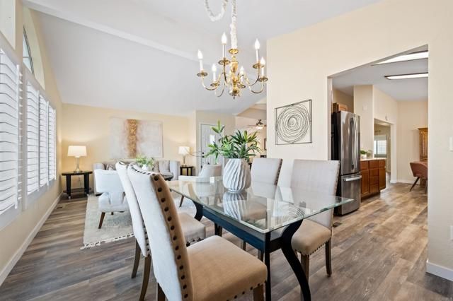 Amazing home in Vista Del Mar 55+ community with 2 car garage AND no space rent as you own the land! Spacious open floorplan with luxury vinyl flooring, plantation shutters, ceiling fans, large living/dining room and family room with french doors leading to your outdoor entertaining area. Also open to ample size kitchen w/tons of storage cabinets, beautiful honey gold granite counters, SS appliances, DOUBLE OVEN, eating nook (french door refrigerator stays). Large primary suite with 3 closets so lots of storage, walk-in shower and extra linen cabinets, dual sinks & granite countertop. Hall bath has granite counter and shower/tub. Extra-large laundry room with utility sink & lots of cabinets (washer/dryer stays). Enjoy your covered outdoor space, plenty of room for entertaining which also flows indoors, stamped concrete & storage shed attached. LOW HOA with resort amenities including clubhouse, pool, spa, gym, pickleball & tennis courts, fitness center, library & RV/boat parking. A diamond close to beaches & restaurants and EZ fwy access.