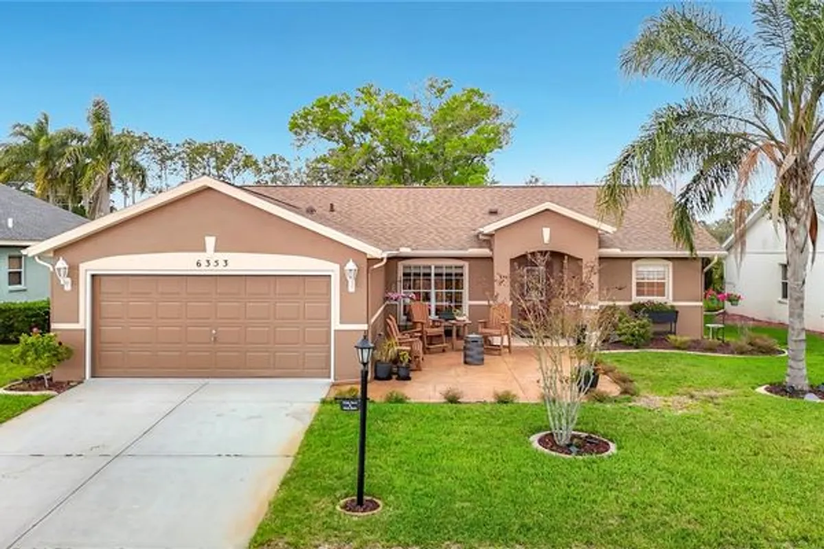 Lovely single family home in the established and gated subdivision of 55 and over TIMBER GREENS! This 3/2/2 has updates galore! Large updated screened in lanai offers additional square footage with new floors, new windows and doors with ceiling fan and light. Another outside patio area, sitting area with new lamp post, and updated outdoor electric to enjoy the outdoors. All new wood look tile throughout! Open floorplan concept and with large/open kitchen in the center and split bedrooms. Kitchen has newer appliances, cabinet sliders and backsplash. Inside laundry room! Master bath has a brand new shower installed and shows like a dream! FRESH EXTERIOR PAINT! Large front porch to greet your guests and sit outside. Floor plan is ideal! Timber Greens has a social calendar to keep you busy year round. Plenty of amenities including an 18-hole golf course, clubhouse, pro shop, community pool and spa, pickleball and tennis courts, bocce, shuffleboard, arts and craft activities, and the popular 19th hole bar and grill. Golf cart friendly throughout! Close to plenty of shopping, dining, and nature park nearby. Timber Greens is a wonderful community with plenty of recreational activities. NEW WATER HEATER/ROOF 2019