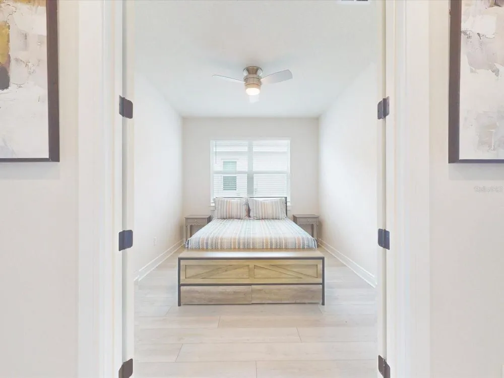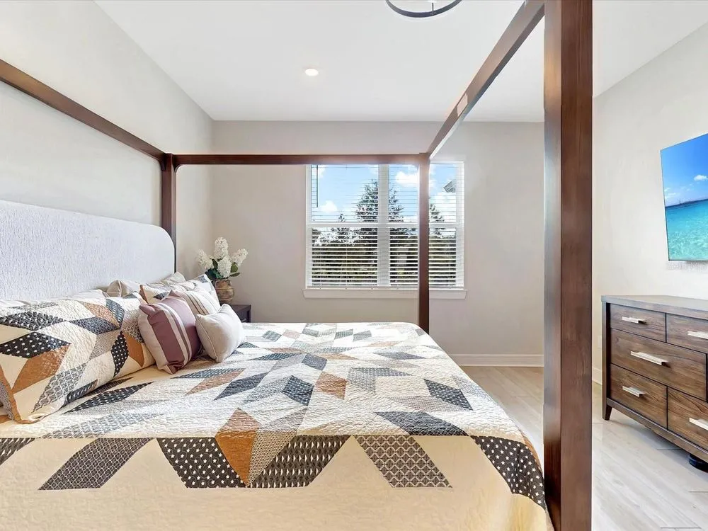 Welcome to your dream retreat! This charming Prosperity floorplan 2-bedroom, 2-bath home with a flexible bonus space offers the perfect blend of comfort and style. Just steps from the community clubhouse, it’s ideally located for both convenience and connection. Imagine sipping your favorite drink on the back porch as the sun sets over the water—every evening feels like a vacation. Inside, the open layout is filled with thoughtful upgrades, from soft-close cabinets and sparkling quartz countertops to top-of-the-line KitchenAid appliances and designer lighting that elevates every room. The primary suite is a true sanctuary with its spacious walk-in shower, dual sinks and walk-in closet, while the fully equipped laundry room complete with a sink and additional cabinetry makes everyday tasks effortless. Even the garage shines with epoxy-coated floors, an EV charging outlet, and a whole-house water softener and filtration system. Barely lived in, this home still has that “new home” feel, and all builder warranties will convey for your peace of mind. Why wait to build when you can step right into a home that’s as fresh as new, with every luxury detail already in place? perfectly situated in the desirable 55+ gated community of Del Webb Sunbridge. Del Webb Sunbridge offers an exceptional lifestyle, with resort-style amenities including lawn maintenance, internet service, and access to the Hammock Club—featuring a zero-entry pool, resistance pool, heated spa, fitness rooms, ballroom, tech seminar space, craft studios, an on-site restaurant, firepit lounge, outdoor cabana kitchen, pool table, tennis and pickleball courts, and more. The community is also natural gas powered, golf-cart friendly, and located across from the scenic 2,000-acre Split Oak Forest. This home is move-in ready, sellers are open to also negotiating furnishings and it is still under builders warranty! Schedule your private showing today and take the first step toward the lifestyle you’ve been waiting for. Enjoy close proximity to the community Club house and water views from your back porch.