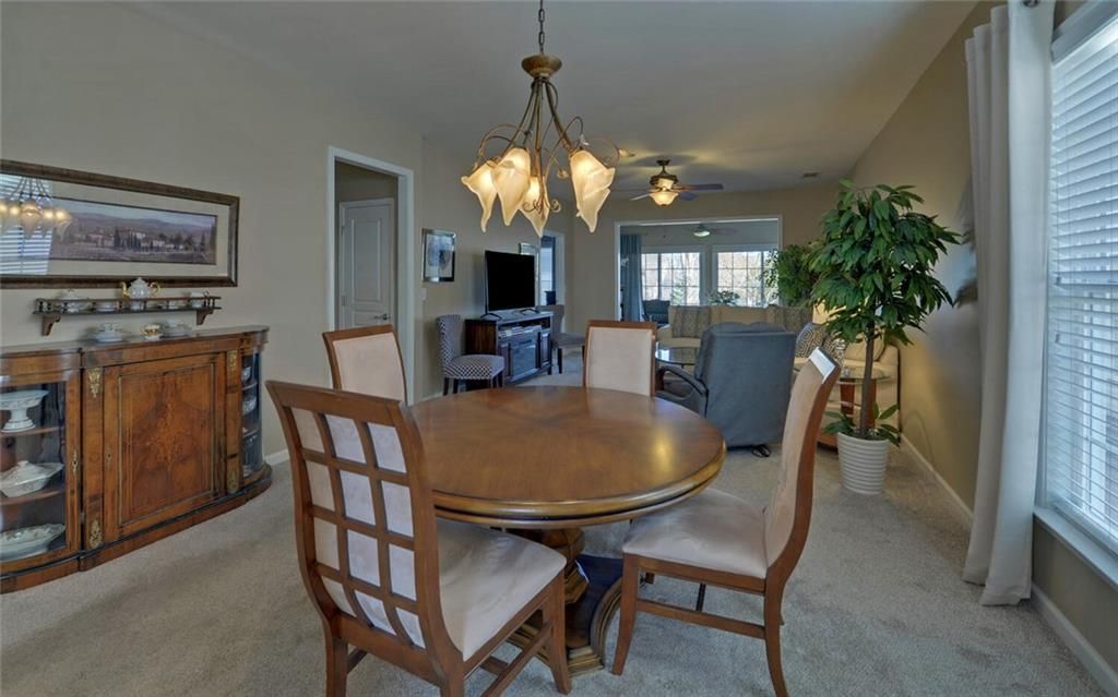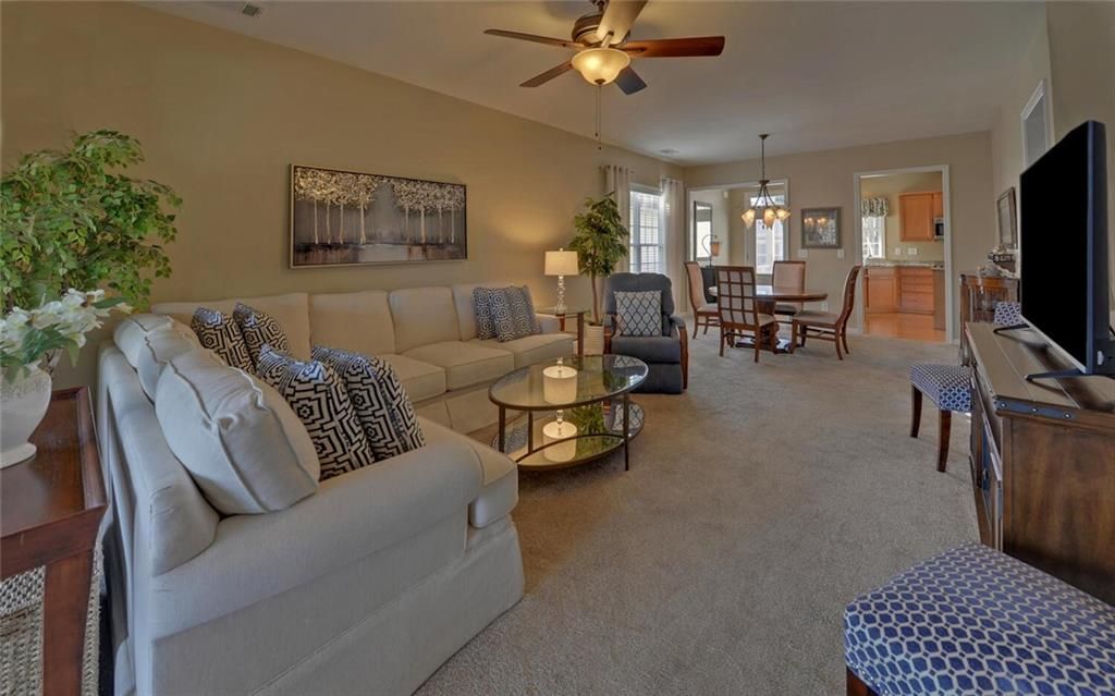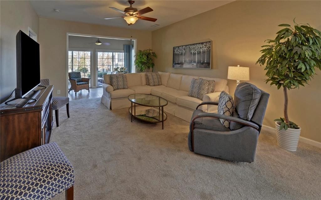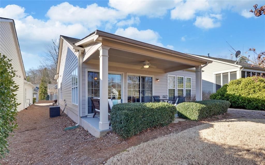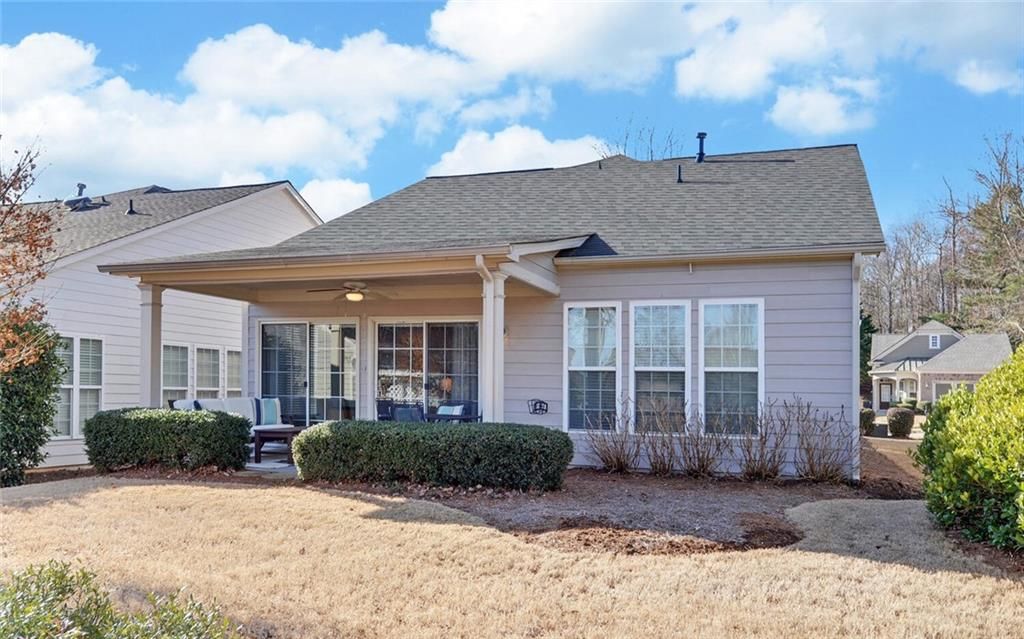 This 2 bedroom, 2 bath home with Sunroom, covered lanai and large eat in kitchen is located on a terrific lot with spacious backyard. There is a 2 car garage and covered front Porch. Very well maintained. Located in a premier 55+ gated community with indoor and outdoor pools, f/t activities director, huge fitness center, bocce, tennis, pickleball, playground and softball venues. 100’s of clubs and interest groups. Come live like you are always on vacation. Close to dining shopping, and medical needs. HOA dues include use of all amenities and lawn maintenance. Sr school tax friendly Hall county!