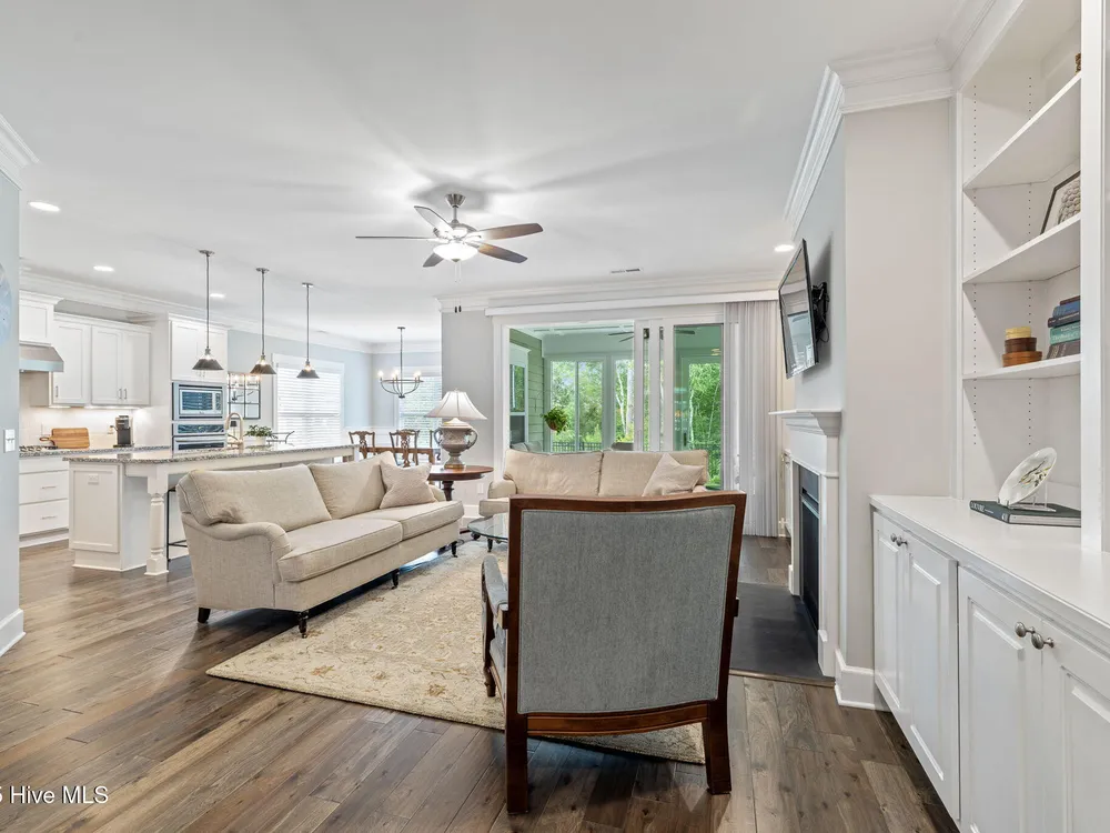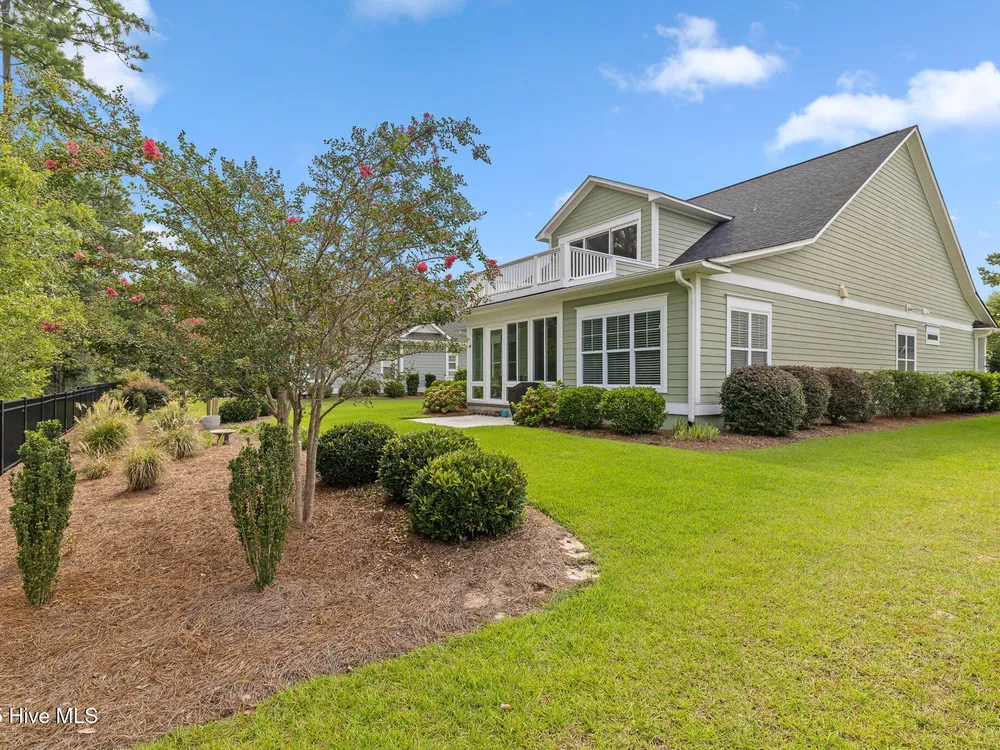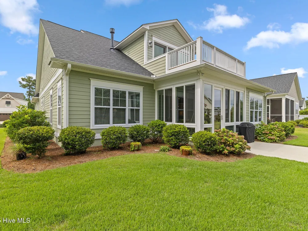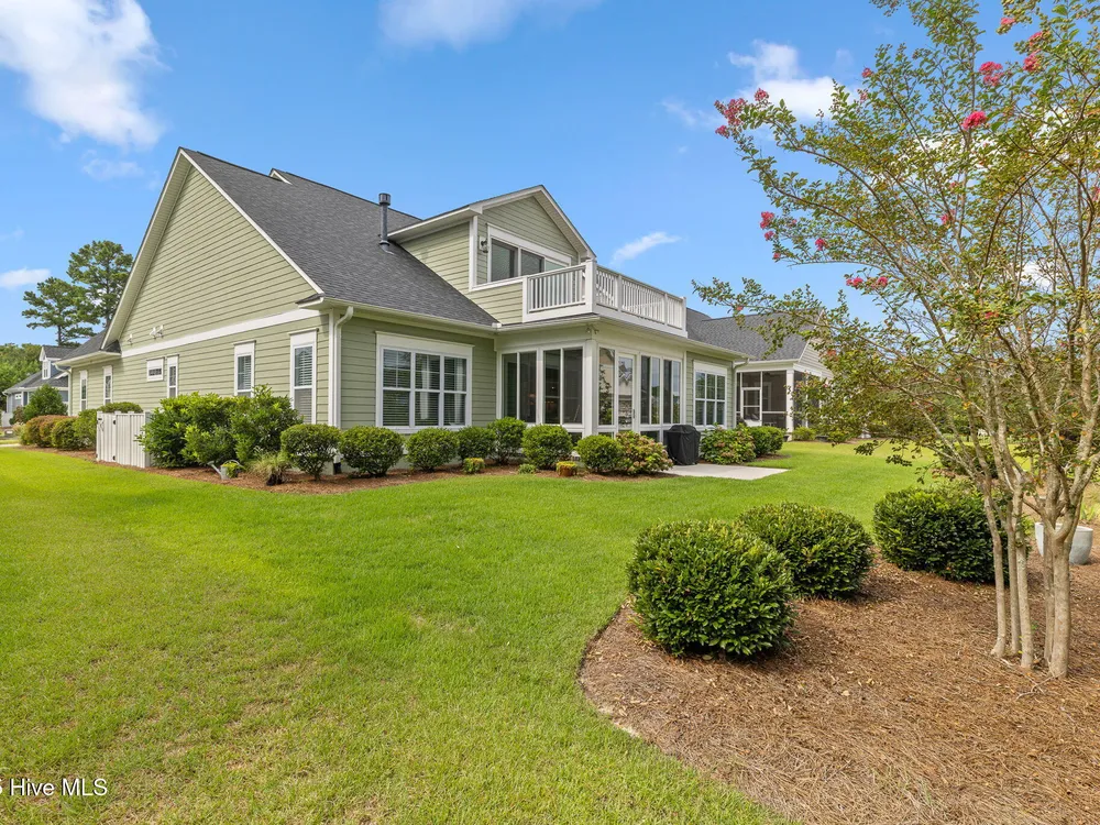 Surround yourself amongst nature and tranquility while still enjoying award-winning amenities and convenient location in Brunswick Forest - Welcome Home to 6357 Saxon Meadow Drive. Nestled within a peaceful section of the Shelmore-Spring Branch neighborhood, this single-owner home is situated on a quiet loop overlooking a nature preserve. Previously a model home, this 3-bedroom, 3-bath home was expertly designed to offer over 2,400 square feet of living space with elegant features throughout including 9' ceilings and craftsman molding. Highlights of this home include a comfortable living area with custom bookcases and cabinets which surround a gas fireplace with heat circulating blower. Telescoping doors lead out to a glassed lanai. The kitchen features granite countertops, 5-burner cooktop, under cabinet lighting and stainless built-in appliances. The spacious primary suite offers abundant natural light and two walk-in closets. The ensuite bath features a zero-entry walk-in shower and dual quartz vanities. The light-filled second story includes a walk-out balcony with gorgeous natural backdrop views. A dedicated study and two-car garage with ample storage add both flexibility and convenience for everyday living. This peaceful location within the master-planned community of Brunswick Forest creates the perfect setting for relaxation. Enjoy your morning coffee or evening wine while experiencing the mild North Carolina weather and observing local birds and wildlife right from the comfort of your home. Schedule your private showing today!