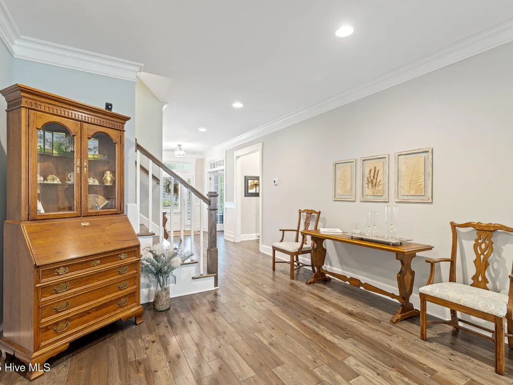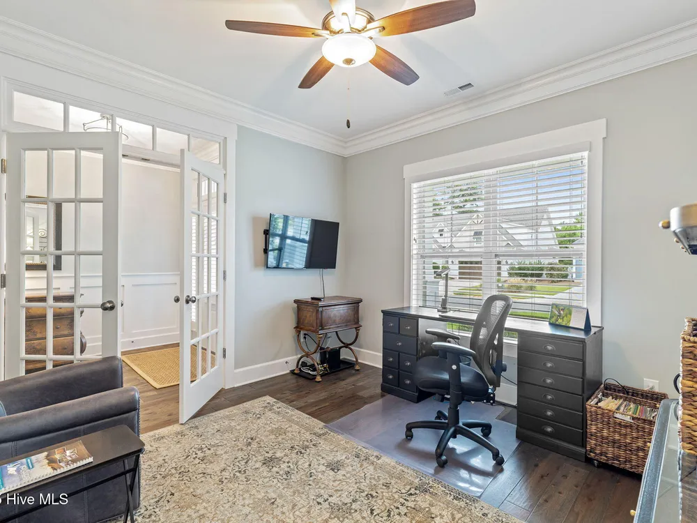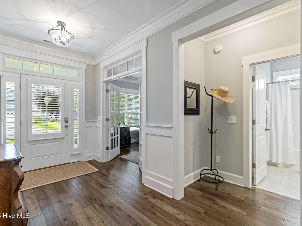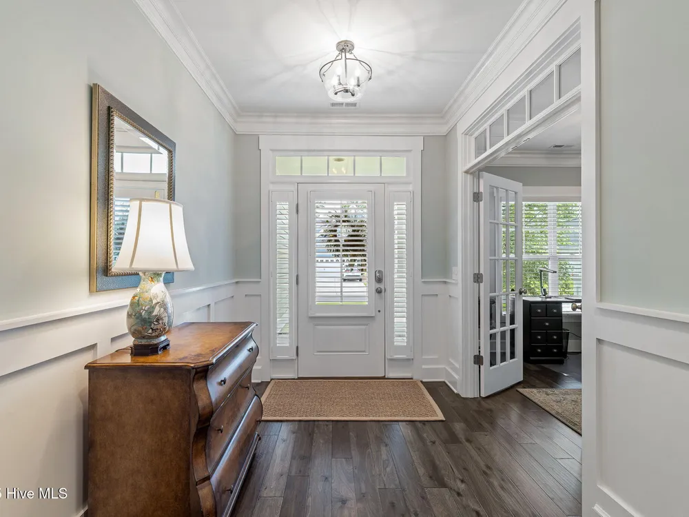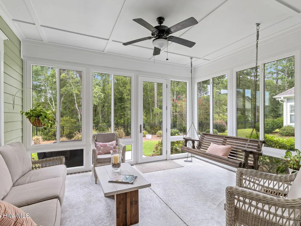 Surround yourself amongst nature and tranquility while still enjoying award-winning amenities and convenient location in Brunswick Forest - Welcome Home to 6357 Saxon Meadow Drive. Nestled within a peaceful section of the Shelmore-Spring Branch neighborhood, this single-owner home is situated on a quiet loop overlooking a nature preserve. Previously a model home, this 3-bedroom, 3-bath home was expertly designed to offer over 2,400 square feet of living space with elegant features throughout including 9' ceilings and craftsman molding. Highlights of this home include a comfortable living area with custom bookcases and cabinets which surround a gas fireplace with heat circulating blower. Telescoping doors lead out to a glassed lanai. The kitchen features granite countertops, 5-burner cooktop, under cabinet lighting and stainless built-in appliances. The spacious primary suite offers abundant natural light and two walk-in closets. The ensuite bath features a zero-entry walk-in shower and dual quartz vanities. The light-filled second story includes a walk-out balcony with gorgeous natural backdrop views. A dedicated study and two-car garage with ample storage add both flexibility and convenience for everyday living. This peaceful location within the master-planned community of Brunswick Forest creates the perfect setting for relaxation. Enjoy your morning coffee or evening wine while experiencing the mild North Carolina weather and observing local birds and wildlife right from the comfort of your home. Schedule your private showing today!