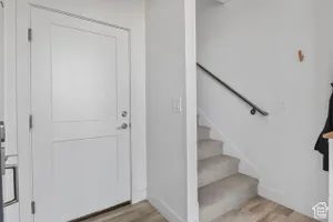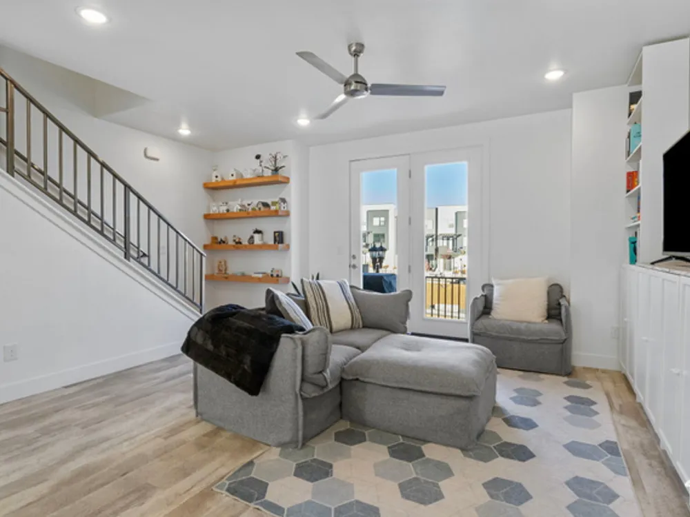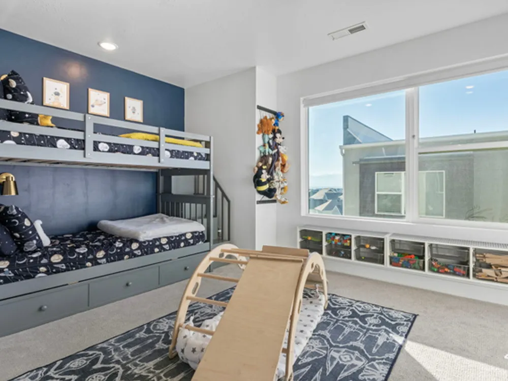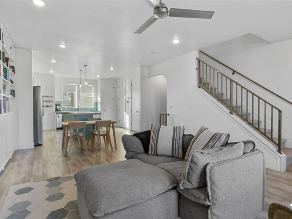 This affordable townhome offers quality finishes, from quartz countertops, a backsplash, painted cabinets, and stainless-steel kitchen appliances. Utilize stylish floating wood shelves and white shelving in the LR for display & storage needs. On the third level, two spacious bedrooms provide versatility, accompanied by en-suite bathrooms that elevate the everyday experience. What truly sets this townhome apart is the incredible amenities. Residents have access to the infamous Daybreak Watercourse, the Spoke, and the tranquil lakes & parks nearby are perfect for strolls or enjoying a picnic. The on-site gym is fully equipped to meet all your fitness needs. Community life here is vibrant, with seasonal holiday events that foster a sense of belonging and camaraderie among neighbors. Additionally, adventure is just around the corner, as you're only minutes away from breathtaking canyon hiking and biking trails and the new Salt Lake Bees Stadium. Near Trax, the library, schools, shopping, and entertainment. Square footage figures are provided as a courtesy estimate only and were obtained from county records. Buyer is advised to obtain an independent measurement.