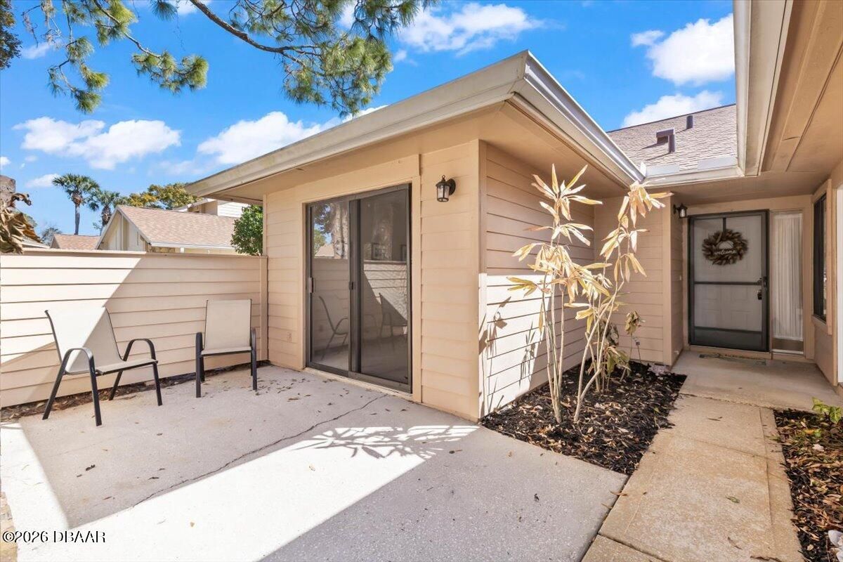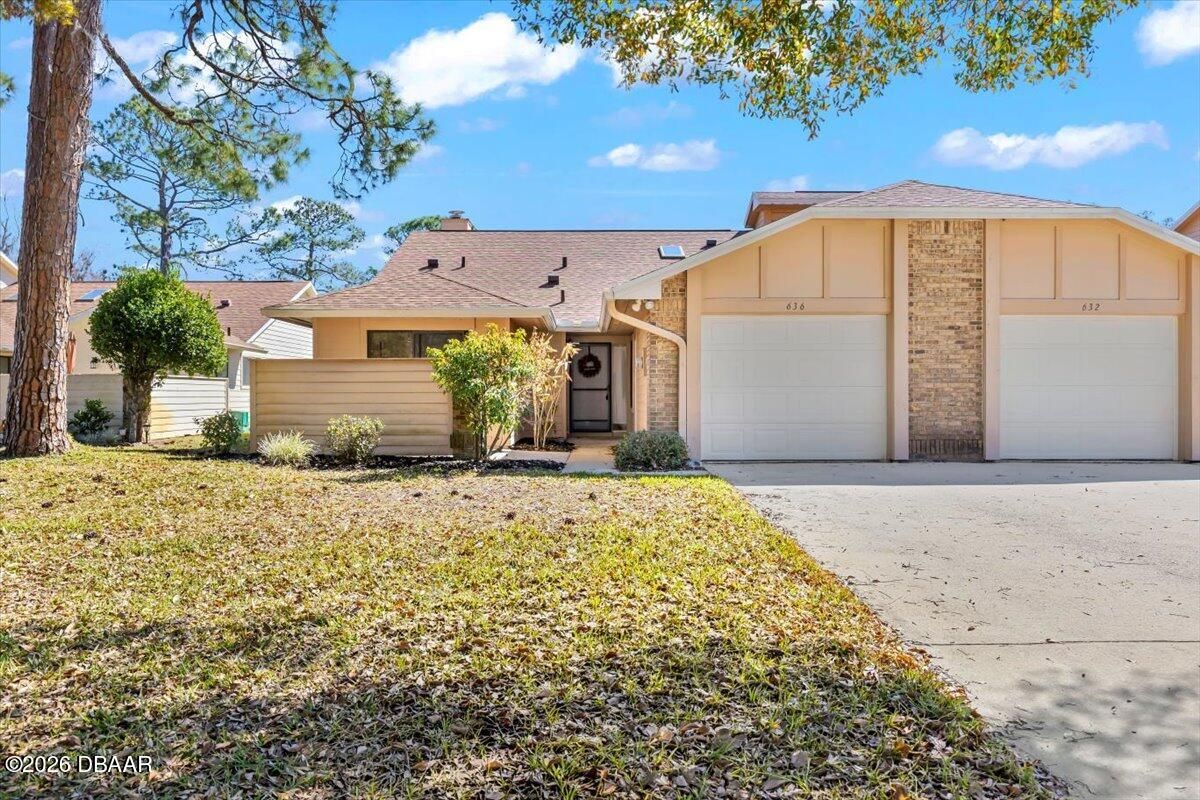 Effortless living in a beautifully maintained single-story townhome offering 3 bedrooms, 2 bathrooms, and a thoughtful light filled layout. A private front courtyard welcomes you in, the perfect setting for morning coffee or evening unwinding, while the relaxing Florida room overlooks a peaceful canal, creating a tranquil water backdrop year round. Soaring ceilings and abundant natural light enhance the spacious interior. The tastefully updated kitchen opens seamlessly to the main living areas, ideal for both everyday living and entertaining. Major systems have been addressed for peace of mind. • HVAC just 1.5 years old • Hot water heater only a few months old • Newer roof maintained and covered by the HOA Storage is plentiful, complemented by your own private garage with built in shelving already in place. Lovingly owned by the same owner for nearly 30 years and with no flood history, this home is truly a turnkey gem. Located within a gated community offering 24-hour security, club house, pools, golf, and a full calendar of social activities for a variety of interests. Just minutes to highways, beaches, parks, schools, colleges, shopping, dining, and all that the world-renowned Daytona Beach area has to offer. Easy living. Secure living. Low maintenance. Lifestyle at its best. All information is deemed reliable but cannot be guaranteed.