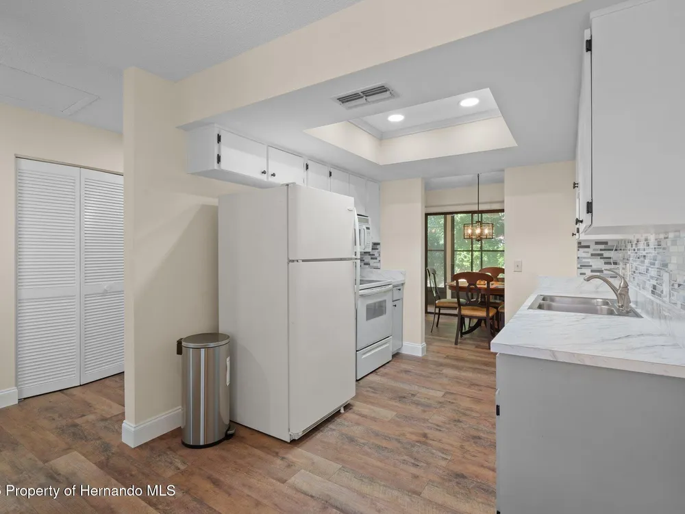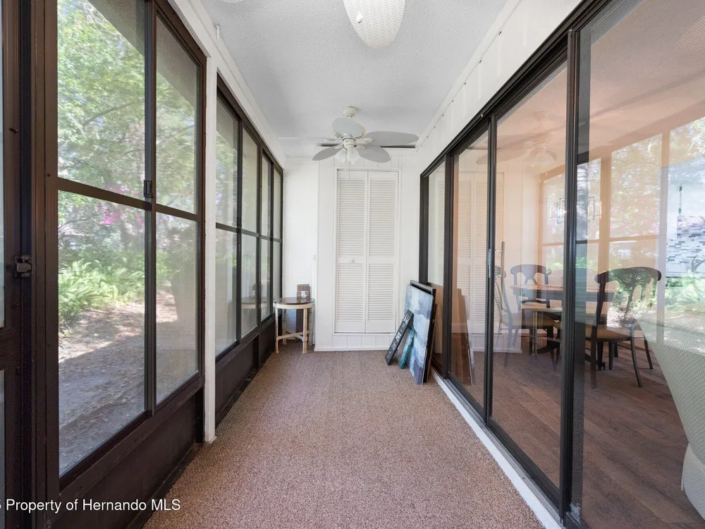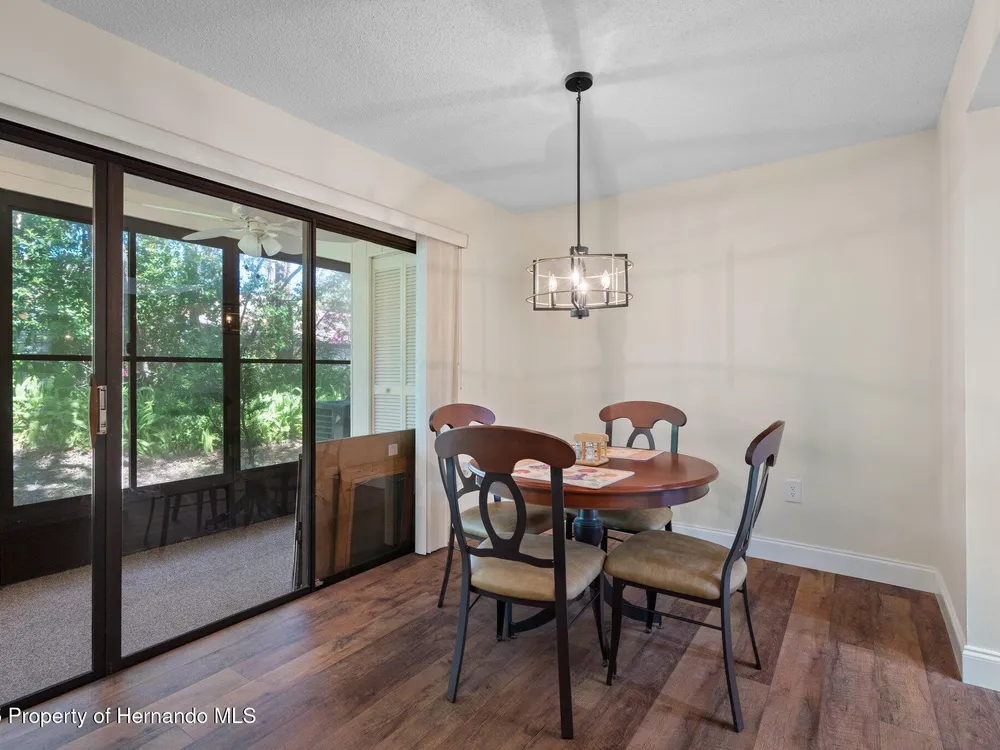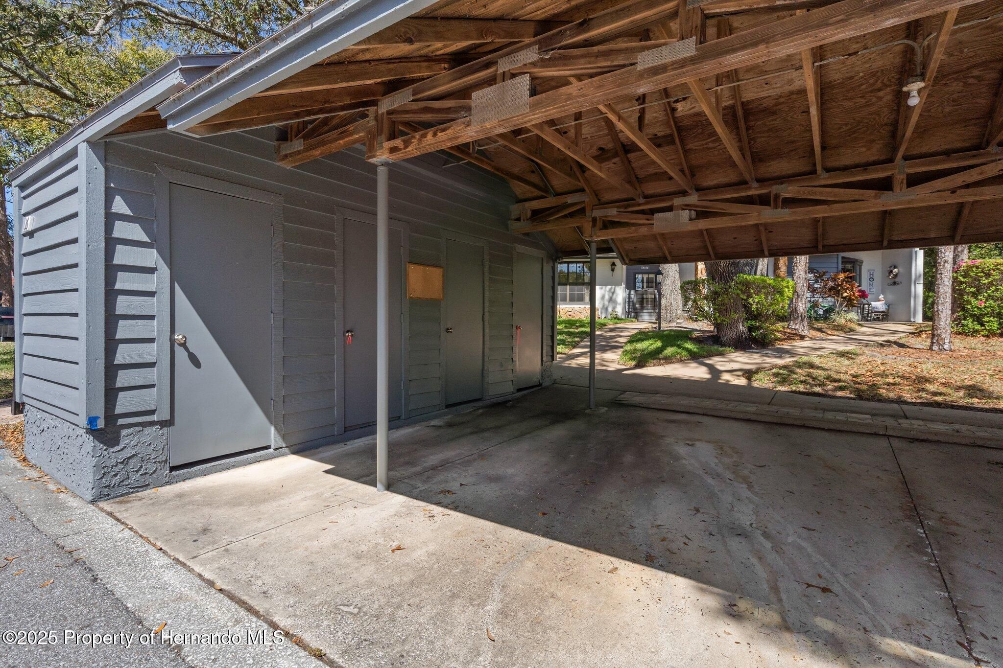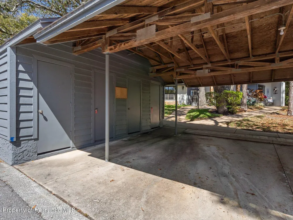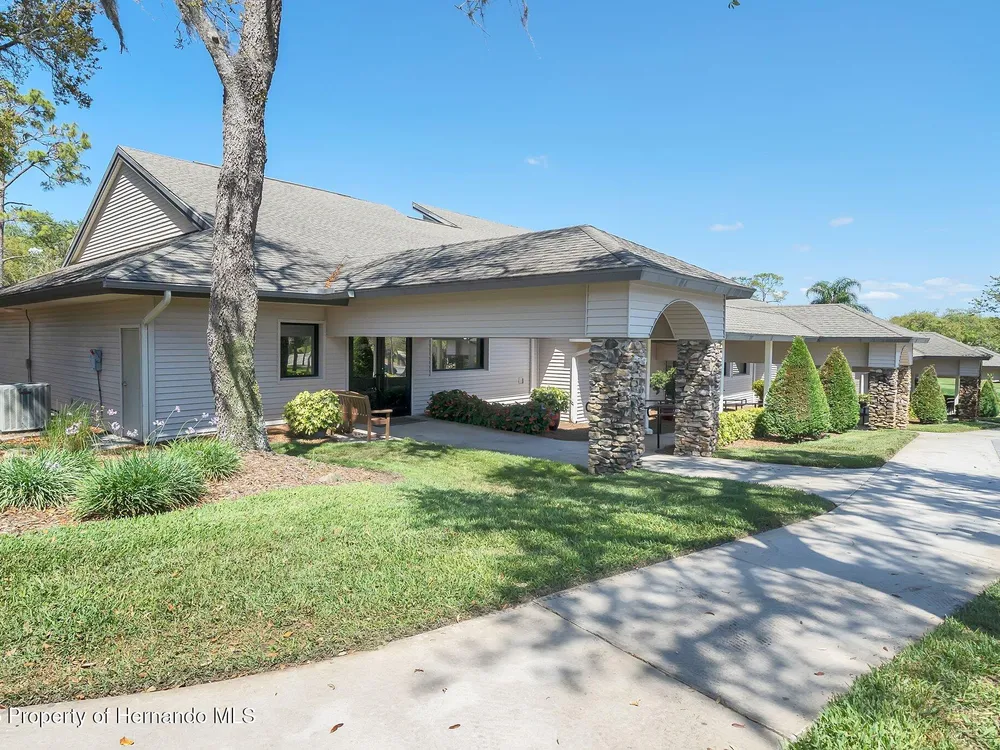 Completely FURNISHED and ready to move in. This villa is perfect for your winter vacation home, investment rental or your permanent home in Timber Pines 55+ RESORT community. NEW LUXURY VINYL PLANK FLOORING. COMBINATION LIVING AND DINING AREA WITH A ENCLOSED IN LANAI. The attractive kitchen offers you solid stone counter tops and new backsplash. Convenient walk in shower in the bathroom. Plenty of storage space along with a separate storage closet in the carport area. In addition the roof was re shingled in 2024 and the HVAC system is a 2024. This low cost investment will allow you to use all of the amenities that Timber Pines has to offer. Spend your winters here enjoying the 4 golf courses, 2 geo thermal heated pools, 2 pro-shops, a driving range, newer pickleball courts, tennis, a multi million dollar fitness and wellness center, a full time restaurant and a performing arts center. The community offers numerous clubs and activities to join. The low HOA includes high speed internet and cable