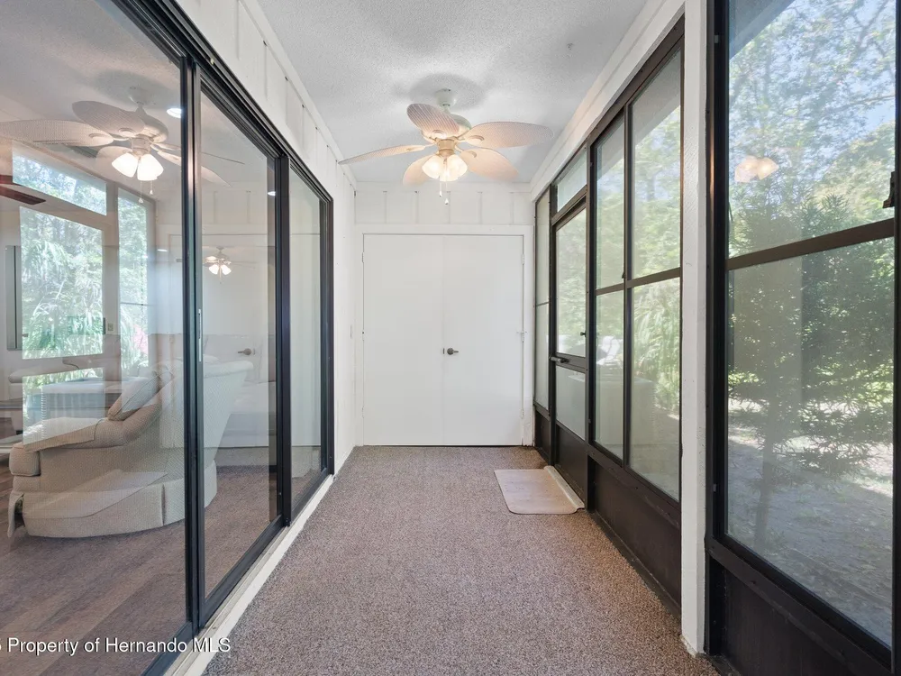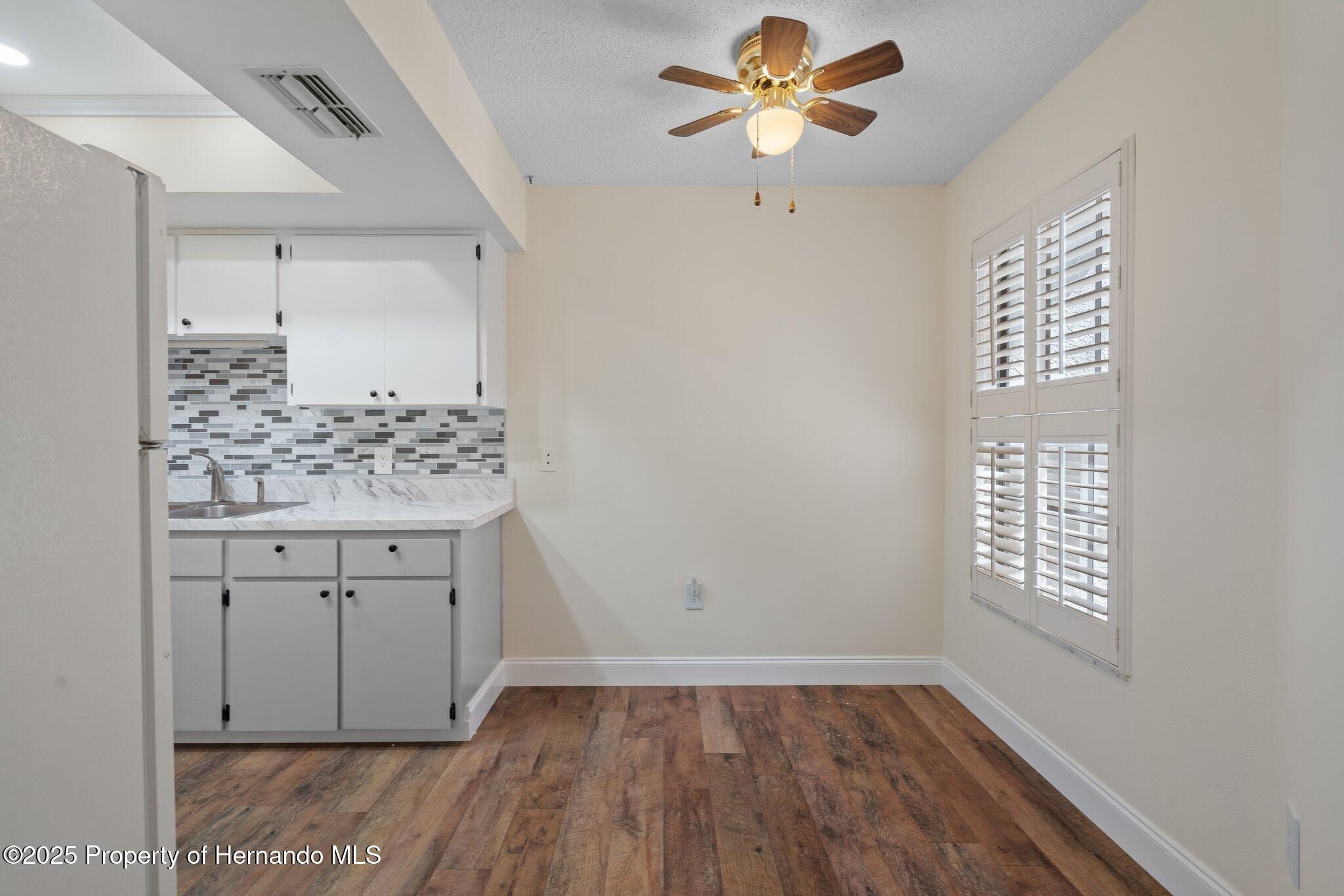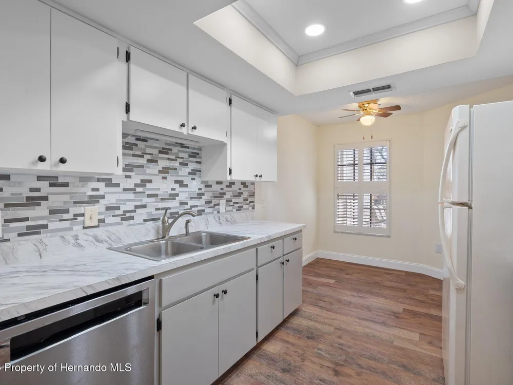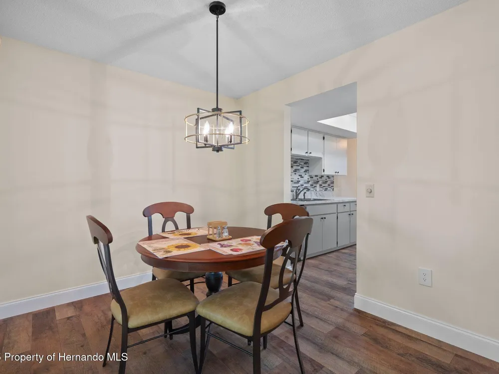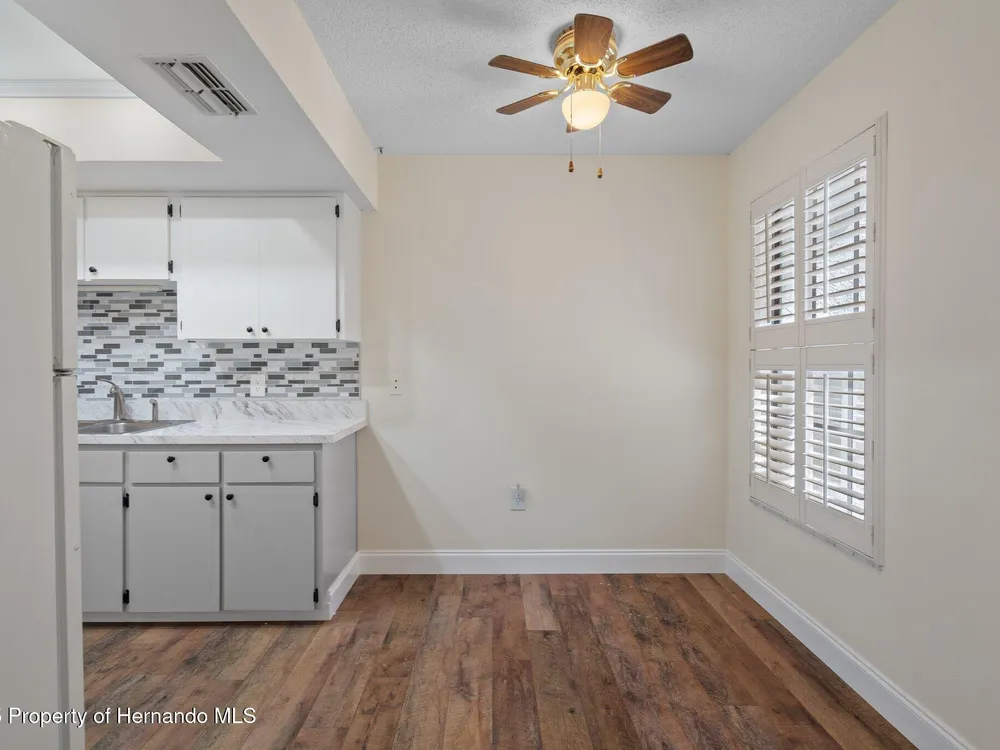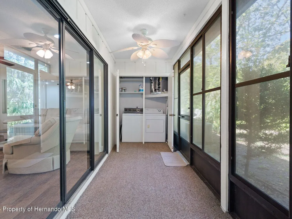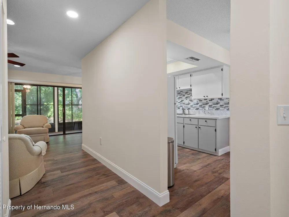 Completely FURNISHED and ready to move in. This villa is perfect for your winter vacation home, investment rental or your permanent home in Timber Pines 55+ RESORT community. NEW LUXURY VINYL PLANK FLOORING. COMBINATION LIVING AND DINING AREA WITH A ENCLOSED IN LANAI. The attractive kitchen offers you solid stone counter tops and new backsplash. Convenient walk in shower in the bathroom. Plenty of storage space along with a separate storage closet in the carport area. In addition the roof was re shingled in 2024 and the HVAC system is a 2024. This low cost investment will allow you to use all of the amenities that Timber Pines has to offer. Spend your winters here enjoying the 4 golf courses, 2 geo thermal heated pools, 2 pro-shops, a driving range, newer pickleball courts, tennis, a multi million dollar fitness and wellness center, a full time restaurant and a performing arts center. The community offers numerous clubs and activities to join. The low HOA includes high speed internet and cable