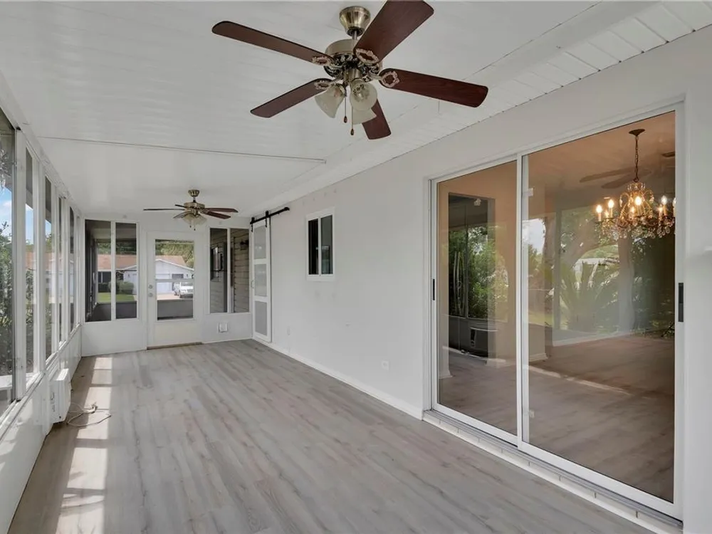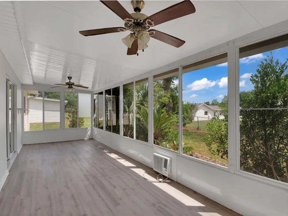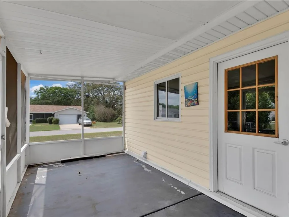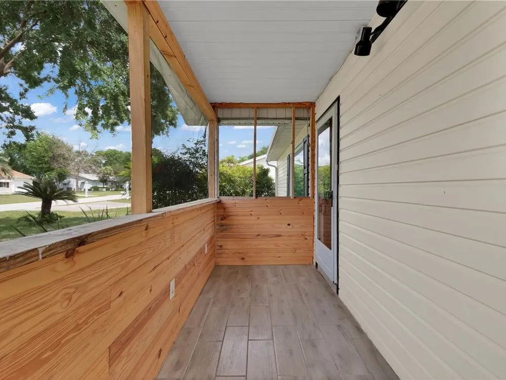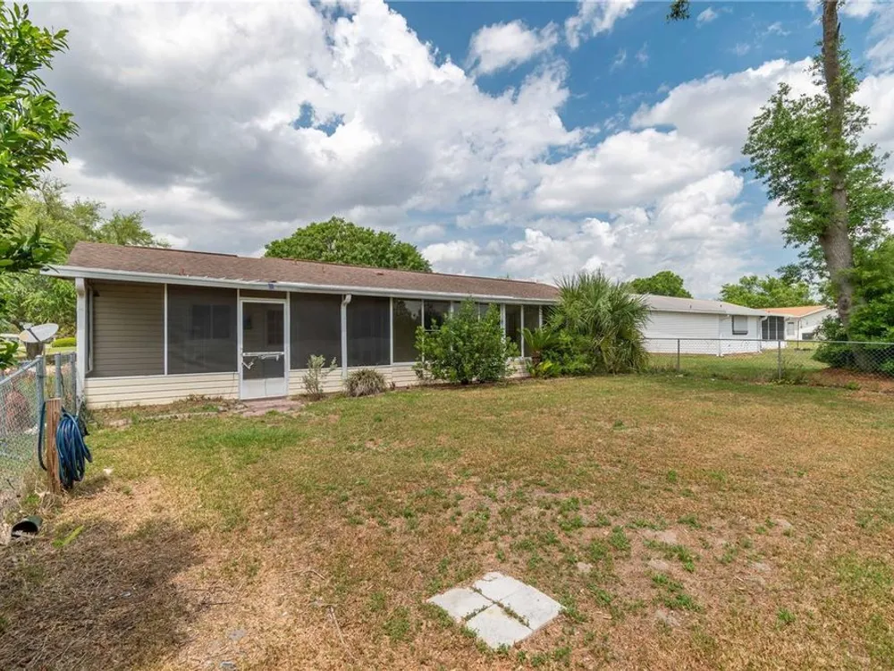 NEW ROOF IS TO BE INSTALLED. Beautifully updated 2-bedroom, 2-bath home in the charming 55+ community of Spruce Creek! This split-bedroom floor plan offers both comfort and privacy, featuring a spacious Florida room plus an additional screened room—perfect for relaxing or entertaining. The oversized single-car garage provides plenty of room for storage, and the home sits on a fenced corner lot for added space and privacy. Inside, you'll find beautiful waterproof vinyl plank flooring throughout, granite countertops, wood cabinetry, and newer stainless-steel appliances. The master suite includes a walk-in closet and double vanity. Enjoy peace of mind with major updates including a new AC (2020), new electrical panel (2023), new windows (2024), new sliding glass door, and a new water heater. A large picture window fills the living room with natural light, and ceiling fans are featured throughout. Located in a vibrant, golf cart-friendly community offering a range of amenities and activities!