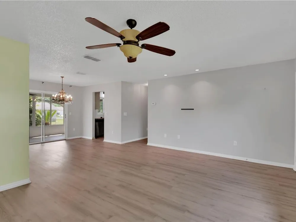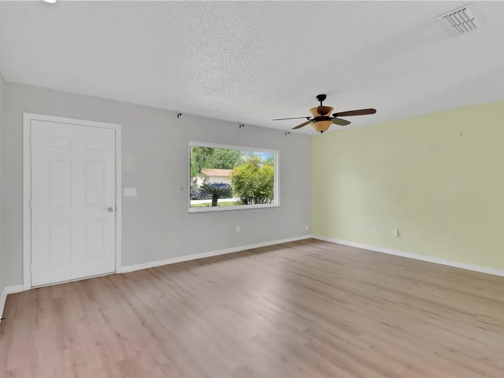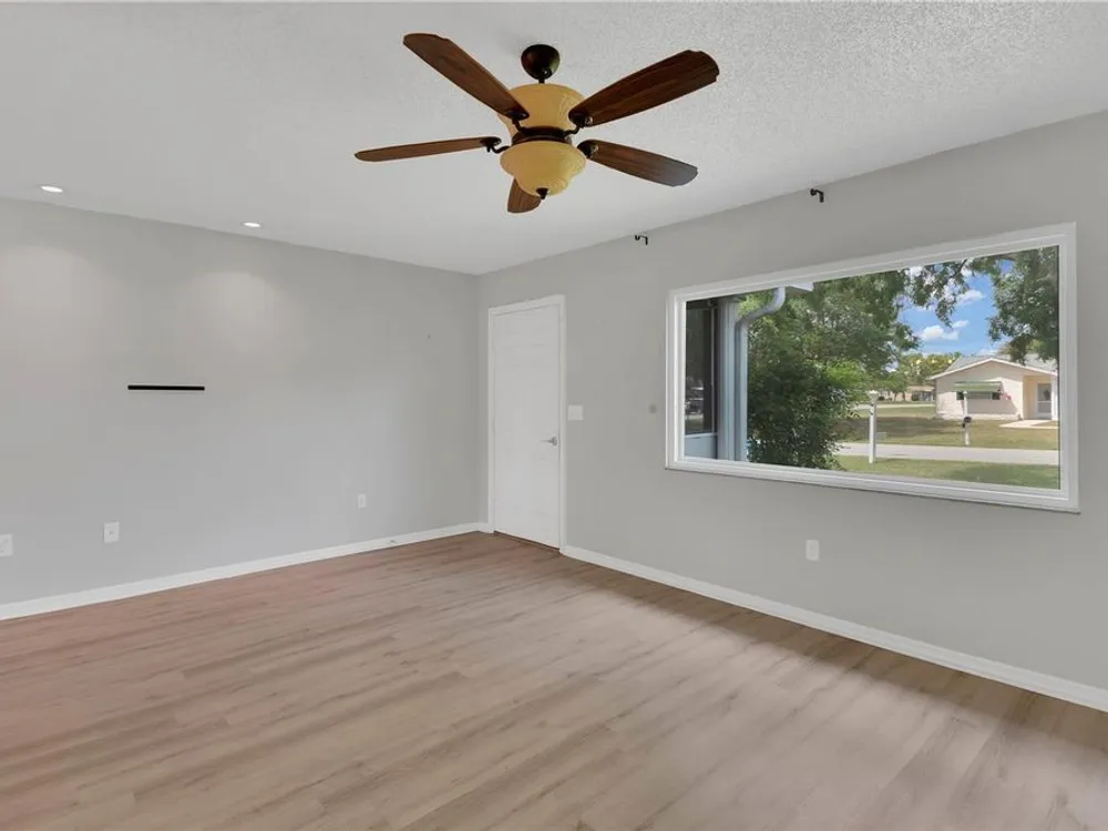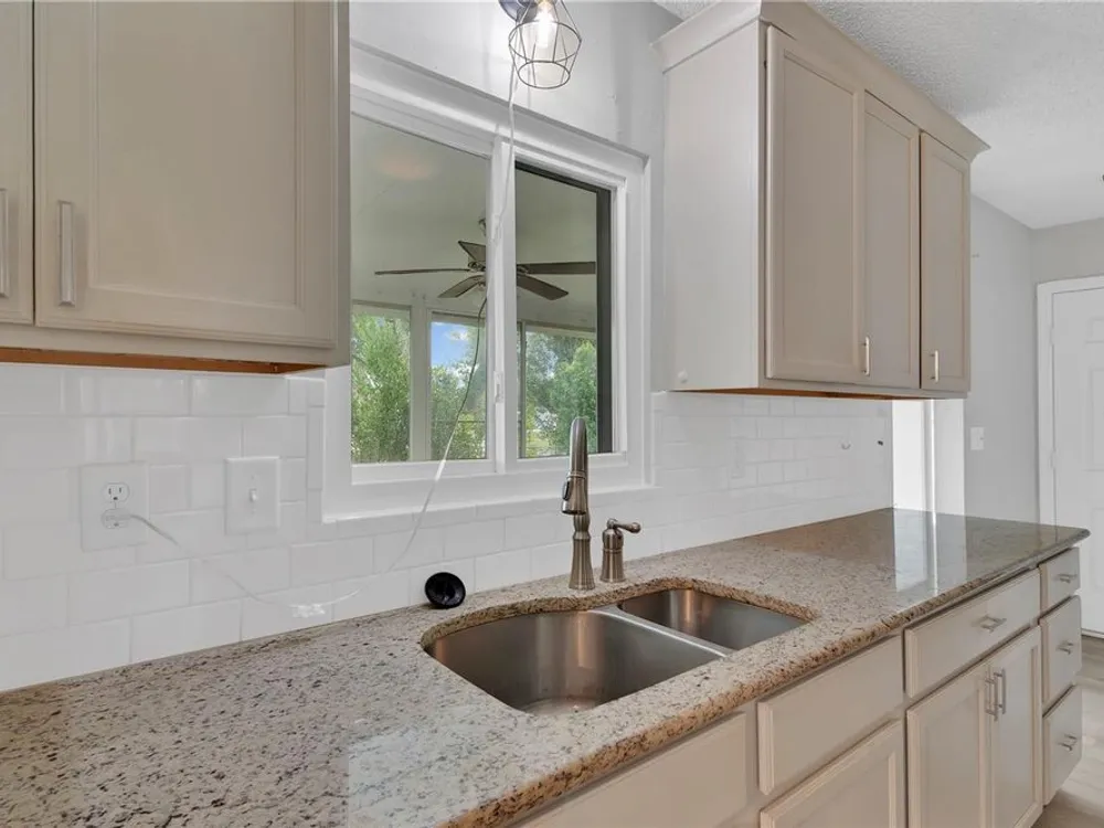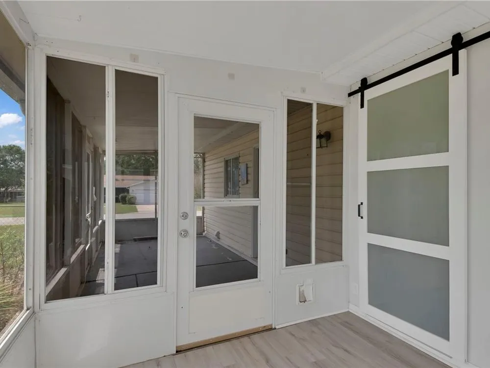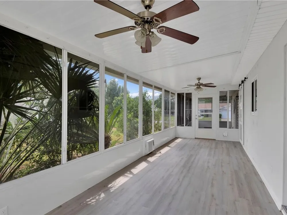 NEW ROOF IS TO BE INSTALLED. Beautifully updated 2-bedroom, 2-bath home in the charming 55+ community of Spruce Creek! This split-bedroom floor plan offers both comfort and privacy, featuring a spacious Florida room plus an additional screened room—perfect for relaxing or entertaining. The oversized single-car garage provides plenty of room for storage, and the home sits on a fenced corner lot for added space and privacy. Inside, you'll find beautiful waterproof vinyl plank flooring throughout, granite countertops, wood cabinetry, and newer stainless-steel appliances. The master suite includes a walk-in closet and double vanity. Enjoy peace of mind with major updates including a new AC (2020), new electrical panel (2023), new windows (2024), new sliding glass door, and a new water heater. A large picture window fills the living room with natural light, and ceiling fans are featured throughout. Located in a vibrant, golf cart-friendly community offering a range of amenities and activities!