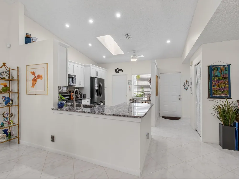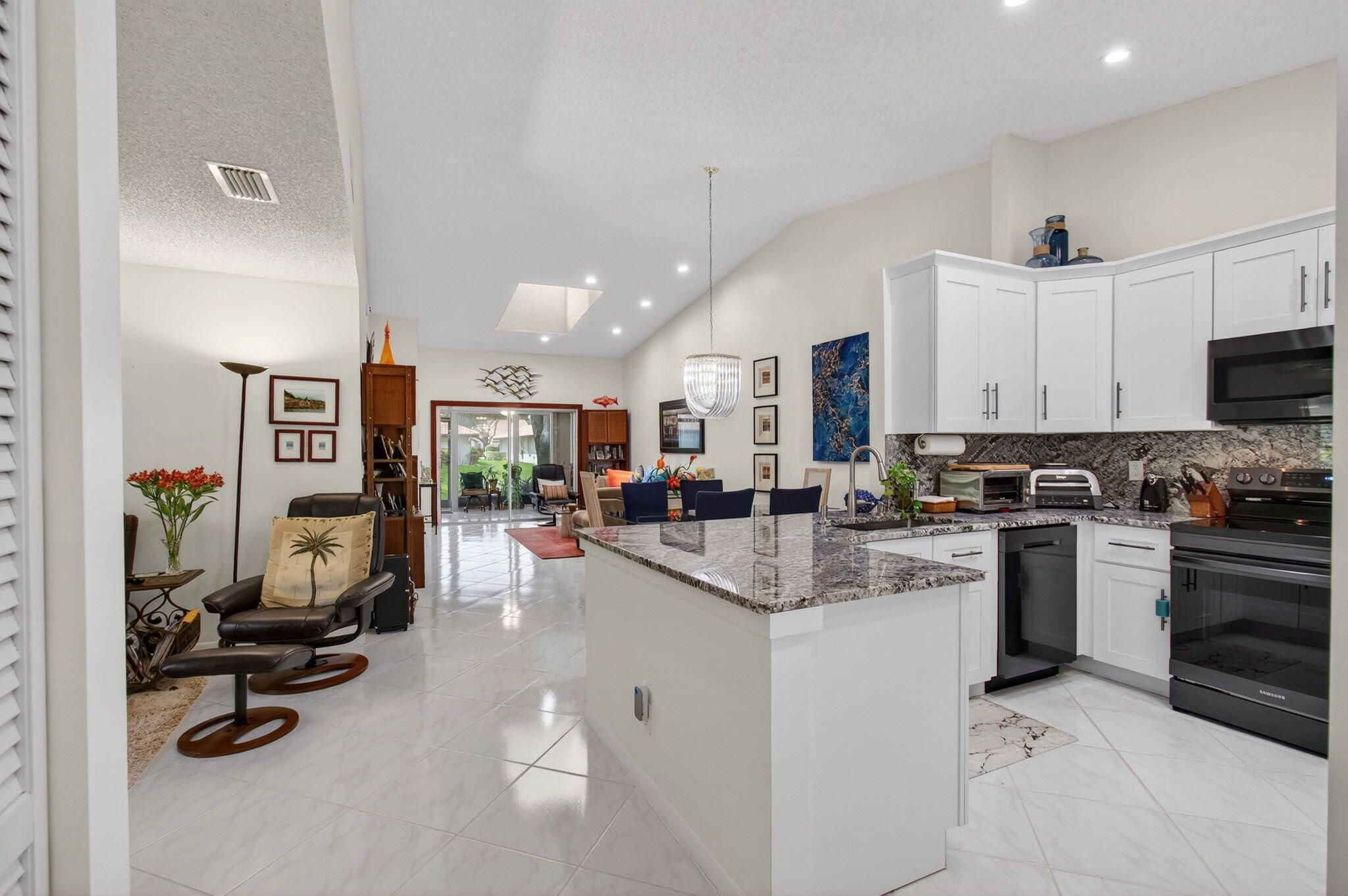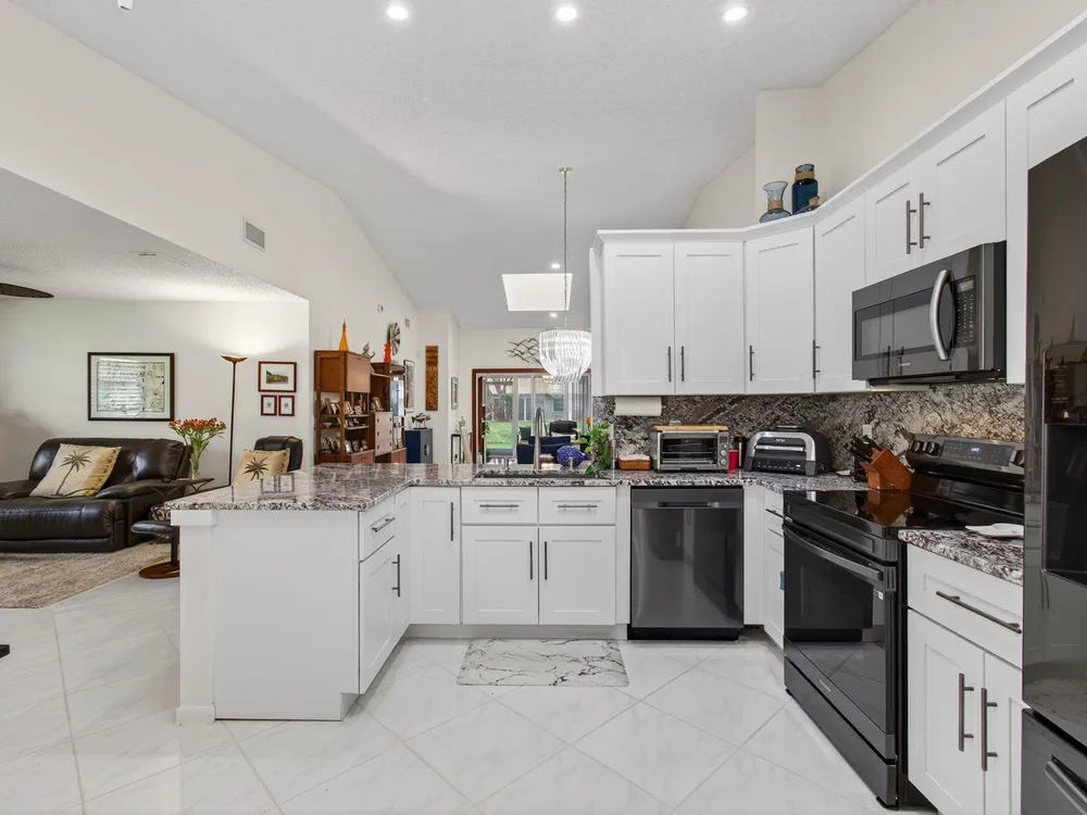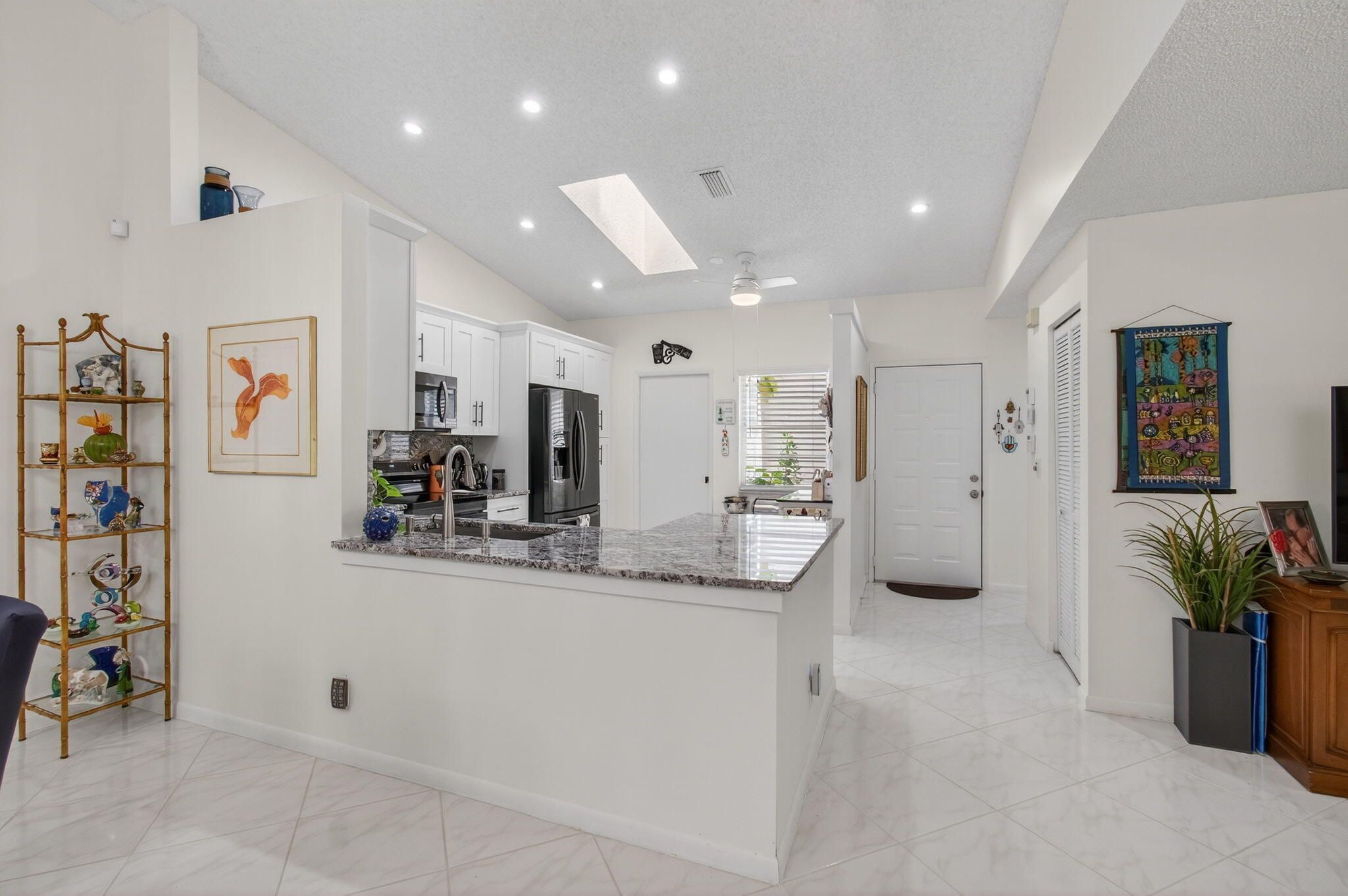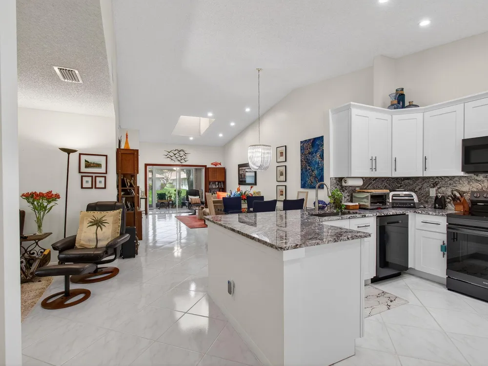 Presenting a stunning villa located at 6368 Mill Pointe Circle in the Active Adult Community(55+) of Huntington Pointe, Delray Beach, FL. The property we're showcasing is a grand Monaco Model villa, which is sure to command your attention. Space and brightness take center stage here, offering a comfortable and inviting environment.This residence boasts a thoughtful modern renovation that elegantly couples functionality with aesthetics. Attention to detail is highlighted in the open-concept kitchen, featuring black stainless steel appliances, a notable deep farmhouse sink, and dazzling granite countertops. Soft-close cabinets, a lazy Susan kitchen cabinet, and a practical pantry that features pullouts further add to the convenience and charm of this culinary space.