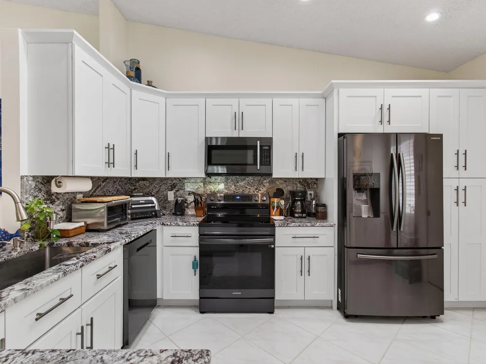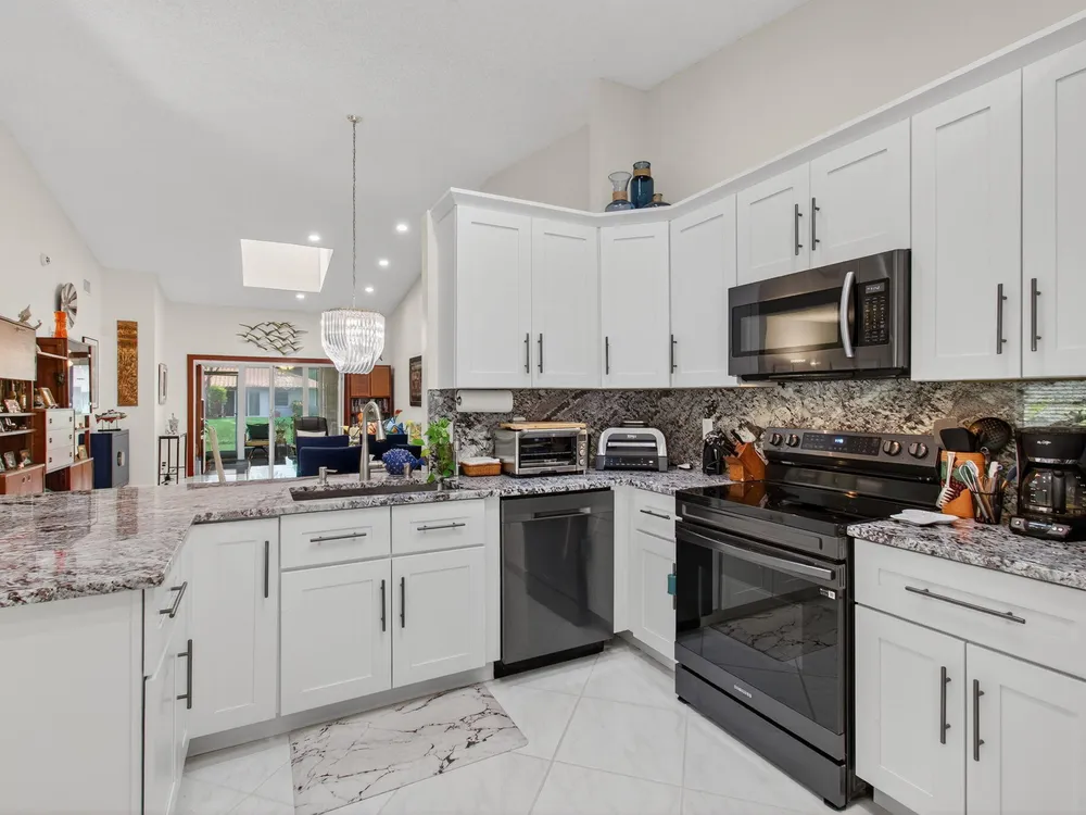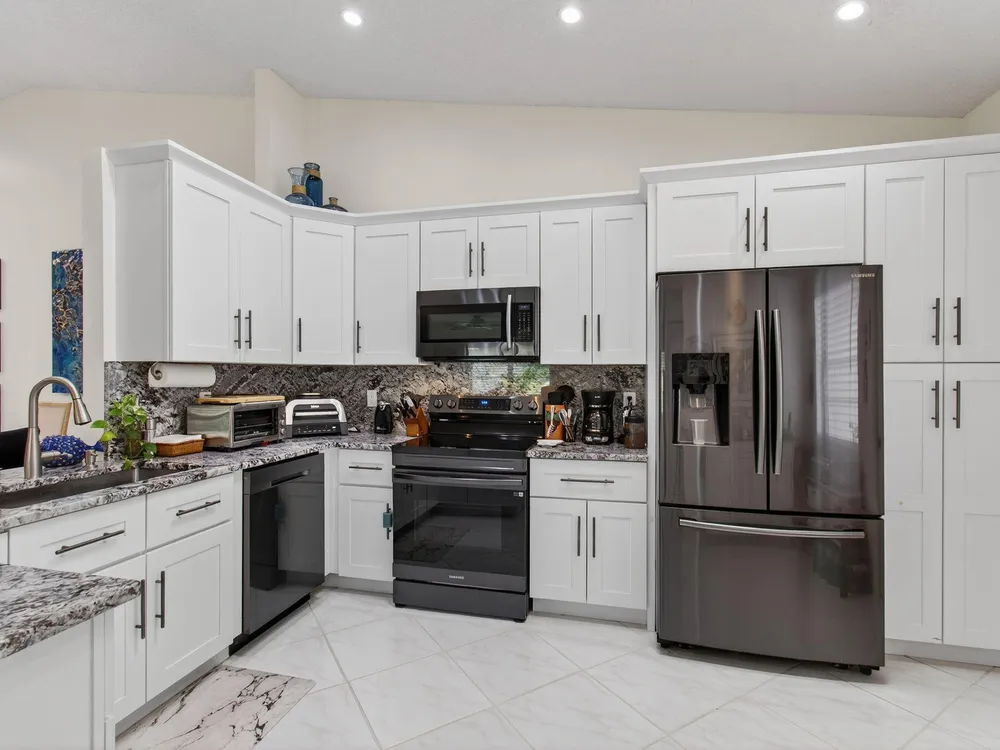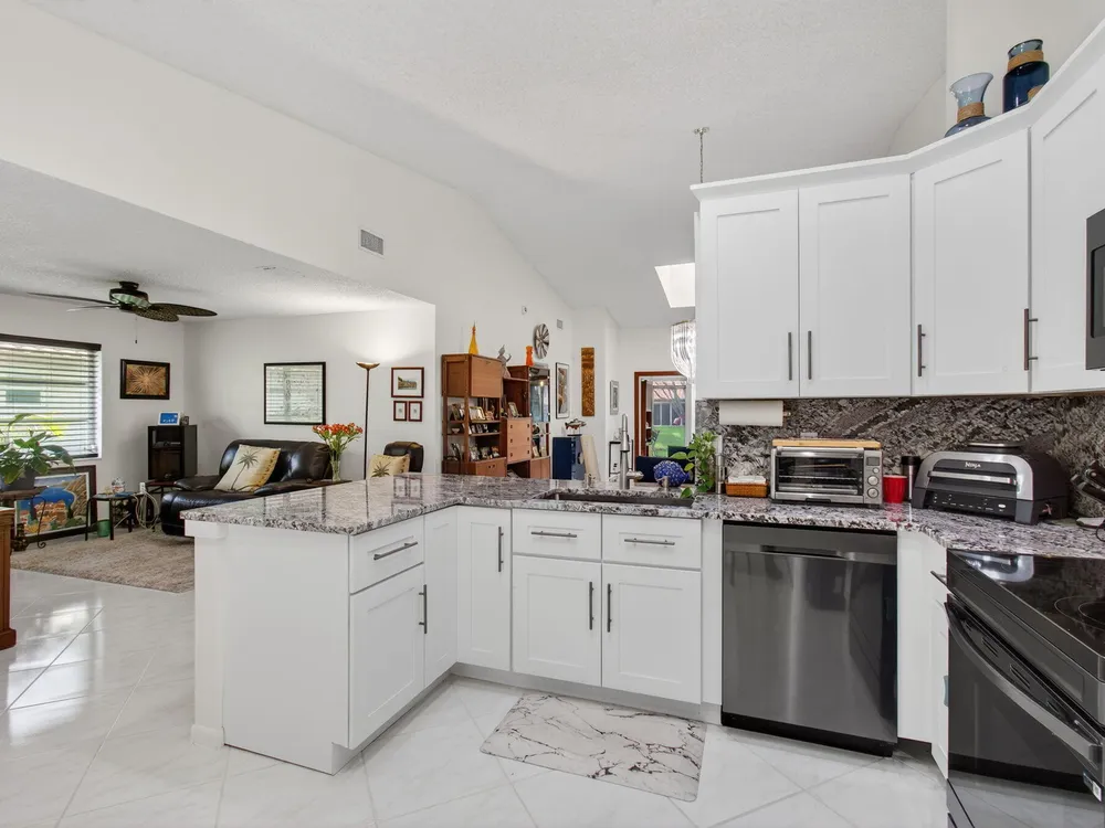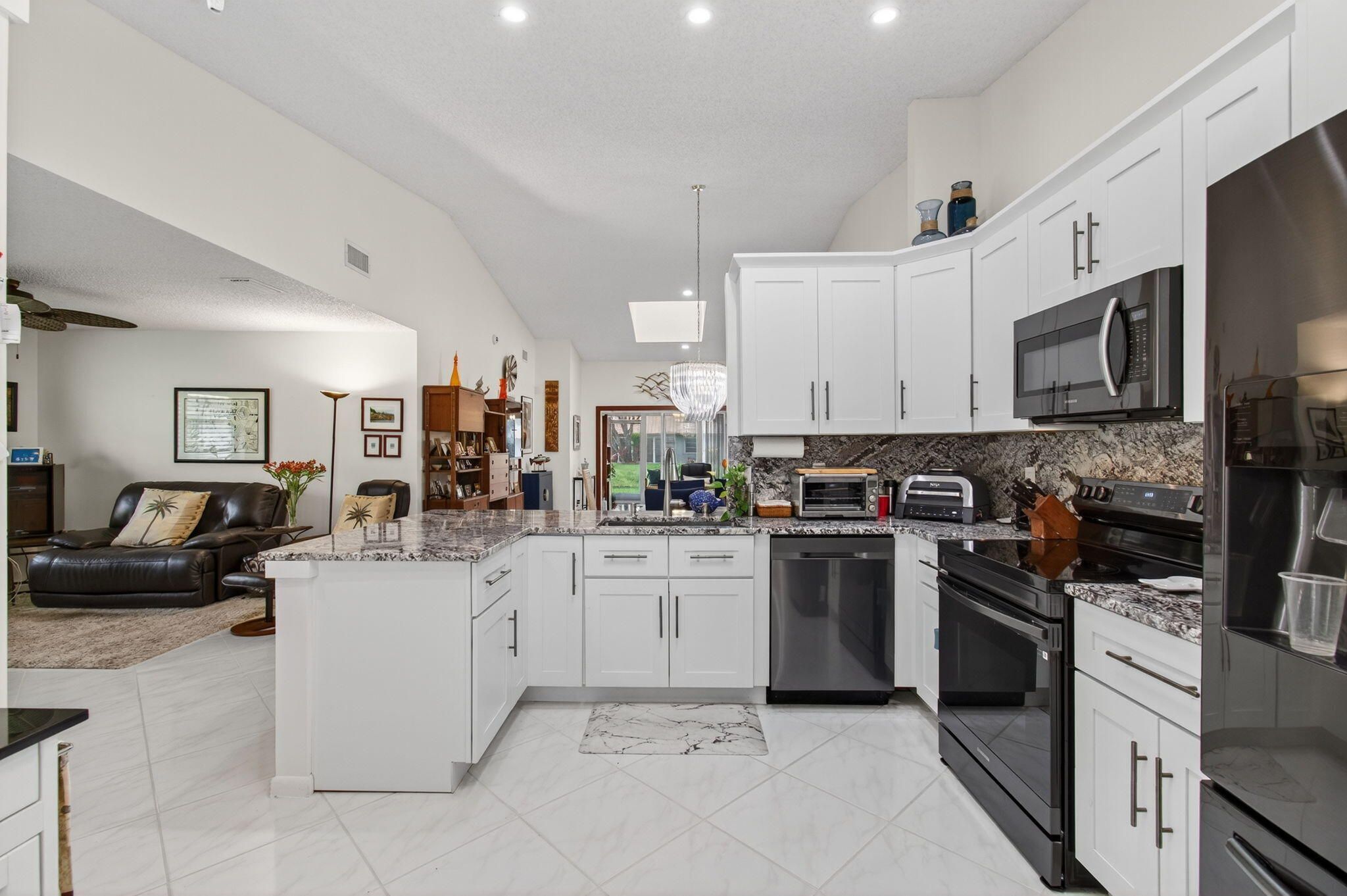 Presenting a stunning villa located at 6368 Mill Pointe Circle in the Active Adult Community(55+) of Huntington Pointe, Delray Beach, FL. The property we're showcasing is a grand Monaco Model villa, which is sure to command your attention. Space and brightness take center stage here, offering a comfortable and inviting environment.This residence boasts a thoughtful modern renovation that elegantly couples functionality with aesthetics. Attention to detail is highlighted in the open-concept kitchen, featuring black stainless steel appliances, a notable deep farmhouse sink, and dazzling granite countertops. Soft-close cabinets, a lazy Susan kitchen cabinet, and a practical pantry that features pullouts further add to the convenience and charm of this culinary space.