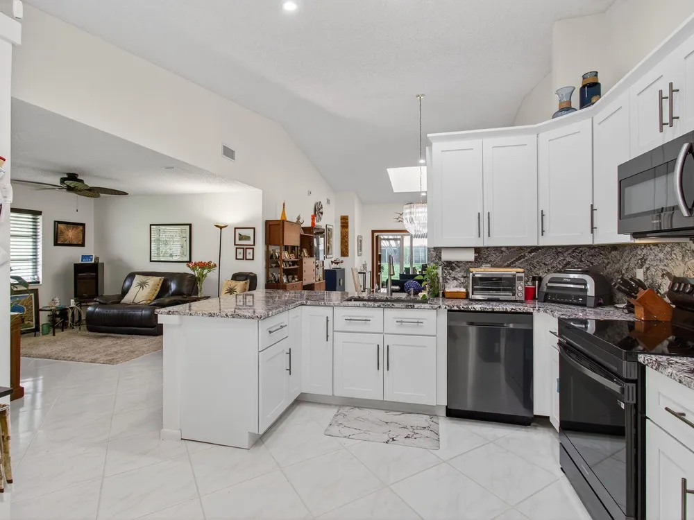 - Built-in Shelving, Cathedral Ceiling(s), Kitchen Island, Pantry, Skylights, Split Bedrooms, Walk-In Closet(s), Home Office, Florida Room, Breakfast Area, Living/Dining Room, Kitchen/Dining Combo, Eat-in Kitchen, Separate Shower