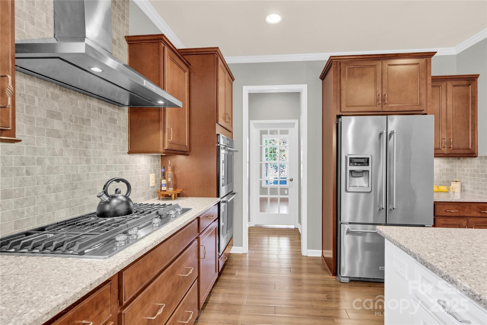 - Dishwasher, Disposal, Double Oven, Exhaust Hood, Gas Cooktop, Microwave, Plumbed For Ice Maker, Tankless Water Heater, Wall Oven