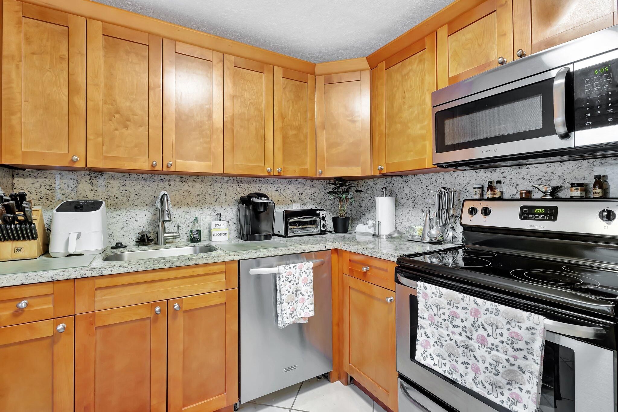 Beautiful & highly desirable 1st floor 2 bed 2 bath in fabulous gated Kings Point. The unit offers 2 large bedrooms, a beautifully upgraded kitchen with wood panel cabinetry, granite countertops and upgraded stainless appliances. The spacious patio offers plenty of space for outdoor seating. Parking directly in front of your unit. King's Point amenities include two 18-hole golf courses, swim, tennis and exercise studio. Enjoy the state-of-the-art theatre, East End Cafe and The Bistro. There's always something to do in this vibrant 55+ community, including entertainment, education, recreation, social events and a courtesy shuttle. Walking distance to the clubhouse.