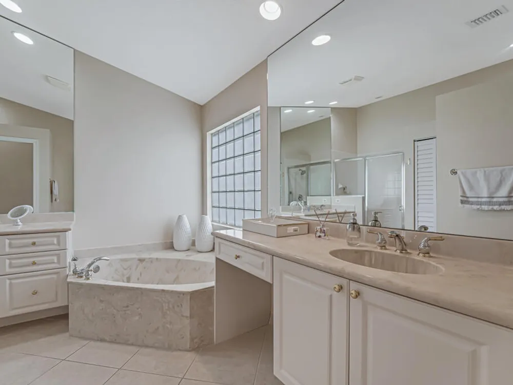 - Closet Cabinetry, Entrance Foyer, Pantry, Garden Tub/Roman Tub, Split Bedrooms, High Ceilings, Walk-In Closet(s), Converted Bedroom, Home Office, Great Room, Breakfast Area, Living/Dining Room, Kitchen/Dining Combo, Eat-in Kitchen, Separate/Formal Dining Room, Blinds, Drapes, Sliding Window(s), Dual Sinks, Sitting Area In Primary Bedroom, Separate Shower, Bathtub, Storm Shutters