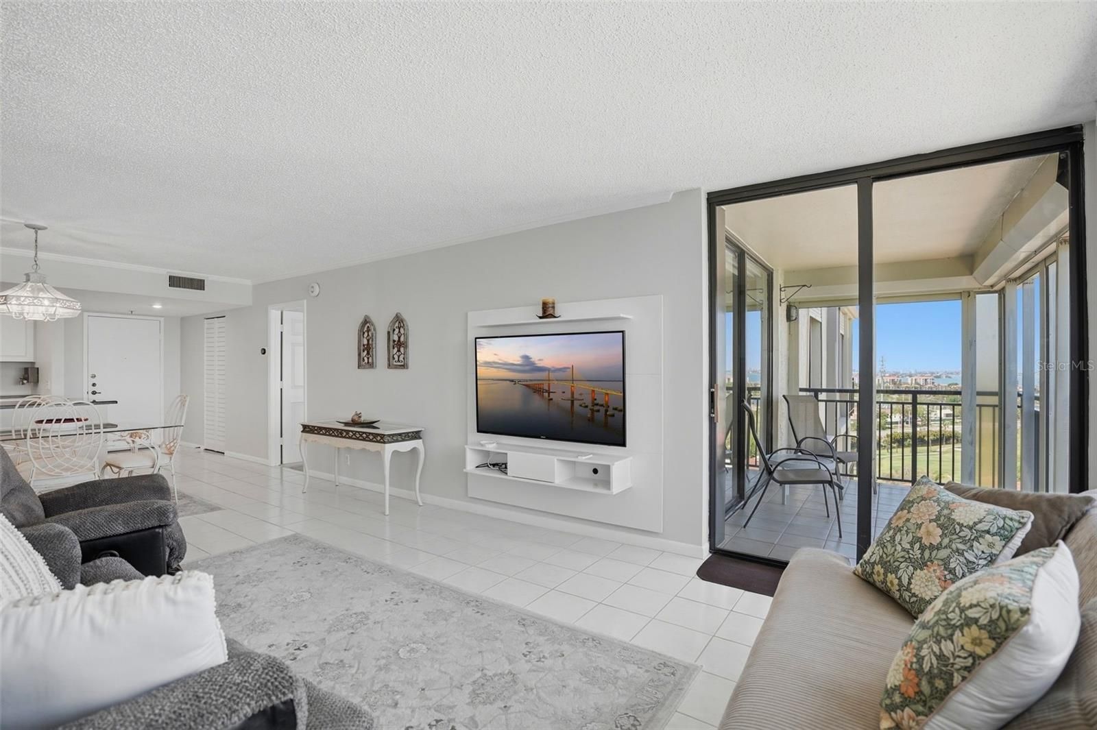 Sweeping, unobstructed water views define this beautiful waterfront penthouse in Palma Del Mar. Bathed in natural light, this attractively updated residence features an open, airy floor plan with expansive windows and sliding glass doors that frame panoramic vistas of the Boca Ciega Bay. Tile floors flow seamlessly from the remodeled kitchen through the dining and living areas, creating a cohesive coastal feel. The kitchen shines with quartzite countertops, custom cabinetry, and a generous breakfast bar—ideal for casual dining or entertaining. Enjoy peaceful mornings in the bright living room or step onto your private waterside balcony to savor the sea breeze and endless blue horizons. The spacious primary suite offers direct balcony access, a large walk in closet, and tranquil water views. Guests will appreciate the privacy of the split bedroom layout, complete with a roomy guest suite and ensuite bath. Additional conveniences include hurricane shutters, two storage units, first floor covered parking space #15, onsite management, and more. Palma Del Mar delivers resort style living at its finest with a seaside pool, spa, recreation room, kayak storage, and fishing pier. Perfectly positioned on Isla Del Sol, you’re just moments from the world famous Gulf Beaches, the Pinellas Bike Trail, Fort De Soto Park, Eckerd College, I 275, and vibrant downtown St. Petersburg. Tampa International Airport and St. Pete–Clearwater Airport are both an easy 25 minute drive. This penthouse offers the ultimate Florida lifestyle—sun, water, convenience, and comfort. Start living the good life.