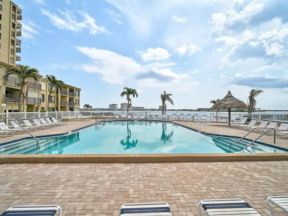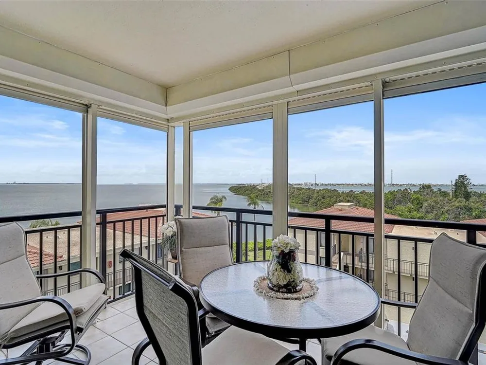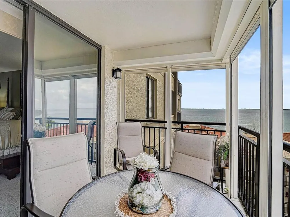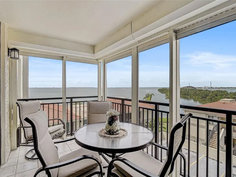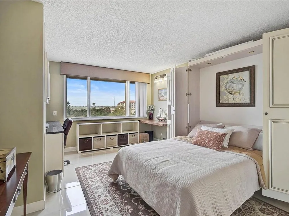 Panoramic Water Views & Resort-Style Living on Isla Del Sol! Step into the Florida lifestyle you’ve been dreaming of in this fifth-floor, waterfront sanctuary on exclusive Isla Del Sol. Located in the coveted Palma Del Mar community, this 2-bedroom, 2-bathroom residence offers breathtaking views from every room, showcasing the sparkling waters of Boca Ciega Bay and the lush greens of the Isla Del Sol Yacht & Country Club. Inside, you’ll find a spacious 1,250 sq ft layout designed with comfort, elegance, and functionality in mind. The split-bedroom floorplan features two true primary suites, each with private en-suite baths and custom walk-in closets—ideal for guests, family, or the luxury of dual retreats. One suite includes a built-in desk and Murphy bed, seamlessly integrated with the custom cabinetry that extends throughout the home—including both bathrooms—for a cohesive and upscale finish. At the heart of the home, the gourmet kitchen is a chef’s dream: granite countertops, custom soft-close wood cabinetry, matching stainless steel appliances, recessed lighting, and a smartly designed layout that blends beauty and utility. Every detail speaks to thoughtful craftsmanship and lasting quality. Just off the kitchen, the beautiful & oversized living and dining area creates a warm and inviting space for everyday living or entertaining, with wide-open sightlines that draw your eye to the showstopper: the screened-in balcony. This private perch offers world-class panoramic views, perfect for watching boats drift by or soaking in fiery Gulf sunsets. Outfitted with motorized storm and shade shutters, you’ll enjoy comfort and protection with a single touch. Additional luxury upgrades include custom closets with built-in shelving, elegant door moldings, and designer window treatments that enhance the home’s polished aesthetic. Enjoy resort-style amenities including a waterfront heated pool and spa, kayak storage, fishing pier, and clubhouse—all set against the stunning backdrop of Tampa Bay. Covered parking and same-floor storage add everyday convenience. Whether you're looking for a full-time home, a seasonal getaway, or a smart investment, this move-in-ready condo delivers style, comfort, and unbeatable location in one of the Gulf Coast’s most sought-after communities. Just minutes to world-class beaches, Fort De Soto Park, downtown St. Pete, and with quick access to I-275 and Tampa International, this is the best view on the island, and your chance to own it!