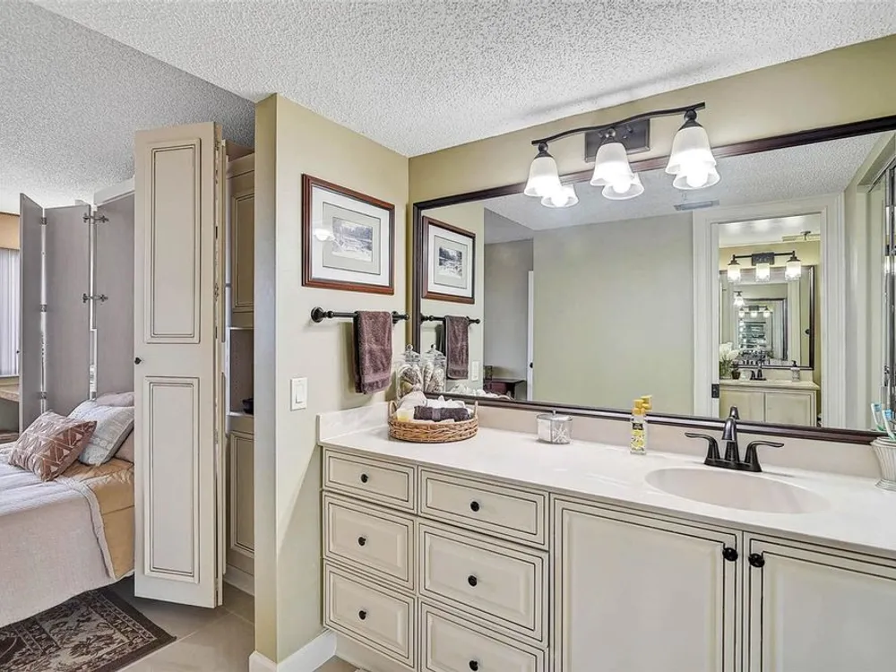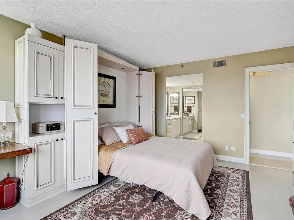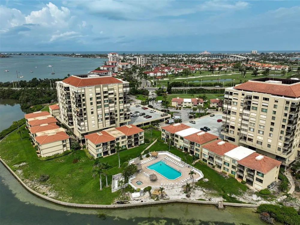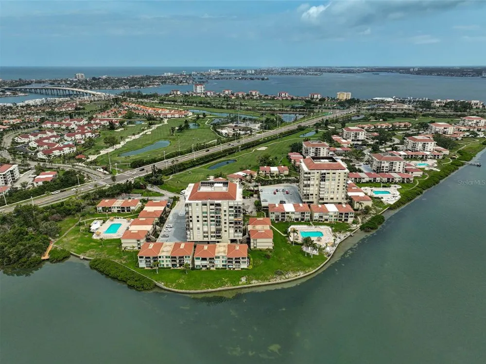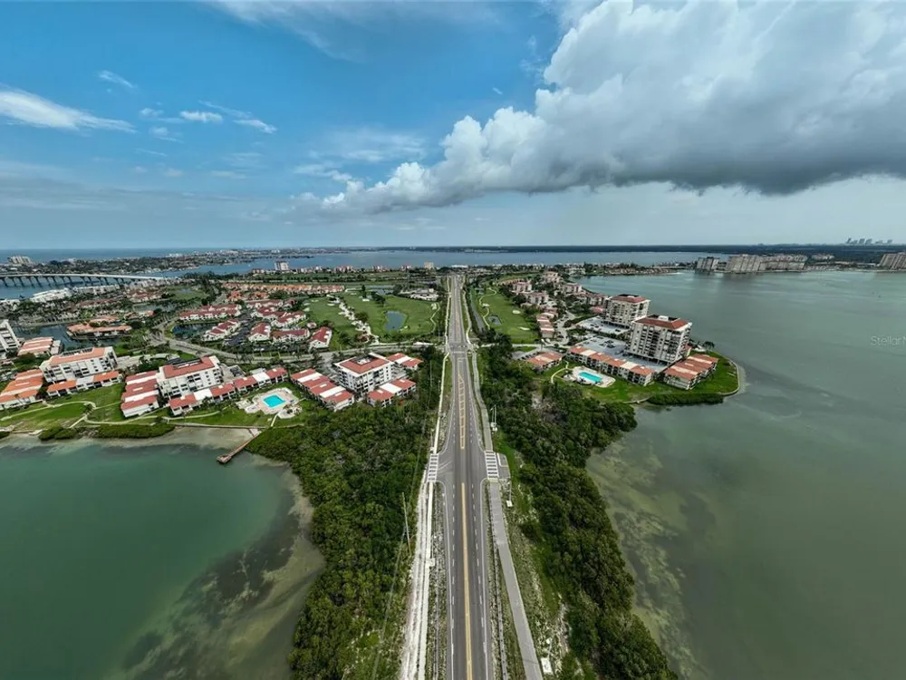 Panoramic Water Views & Resort-Style Living on Isla Del Sol! Step into the Florida lifestyle you’ve been dreaming of in this fifth-floor, waterfront sanctuary on exclusive Isla Del Sol. Located in the coveted Palma Del Mar community, this 2-bedroom, 2-bathroom residence offers breathtaking views from every room, showcasing the sparkling waters of Boca Ciega Bay and the lush greens of the Isla Del Sol Yacht & Country Club. Inside, you’ll find a spacious 1,250 sq ft layout designed with comfort, elegance, and functionality in mind. The split-bedroom floorplan features two true primary suites, each with private en-suite baths and custom walk-in closets—ideal for guests, family, or the luxury of dual retreats. One suite includes a built-in desk and Murphy bed, seamlessly integrated with the custom cabinetry that extends throughout the home—including both bathrooms—for a cohesive and upscale finish. At the heart of the home, the gourmet kitchen is a chef’s dream: granite countertops, custom soft-close wood cabinetry, matching stainless steel appliances, recessed lighting, and a smartly designed layout that blends beauty and utility. Every detail speaks to thoughtful craftsmanship and lasting quality. Just off the kitchen, the beautiful & oversized living and dining area creates a warm and inviting space for everyday living or entertaining, with wide-open sightlines that draw your eye to the showstopper: the screened-in balcony. This private perch offers world-class panoramic views, perfect for watching boats drift by or soaking in fiery Gulf sunsets. Outfitted with motorized storm and shade shutters, you’ll enjoy comfort and protection with a single touch. Additional luxury upgrades include custom closets with built-in shelving, elegant door moldings, and designer window treatments that enhance the home’s polished aesthetic. Enjoy resort-style amenities including a waterfront heated pool and spa, kayak storage, fishing pier, and clubhouse—all set against the stunning backdrop of Tampa Bay. Covered parking and same-floor storage add everyday convenience. Whether you're looking for a full-time home, a seasonal getaway, or a smart investment, this move-in-ready condo delivers style, comfort, and unbeatable location in one of the Gulf Coast’s most sought-after communities. Just minutes to world-class beaches, Fort De Soto Park, downtown St. Pete, and with quick access to I-275 and Tampa International, this is the best view on the island, and your chance to own it!