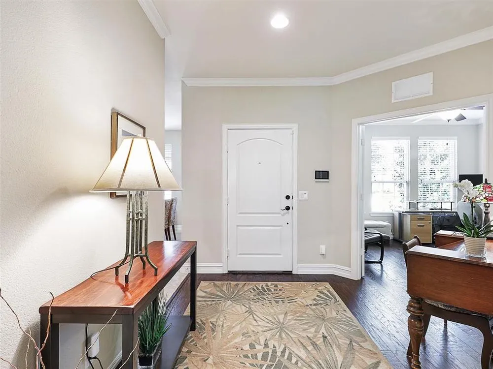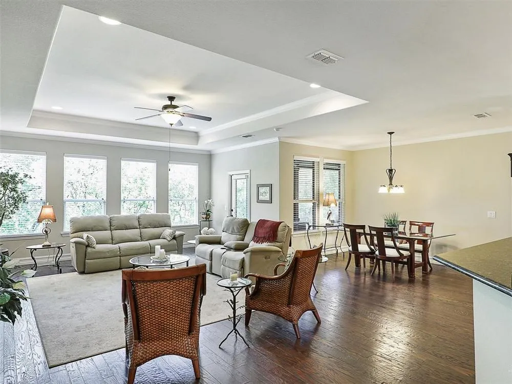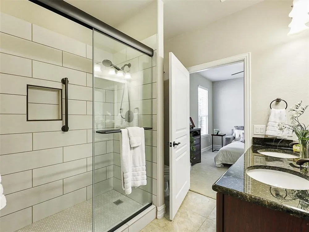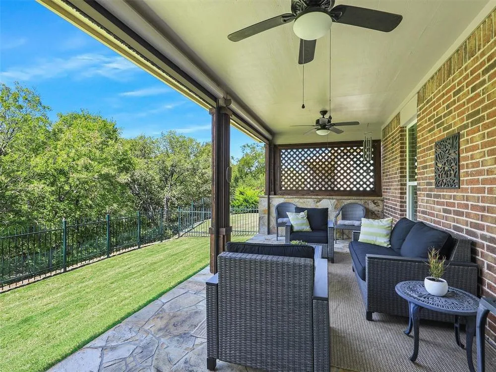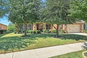 Welcome to this beautiful 3-bedroom plus study and 2.5 bath home located in the sought-after Frisco Lakes Del Webb community. Perfectly situated on a premium lot backing to the Corps of Engineers preserve, this residence offers peace, privacy, and seasonal views of Lake Lewisville. Inside, you’ll find the Cumberland Hall open-concept floorplan designed for both comfort and entertaining. The spacious living room features a wall of windows that flood the home with natural light and showcase the serene backyard views. The gourmet kitchen boasts granite countertops, a large island, gas cooktop, stainless steel appliances, and abundant cabinetry with pull-out shelving. The elegant primary suite is a retreat of its own, complete with a sitting area, spa-like bath, dual vanities, a jetted tub, separate shower, and a generous walk-in closet. Two additional bedrooms share a Jack-and-Jill bath with a huge walk-in shower, plus a dedicated study and a half bath for guests. Enjoy year-round outdoor living on the extended covered patio with electric shade screens, overlooking Lake Lewisville and a treed backdrop in the fully fenced backyard. The home has beautiful curb appeal and landscaping with a covered front porch and a brick and stone home. The oversized garage is wired for an electric car charger. The home features low e windows, radiant barrier roof sheathing, programmable thermostat and other energy efficient savings. This active adult community has three outdoor and one indoor pool, bocce ball, pickle ball, tennis, golf, corn-hole, gardening, indoor walking track, exercise rooms, billiards, libraries, full-service restaurant and bar at the golf club and more!