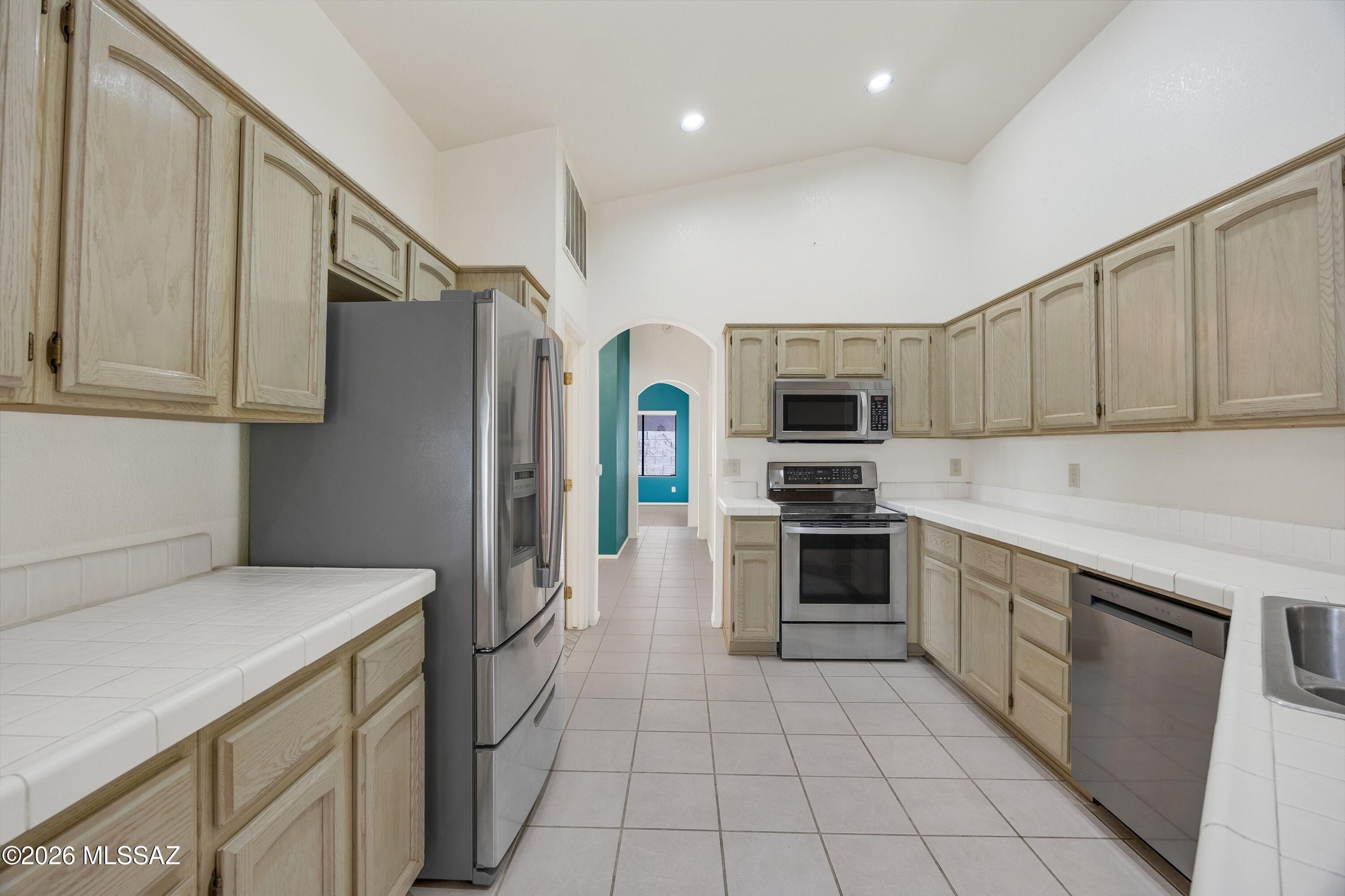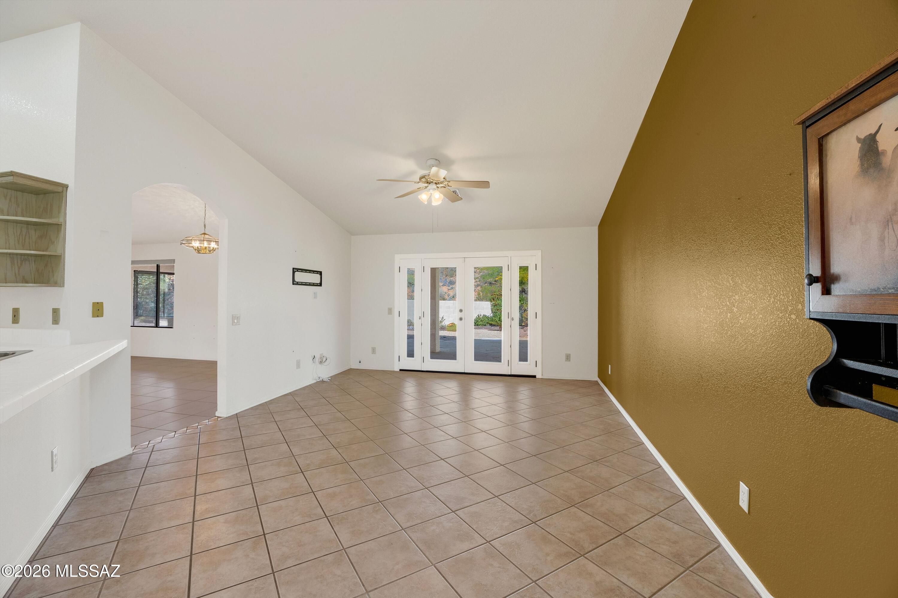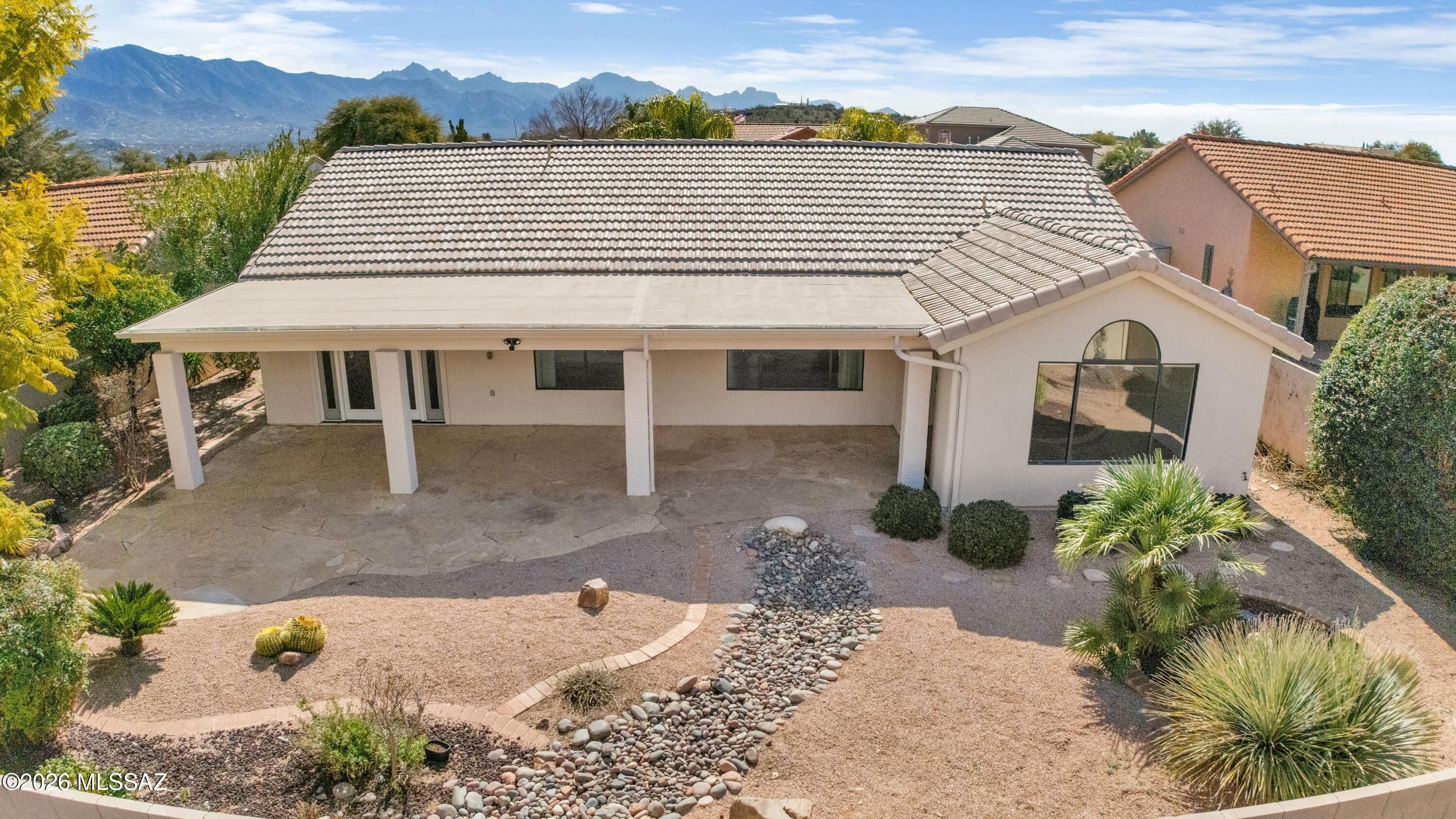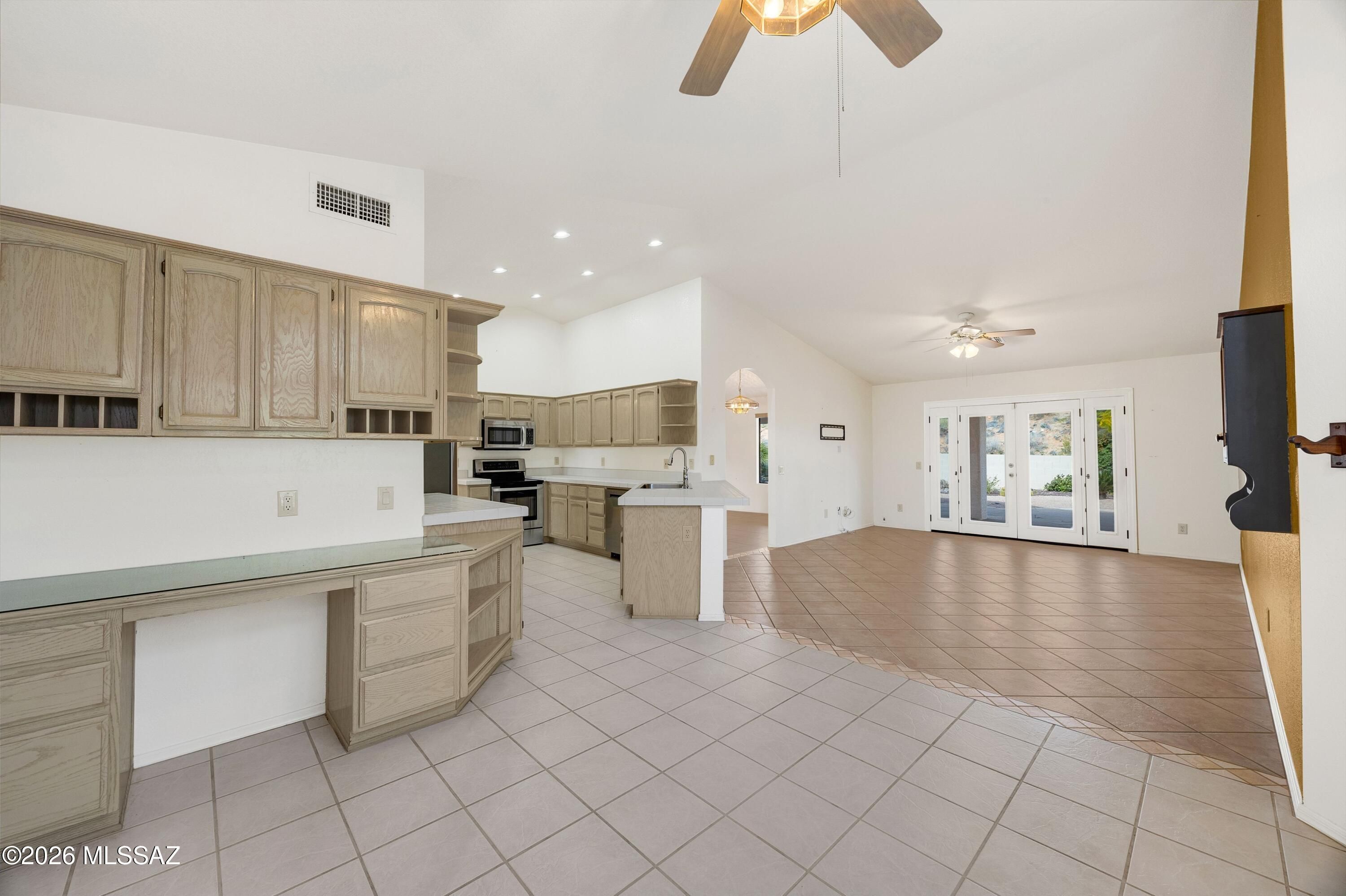 Located in the beautiful community of SaddleBrooke, this well-maintained 2-bedroom, 2-bath Topaz with a versatile den offers 2,120 sq ft of comfortable living space. Built in 1995, the home features tile flooring throughout, stainless steel appliances, and a spacious, open layout ideal for both everyday living and entertaining. French doors lead to a covered patio, creating a seamless indoor-outdoor connection and an inviting space for entertaining or relaxing. The flexible den is perfect for a home office, hobby room, or guest space. Enjoy the relaxed SaddleBrooke lifestyle with access to renowned amenities, scenic surroundings, and a vibrant active adult community.