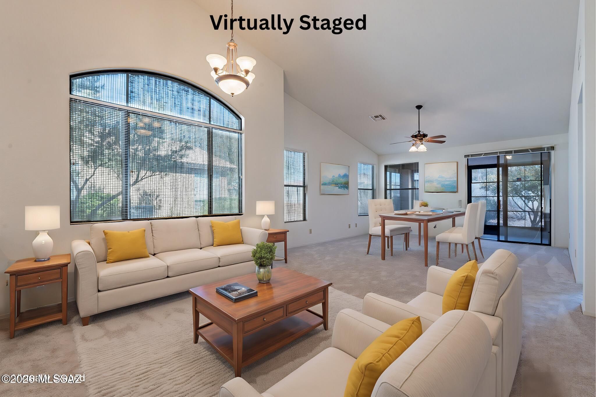 The livin' is easy in the Villas of SaddleBrooke, part of a very desirable over-55 resort-style community north of Tucson AZ. The Villas Association maintains the exterior of your home, roof, irrigation, landscaping, pest control and a blanket insurance policy for the exterior of your home. They even blow off your driveway each month! This light and bright Villa is spotless and move-in ready, with new carpeting , abundant storage and a delightful Arizona Room where you can enjoy the birds chirping in nearby trees. The spacious living and dining area provides an excellent space to gather and relax. In the kitchen, enjoy pull-out drawers in lower cabinets and in the pantry as well, making pots-&-pans and food storage very convenient and new appliances!