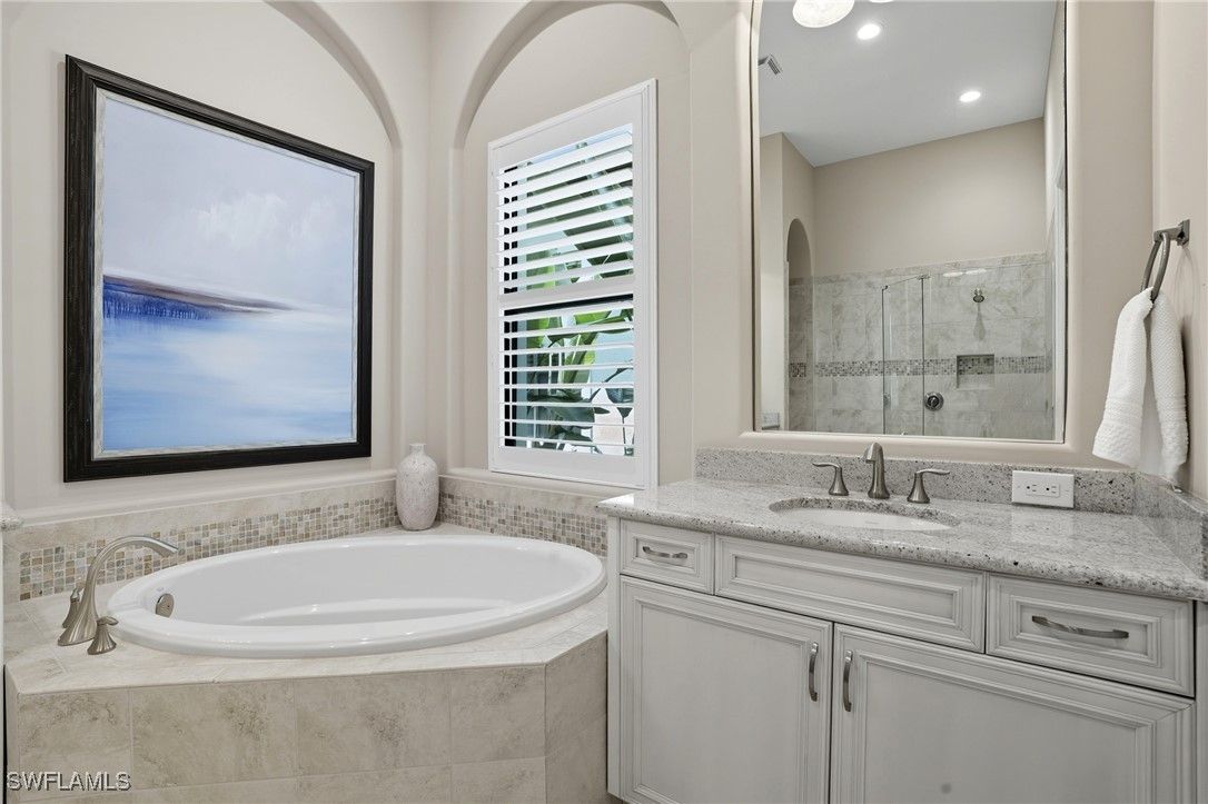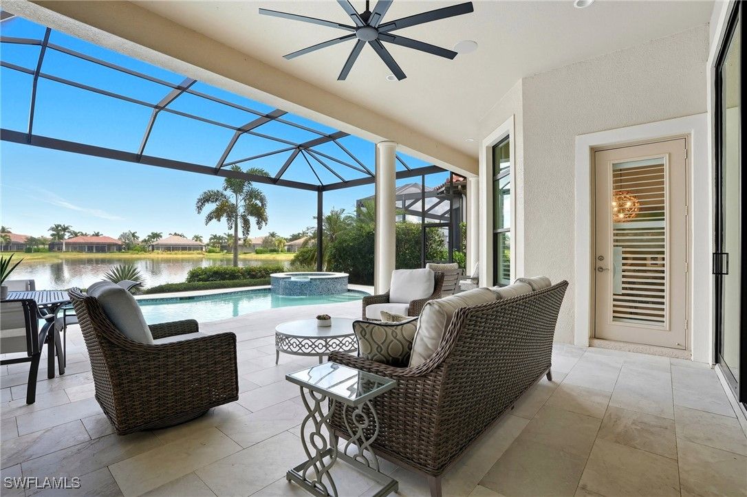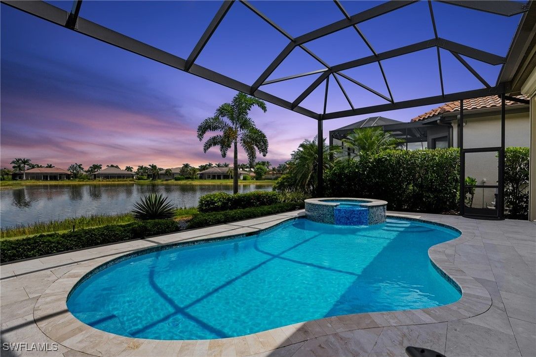 Step into this stunning residence with tranquil lake views in the exclusive Lakoya enclave of Lely Resort, where timeless elegance meets modern convenience. Designed with both sophistication and comfort in mind, this home offers a seamless blend of indoor and outdoor living, creating the perfect retreat for entertaining or simply enjoying the Naples lifestyle. From the sparkling pool and spa to the expansive lanai with a panoramic screen, outdoor kitchen, and natural gas cooking, every detail has been thoughtfully designed to showcase the beauty of Florida living at its finest. Inside, you’ll find 4 bedrooms, a 2 desk office space off the garage, 3.5 baths, and a 3-car garage with a mini split AC unit. Recent upgrades provide both peace of mind and efficiency, including two new AC units, a new endless hot water system, new washer and dryer, plantation shutters, custom drapery, and a whole-house generator installed in 2022. The exterior also features professional landscaping, a freshly painted facade, professional landscape lighting, a new travertine pool deck, and a reimagined pool and spa. All impact windows and doors are complemented by Storm Smart shade protection, allowing you to conveniently keep your outdoor furniture on the under-roof lanai year-round. A new front door enhances the home’s inviting curb appeal. Additional features include a new alarm system with a 10-year battery life and an insulated attic and crawl space for added AC efficiency. As a resident of Lakoya, you’ll enjoy private membership to the renowned Players Club & Spa, featuring three resort-style pools, tennis, pickleball, bocce, grill room and veranda dining, the fabulous tiki bar with 13 TVs for sports viewing, poolside food and beverage service, a full-service spa, and a state-of-the-art attended fitness center. The tennis and pickleball area also hosts a pro shop and a mini grab-and-go café. Ideally located to downtown Naples, Marco Island’s pristine beaches, shopping, and fine dining, this residence offers the luxurious Florida lifestyle you deserve.