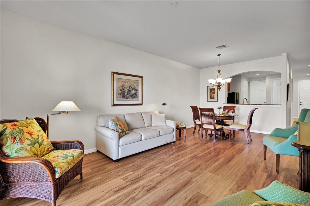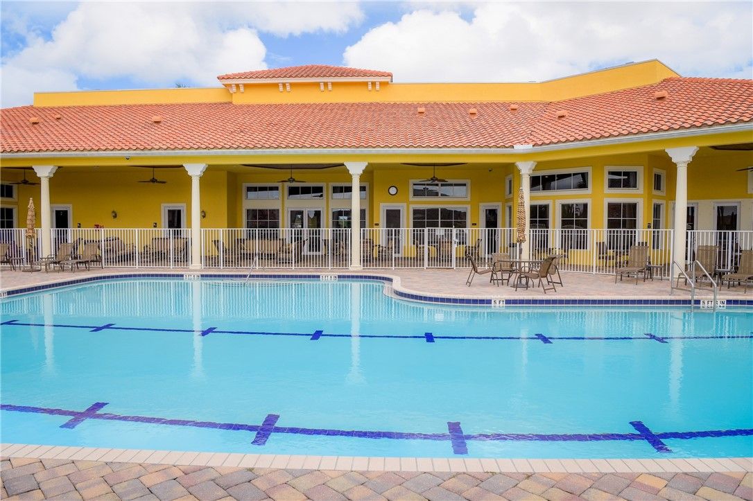 Lakeside Villa with beautiful views of the fountain. Open floor plan is spacious with laminate flooring throughout the living area. A wonderful place to live and play in tropical Florida. Full-service Clubhouse w/full social calendar of things to do. Heated pool & spa. Tennis, fitness center, billiard room and bocce ball are only a few of the additional activities here in Woodfield. Cable TV & internet included in the HOA dues. Enjoy a wonderful location near a variety of dining, shopping and of course Vero's beautiful beaches.