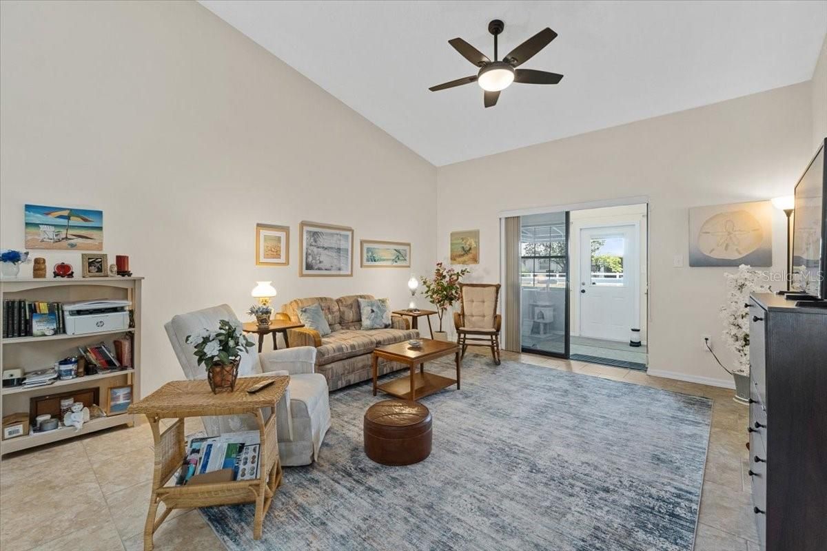 The best of both worlds, this sweet villa is easy to maintain, and at the same time feels wonderfully spacious and open with lots of light and high ceilings. Add an extra 112 square feet with the interiorized heated/airconditioned lanai with windows and a lovely awning-covered patio just outside. Completely tiled throughout, the floors are cool and allergen-free. There are two large bedrooms, each with its own bathroom, a nice eat-in kitchen with a pass-through to the living/dining room, plus a shaded dry place to park your car or golf cart in your private garage. Recently renovated, this home’s HVAC system is new (2025) with a thorough duct cleaning as well (buyer also gets a transferrable 3 year labor, 10 year parts warranty), the roof is from March of 2024, the hot water heater is from 2013, both bedrooms and bathrooms were renovated in 2024/2025, the kitchen was remodeled 2025, the whole electrical system was updated and refreshed in 2025, the backyard awning was refreshed in 2025, a drinking water filtration system was installed at the kitchen sink in 2025, and brand new gutters were installed in 2025. All the updates and maintenance have been handled for you so you can relax and enjoy your new home and neighborhood. And what a neighborhood! Living in Sandpiper Golf and Country Club is simply joyous! We have a club for every card game you can think of and some you might never have heard of, even. There are two pools, two hot tubs, a sauna, pickleball, tennis, cornhole, shuffleboard (there's actually a really competitive team here, BTW), billiards, gas grills and picnic table area with pavers, Community Clubhouse, Recreation Center, gym, crafting club, bowling club, travel club, regular dances and gatherings, annual men's lunch, annual women's lunch, weekly Bingo, pancake breakfast events, puzzle room, yoga, strength training, Pilates, stretch class, water volleyball, water aerobics, you name it. Oh, we DO have fun! Come join us, we'd love to have you as our new neighbor!