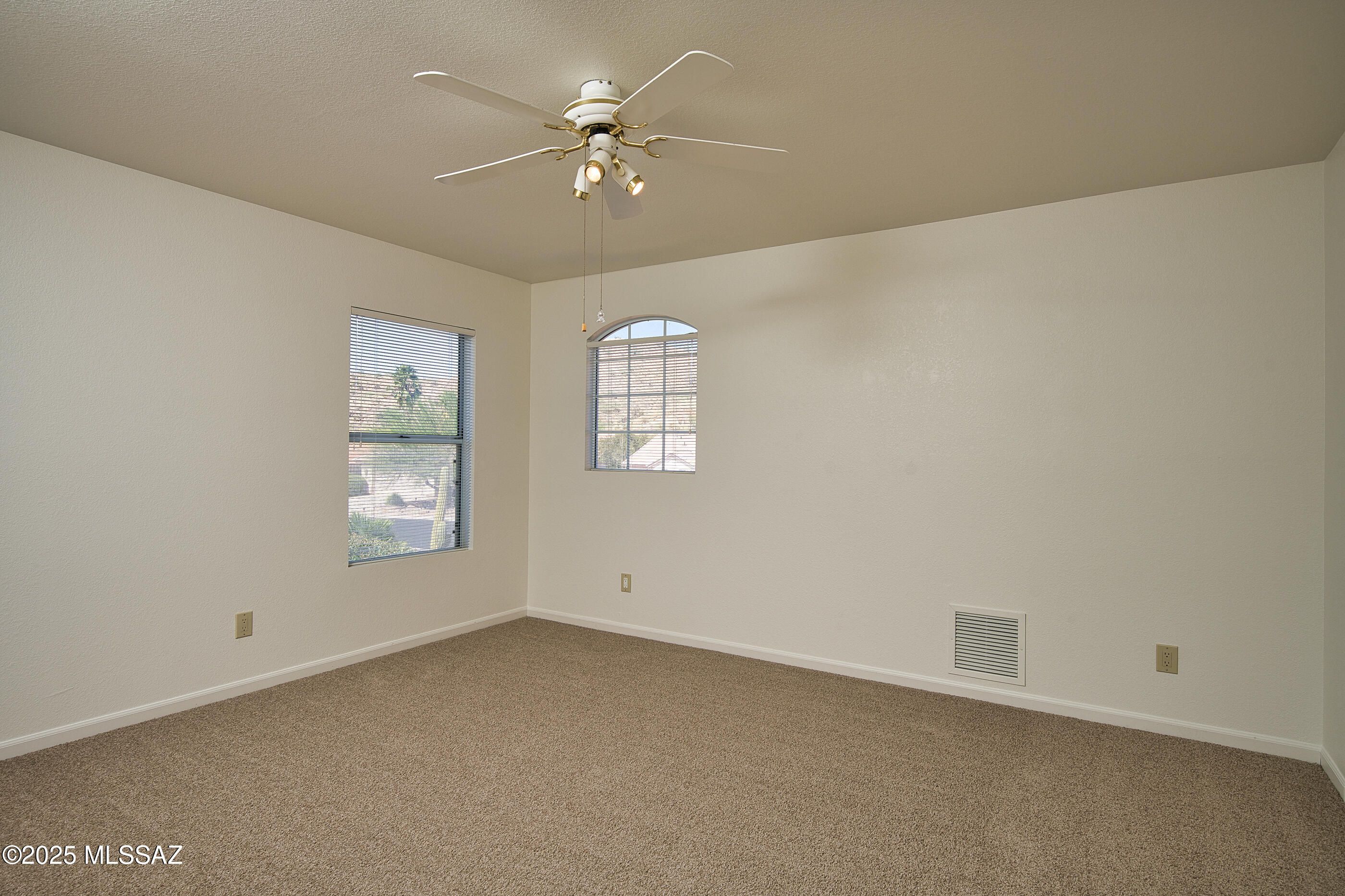 Beautiful 3 bedroom plus a large den/office located in Saddlebrook. Spacious kitchen with lots of cabinets, new refrigerator and dishwasher just installed. Kitchen opens up to the family room. All new carpet and paint throughout the inside of home. Large primary bedroom located downstairs. Backyard has amazing views of the Santa Catalina mountains! Enjoy the lap pool and the low maintenance backyard.