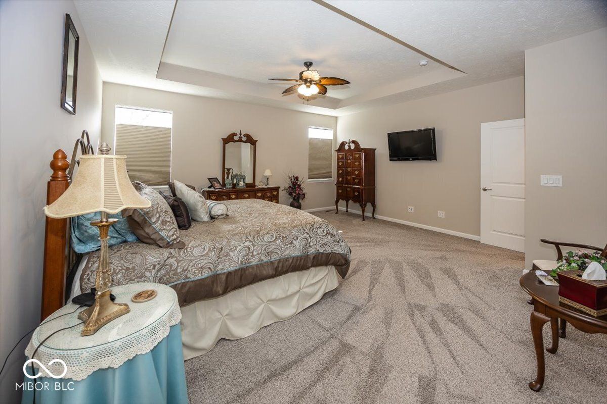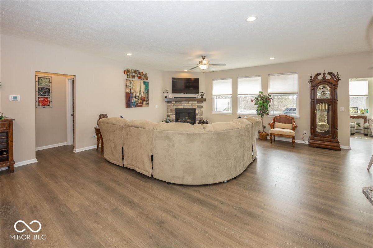 Exceptional 4 bed, 3.5 bath ranch in Plainfield situated on a private lot with a finished walkout basement and over 4,800 sq ft of living space. Boasting over 4,800 total square feet, this 4-bedroom, 3.5-bath ranch with a finished walkout basement offers the ideal blend of open-concept living and versatile space. From the moment you step inside, you'll notice the 9' ceilings throughout both the main level and basement, creating a bright, expansive feel. The heart of the home is the stunning kitchen, designed for both everyday living and entertaining, featuring a large center island, quartz countertops, classic shaker cabinetry, stylish backsplash, double oven, cooktop, and a convenient breakfast bar. The kitchen flows seamlessly into the spacious great room, anchored by a cozy fireplace and filled with natural light. The main-level primary suite stands out with a tray ceiling and a beautifully appointed ensuite bath, complete with a tiled walk-in shower and double vanity. Additional bedrooms are generously sized, offering flexibility for family, guests, or a home office. The finished walkout basement expands your living space even further, featuring 9' ceilings and a custom bar area-perfect for entertaining, game days, or relaxing evenings. Step outside to enjoy multiple outdoor living spaces, including a deck with an automatic awning and a hot tub that stays with the home. The walkout lower level provides easy access to the backyard, while a convenient storage area tucked beneath the deck adds practical functionality. Car enthusiasts and hobbyists will appreciate the garage upgrades, including a 9' overhead door and durable epoxy-coated floors. Situated on a spacious lot in a desirable Plainfield location, this move-in ready home offers the perfect combination of style, comfort, and thoughtful upgrades throughout.