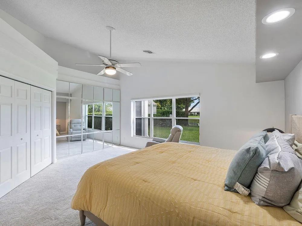 Discover this beautifully remodeled & pristine gem with incredible direct lake views, in Indian Spring, a vibrant 55+ community. This freshly painted 3-bed, 3-bath home features contemporary, neutral fixtures throughout, creating a modern and inviting atmosphere. The brand-new kitchen is equipped with state-of-the-art appliances, sleek cabinets and elegant countertops. The renovated bathrooms include a spacious master bath with a large walk-in shower. 2 of 3 bedrooms are newly carpeted and offer overabundant closet space, including a double-entry W/I closet.The living space is filled with natural light. The open layout blends comfort with sophistication. Perfect for entertaining, the home includes a bar area for gatherings and a charming sunroom for relaxation....